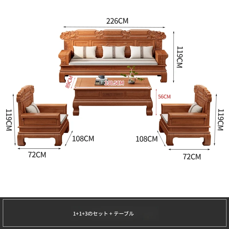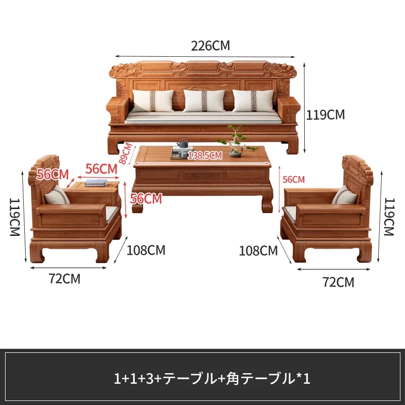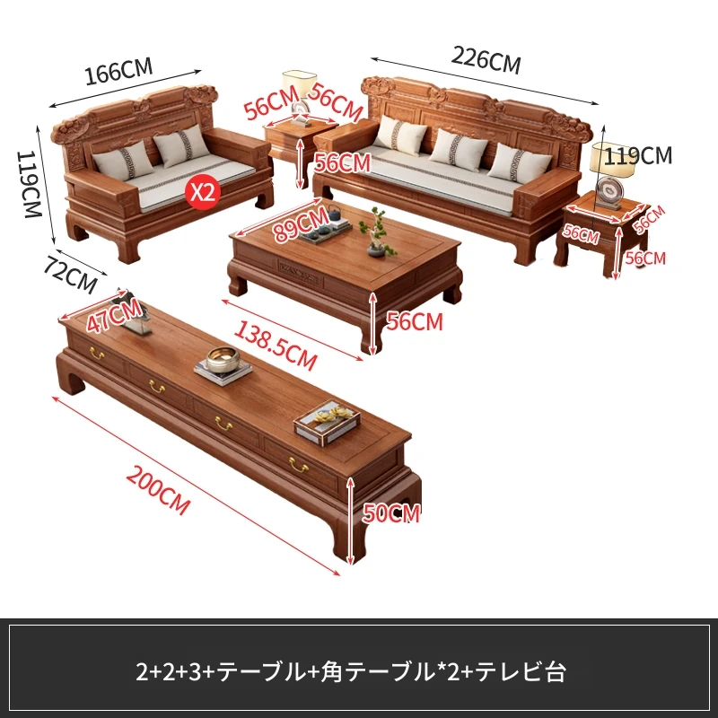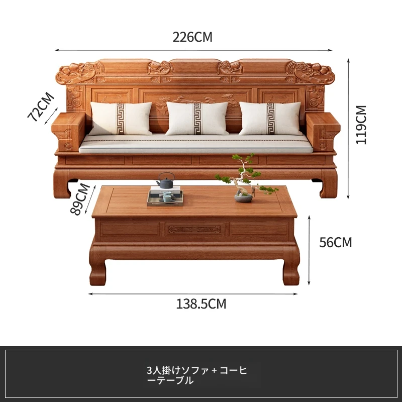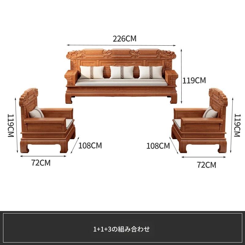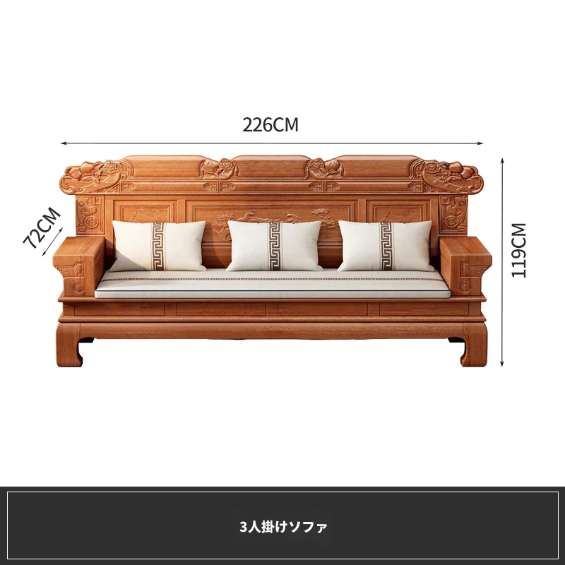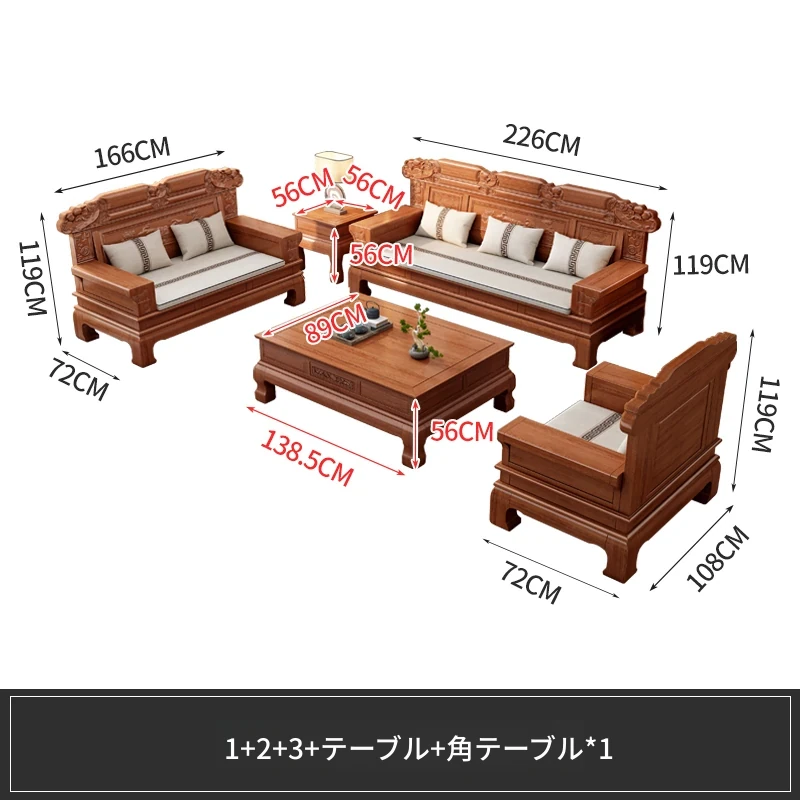 新中式金花梨木実木ソファー - 大型リビング向け、冬夏兼用の明清風古典彫刻紅木家具!高級感あふれるデザインで、居心地の良い空間を演出します。