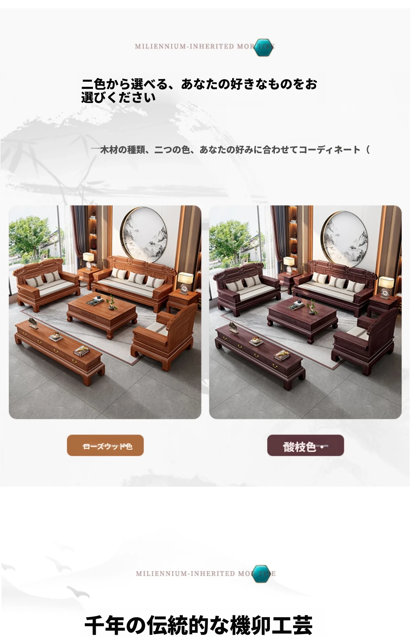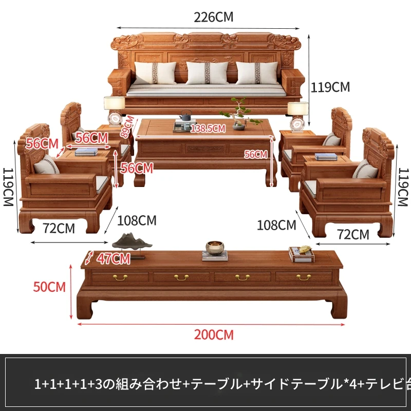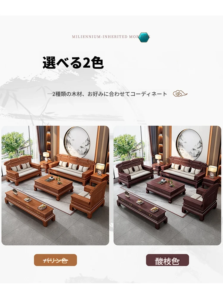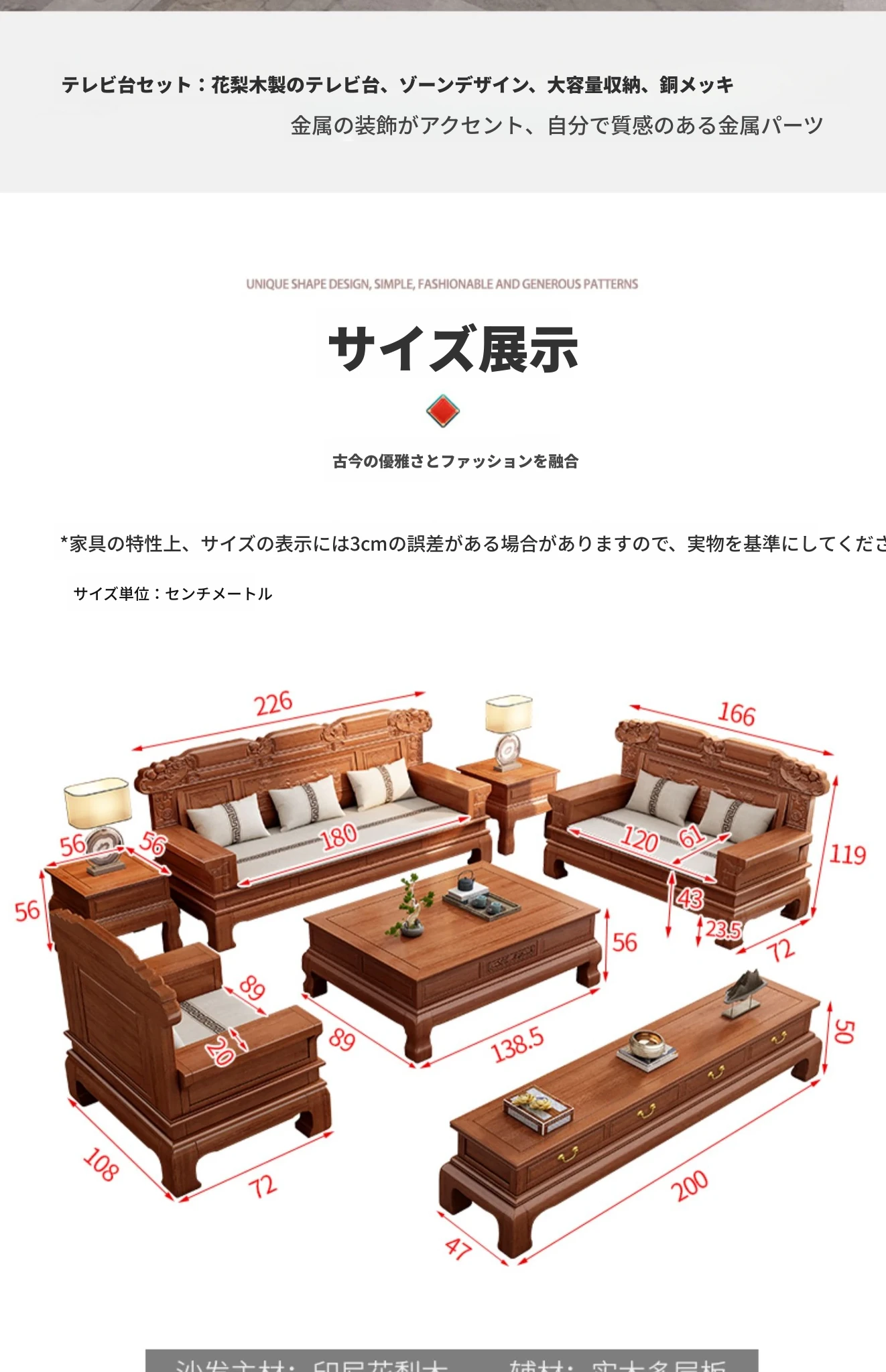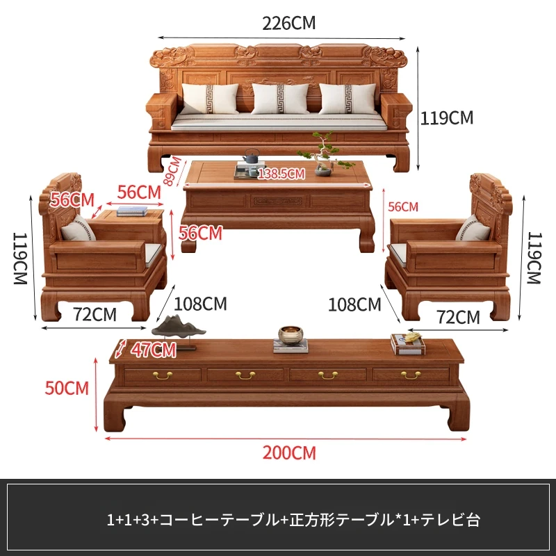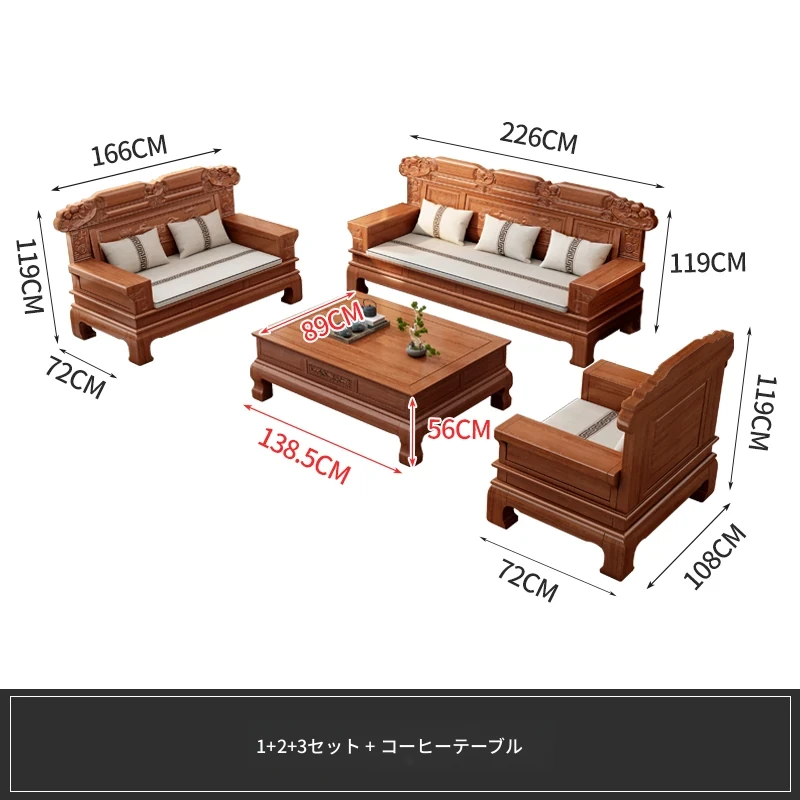 新中式金花梨木実木ソファー - 大型リビング向け、冬夏兼用の明清風古典彫刻紅木家具!高級感あふれるデザインで、居心地の良い空間を演出します。