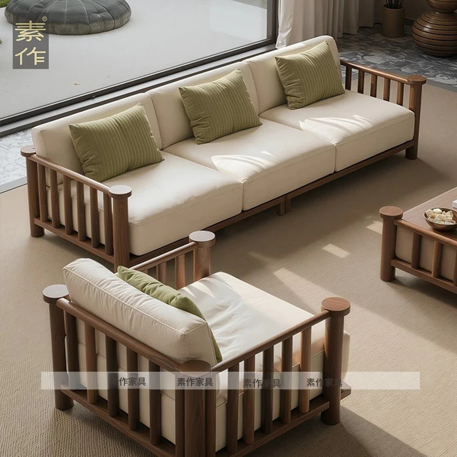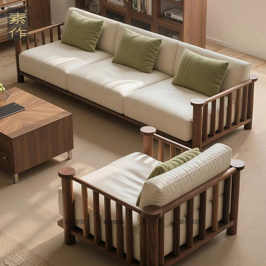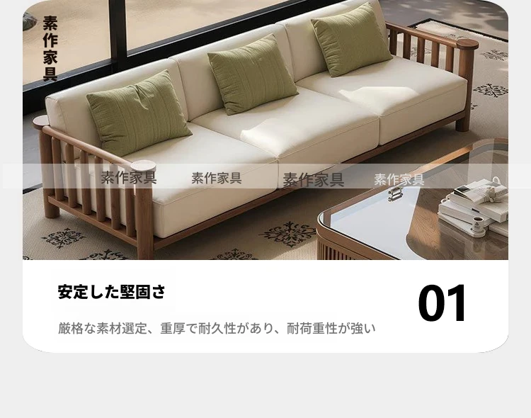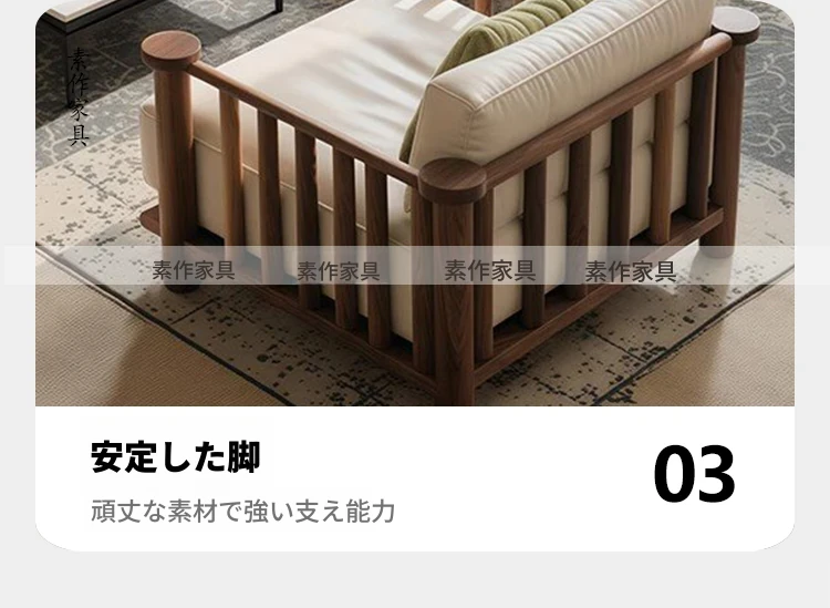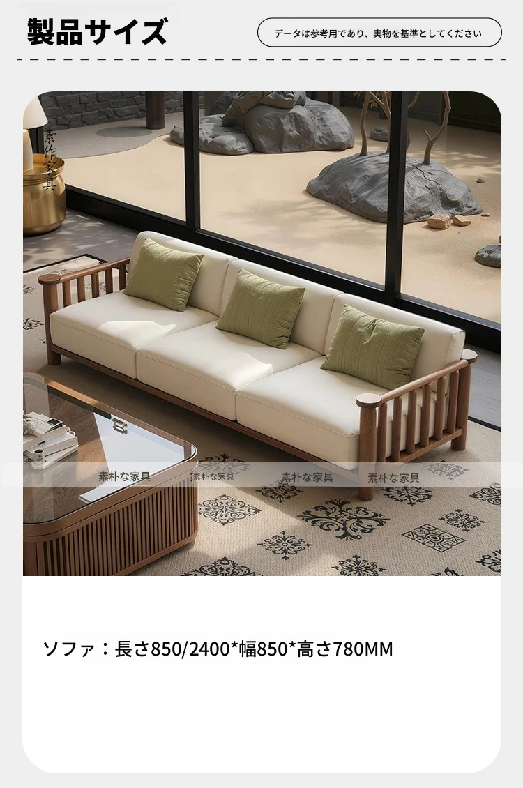 2025年新作!新中式デザインの高級感あふれる本革三人用ソファ - シンプルでモダン、狭いリビングにもぴったりな実木製!おしゃれな空間を演出します。