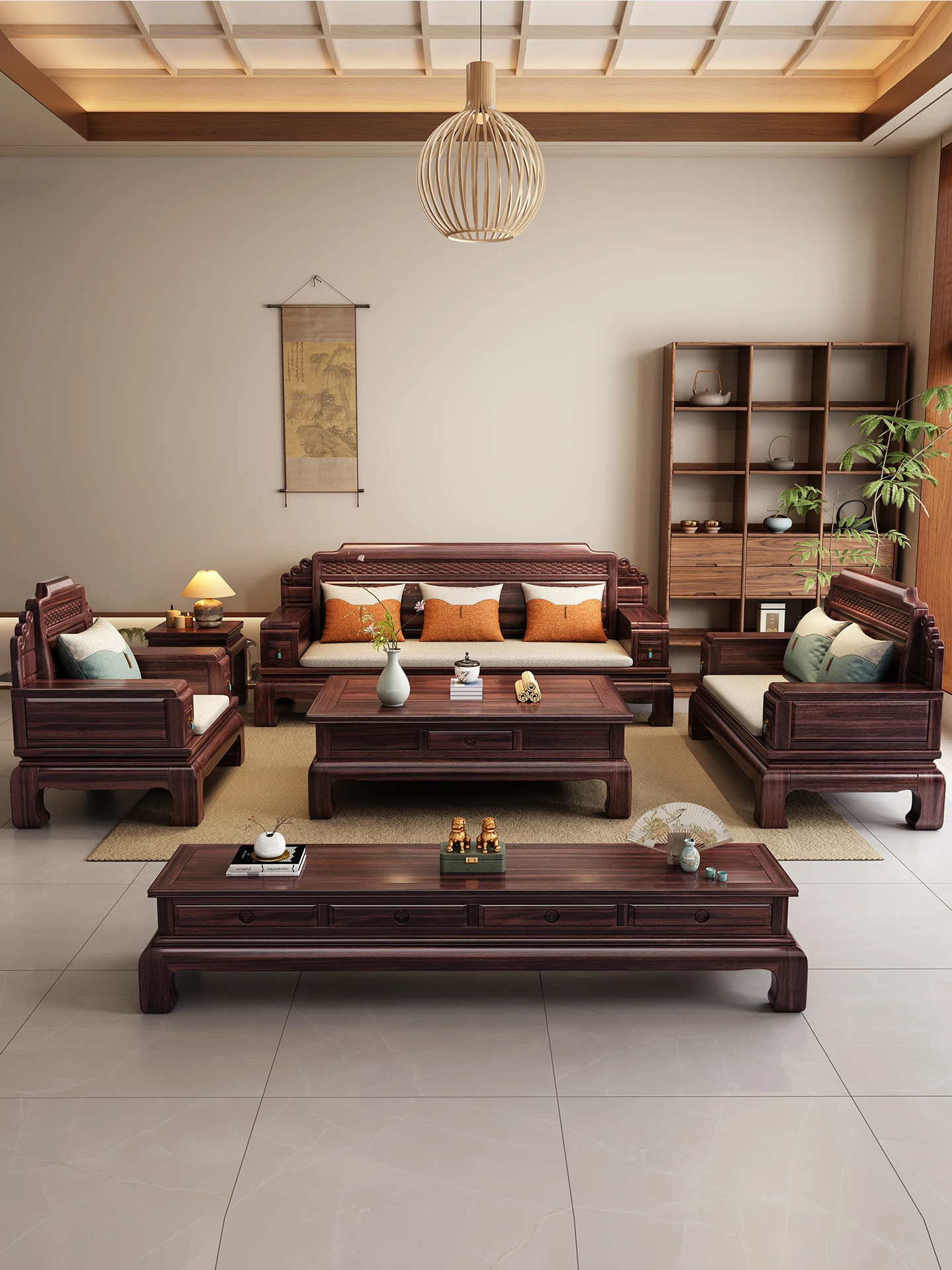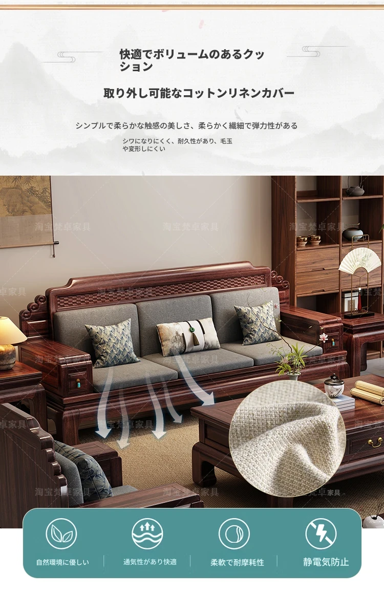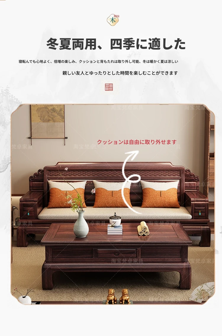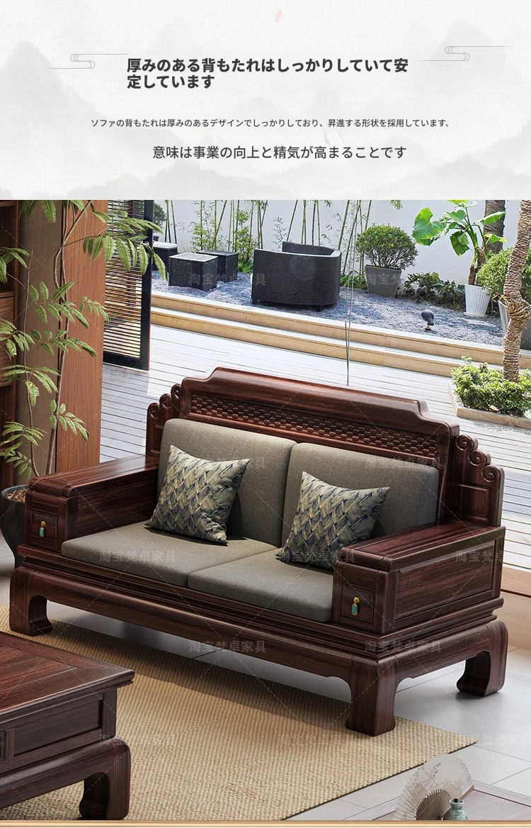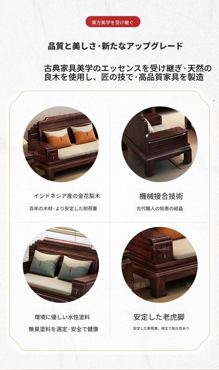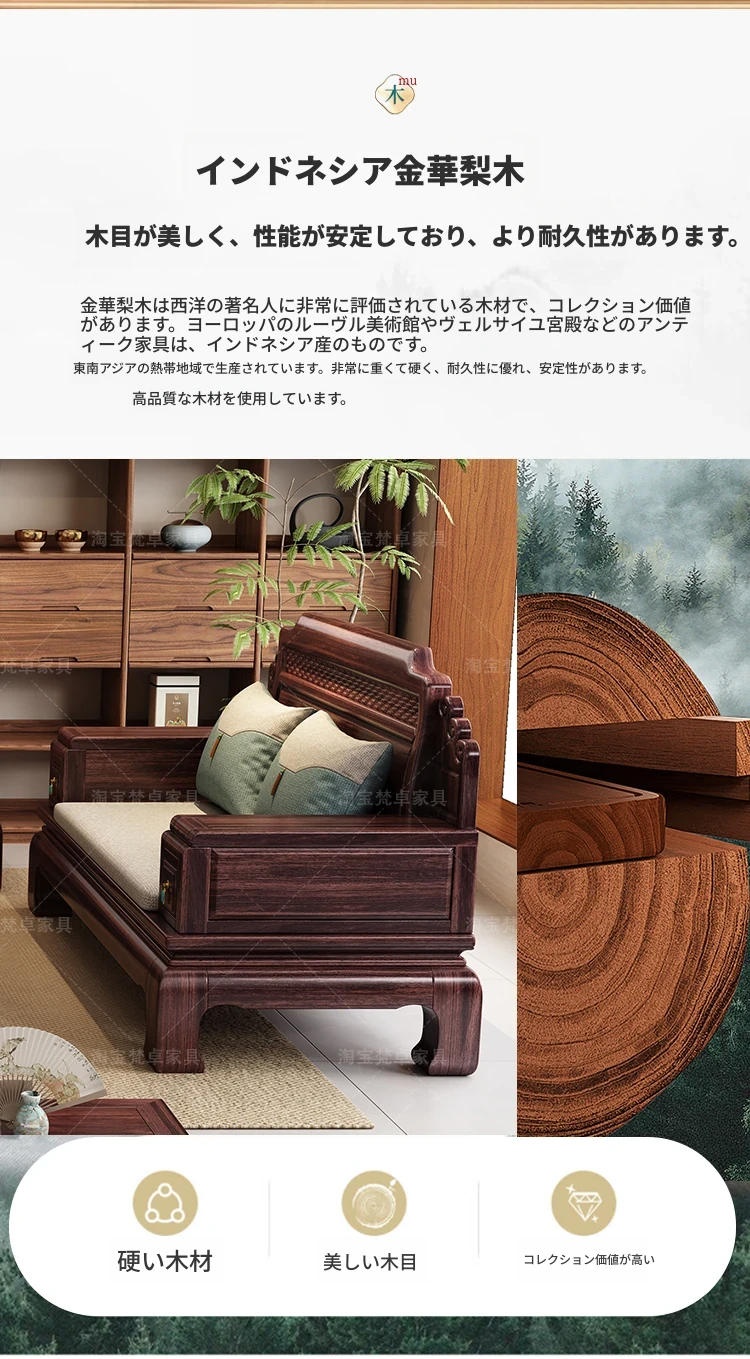 新古典スタイルの金花梨ソファ:全実木製、大型リビングに最適!冬も夏も快適な菠萝格木を使用した豪華な組み合わせソファ。高級感溢れるデザインで、あなたの空間を華やかに演出します!