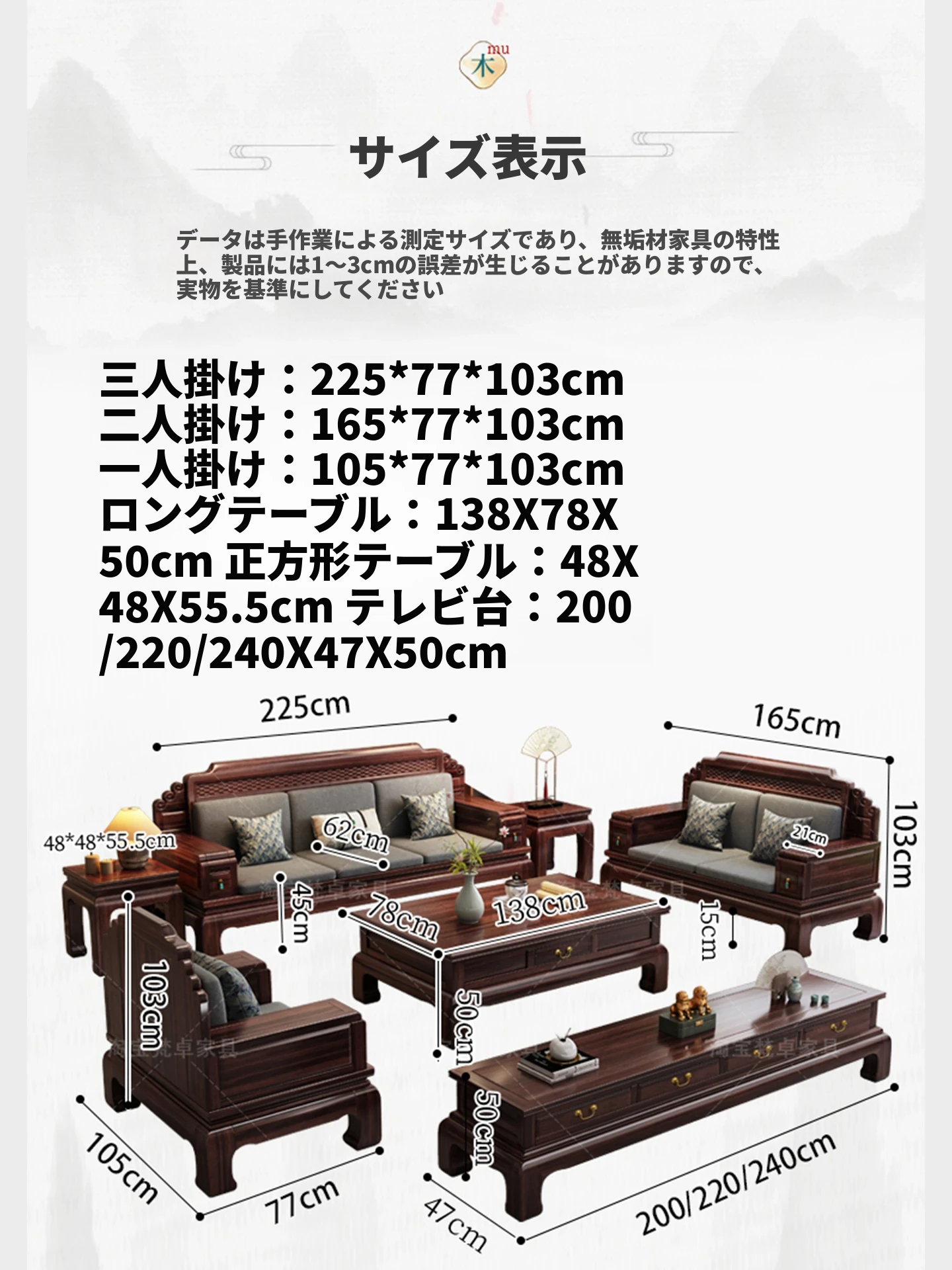 【金花梨木】四人掛けソファ+貴妃+テーブル+テレビ台+1角テーブル+一人掛けソファ