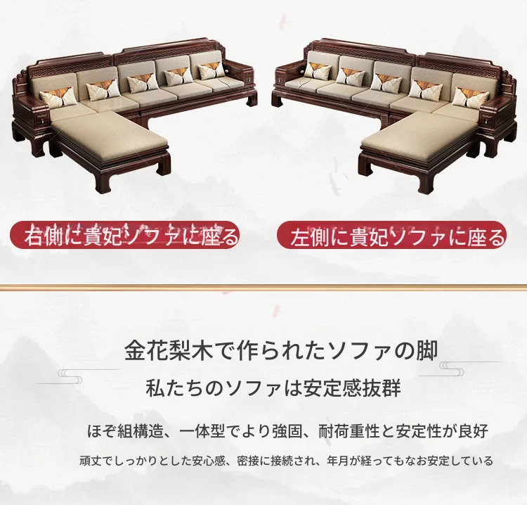 【金花梨木】五人掛けソファ+貴妃+テーブル