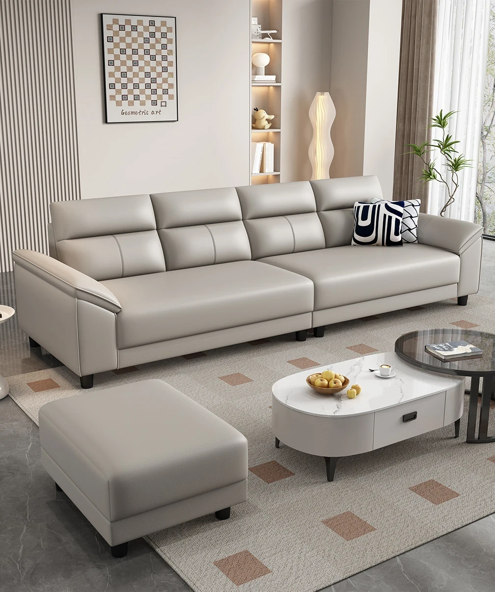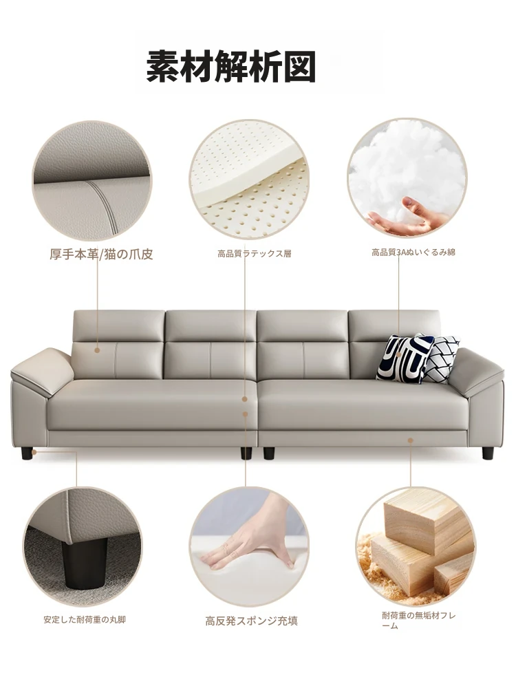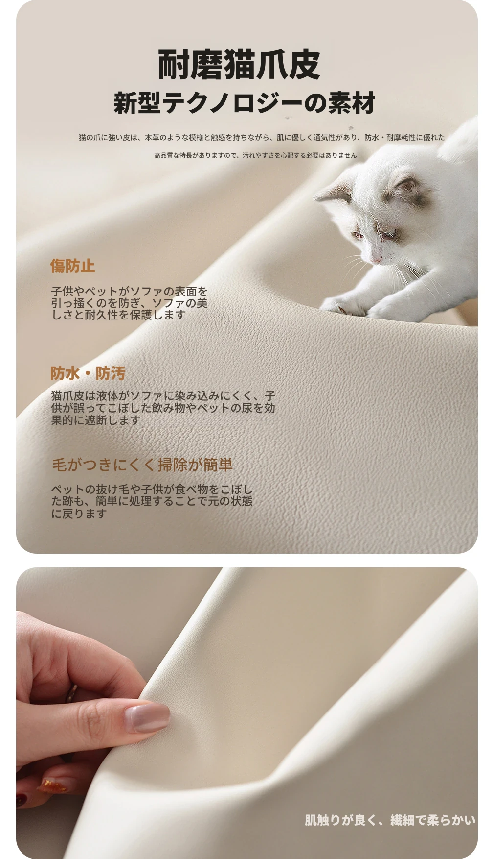 最新のクリーム風キャットクローソファ、モダンでシンプルなデザイン、小型リビングに最適な本革3人掛けコンビネーションソファ。快適な座り心地で、あなたのリビングを華やかに彩ります!