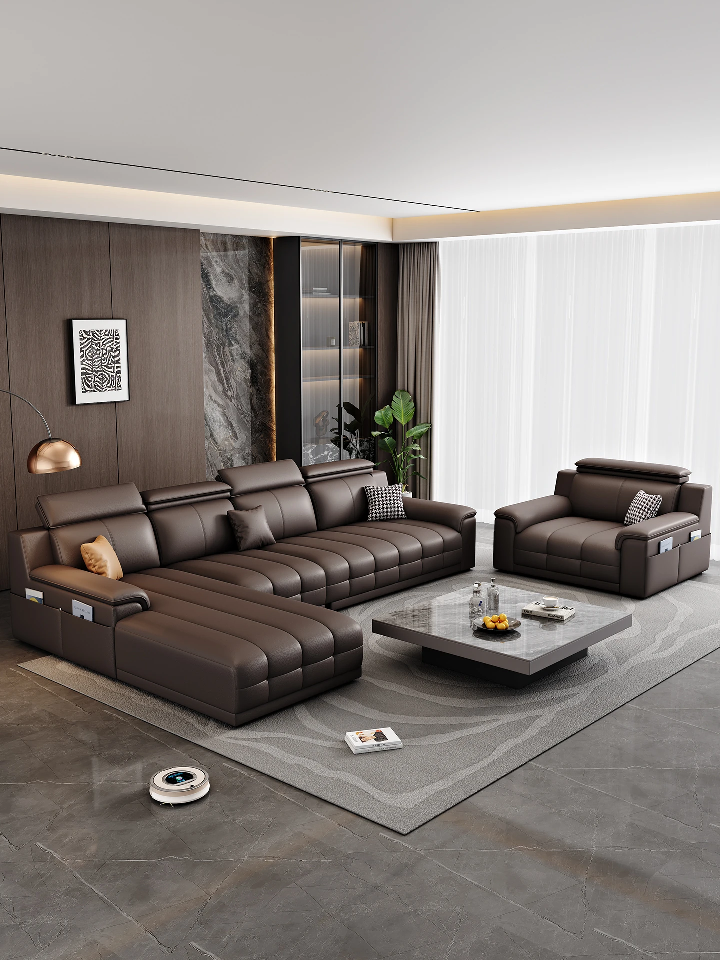 新作イタリアン本革ソファ - 高級牛革使用のモダンミニマリストデザイン!ローエンドのラウンズ・リビングルーム用フェイスタイプソファセットで、小さなスペースにも最適!あなたの生活空間をスタイリッシュに演出します。
