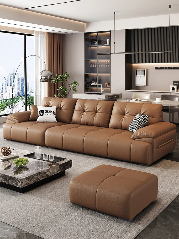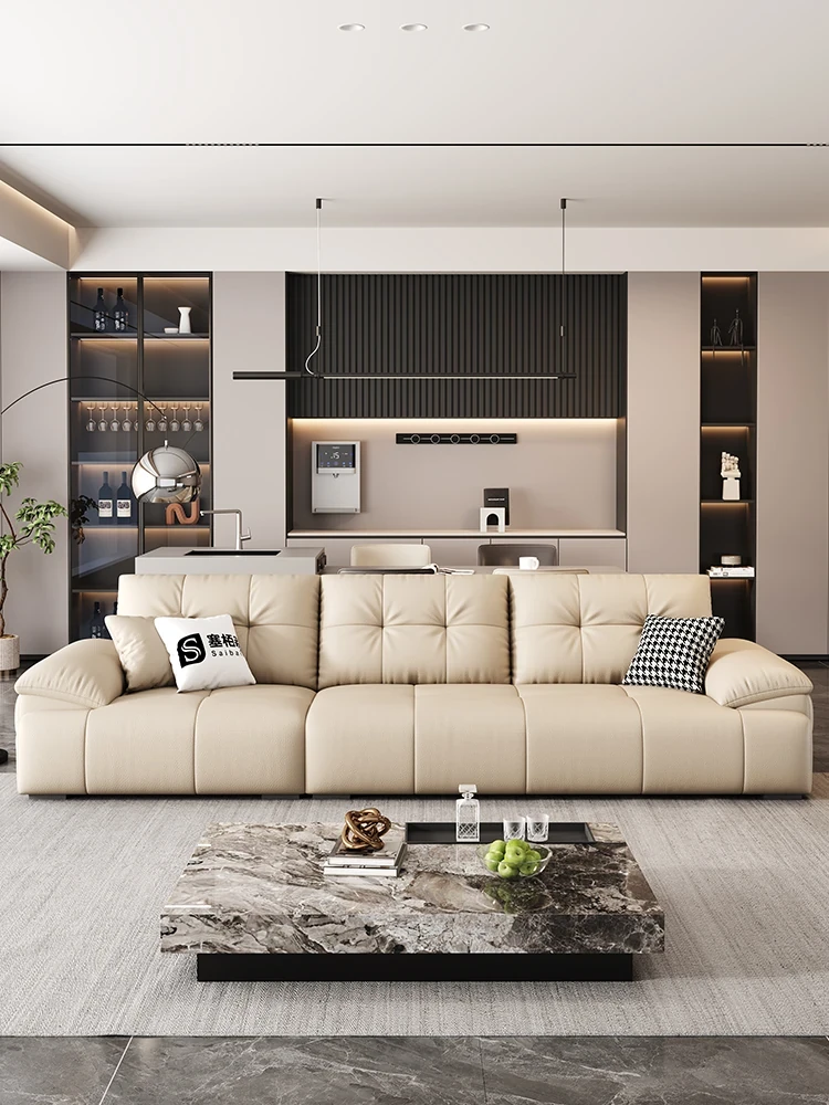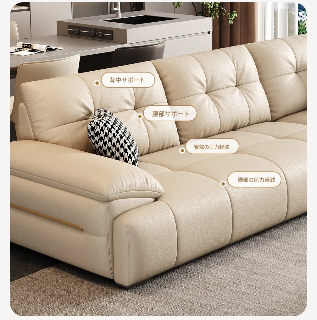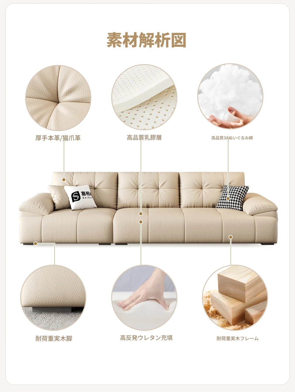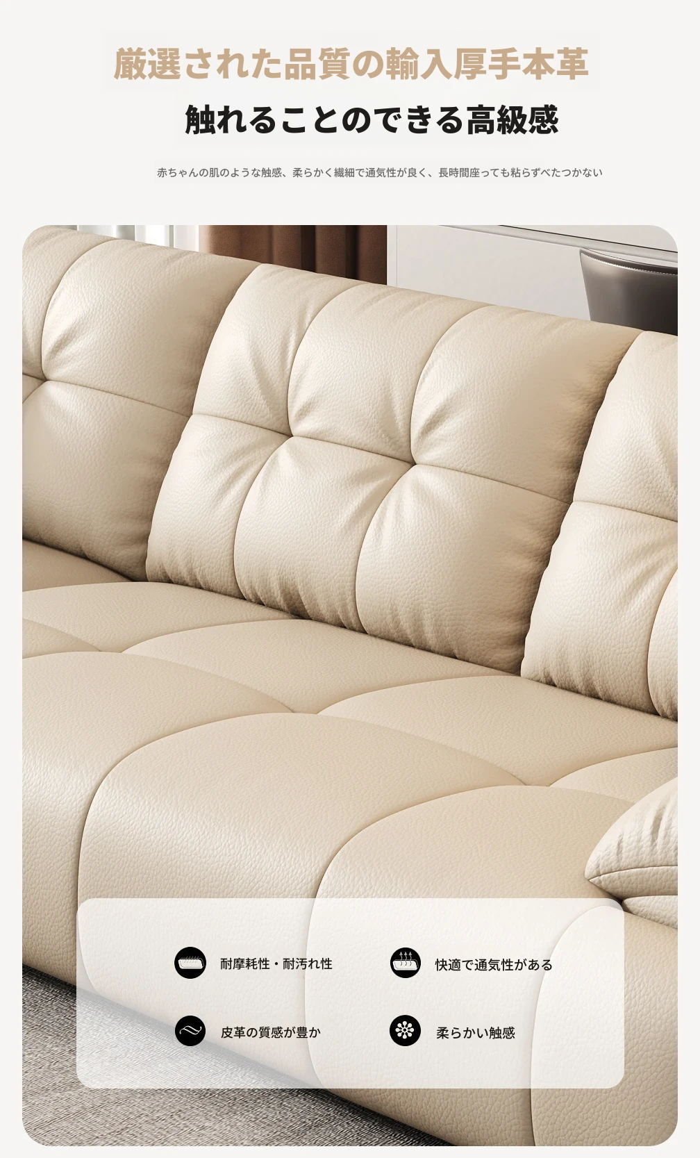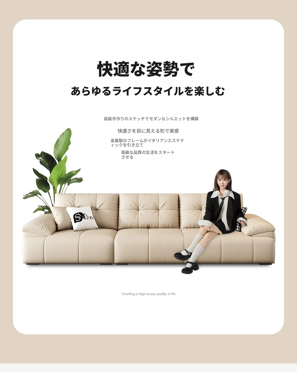 新作イタリアンミニマリスト真皮ソファー|コンパクトなリビングに最適!ラグジュアリー感漂う4・3人掛けの直列ソファーセットで、洗練された空間を演出します。