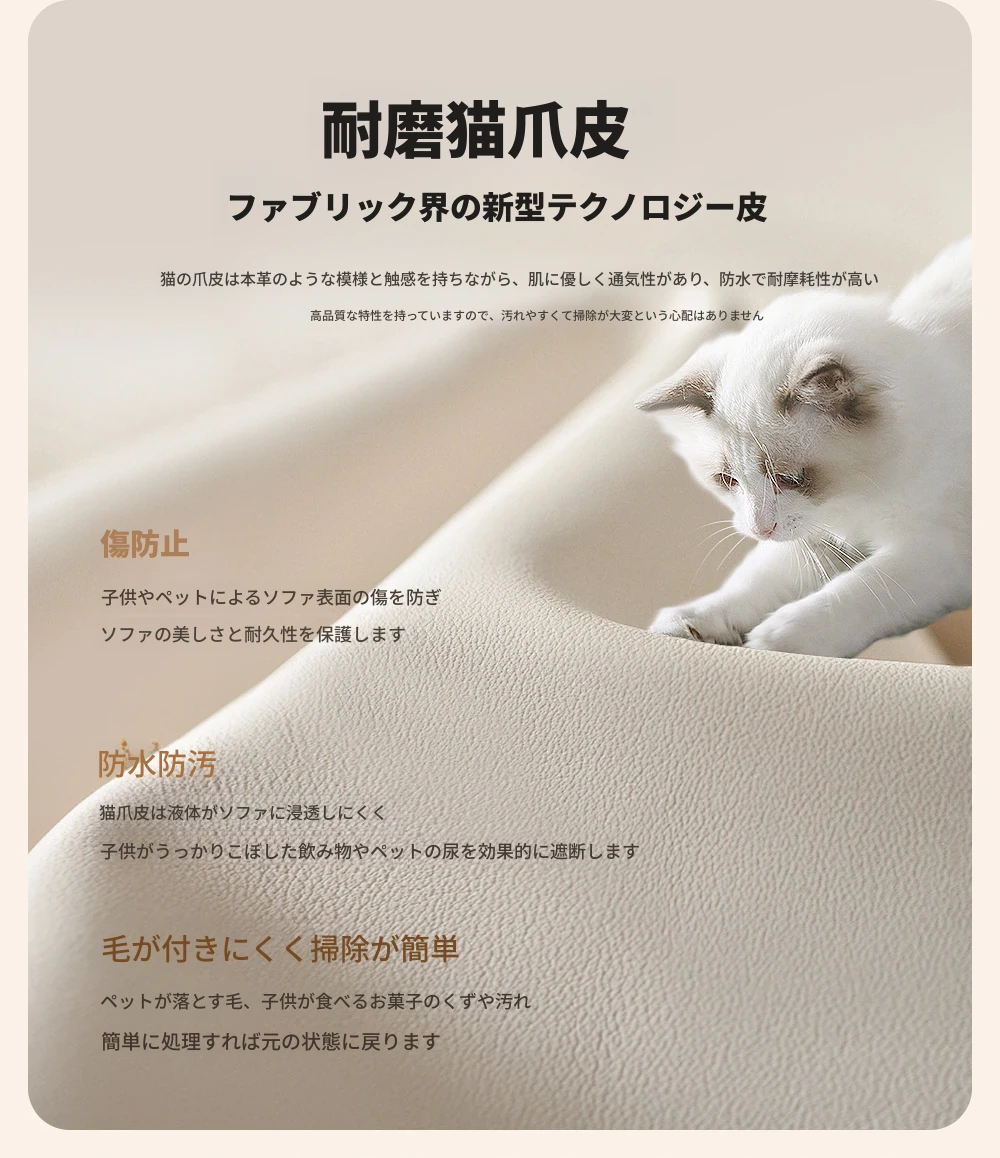 新作キャットスクラッチ布製ソファ - モダンミニマリストスタイル、コンパクトなリビングルームに最適な本革3人掛けソファ、人気のある組み合わせで居心地の良い空間を演出!