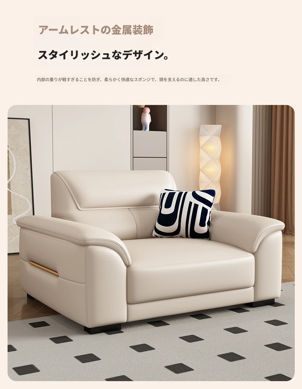 ダブルアームシングルソファ(厚手本革1.1メートル)