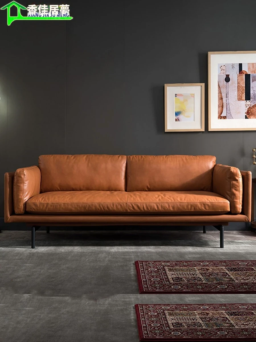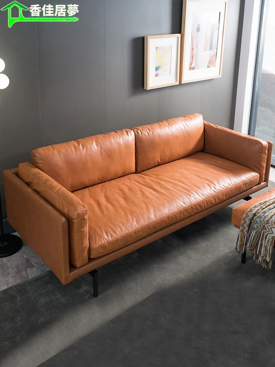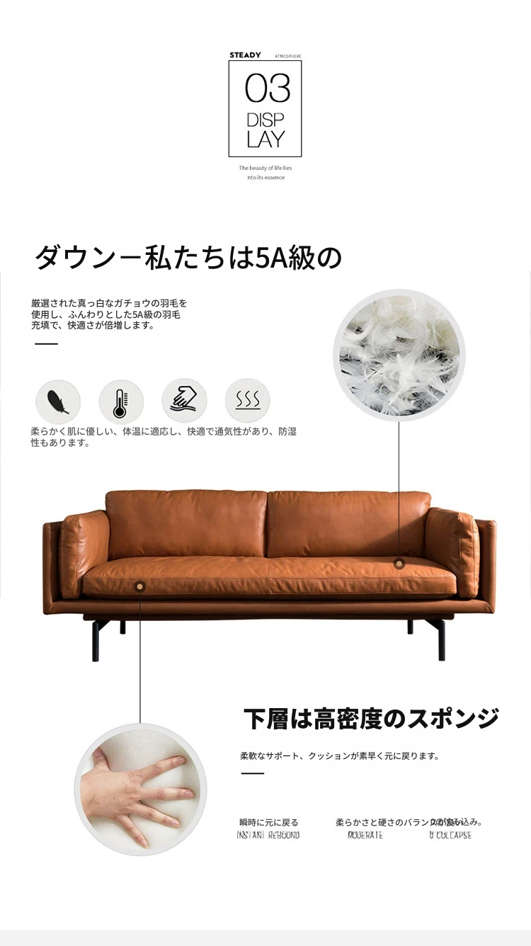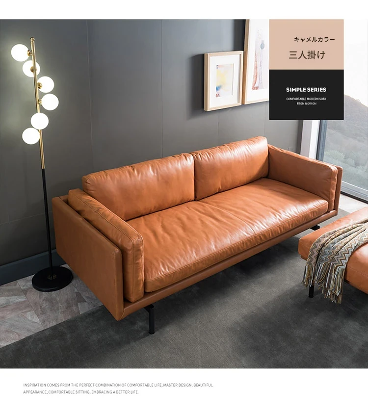 北欧スタイル本革ソファ|イタリアンミニマルデザイン|軽やかなラグジュアリー|コンパクトなリビングや店舗休憩スペースに最適|新作2025年モデルの3人掛けソファ!
