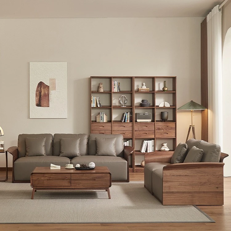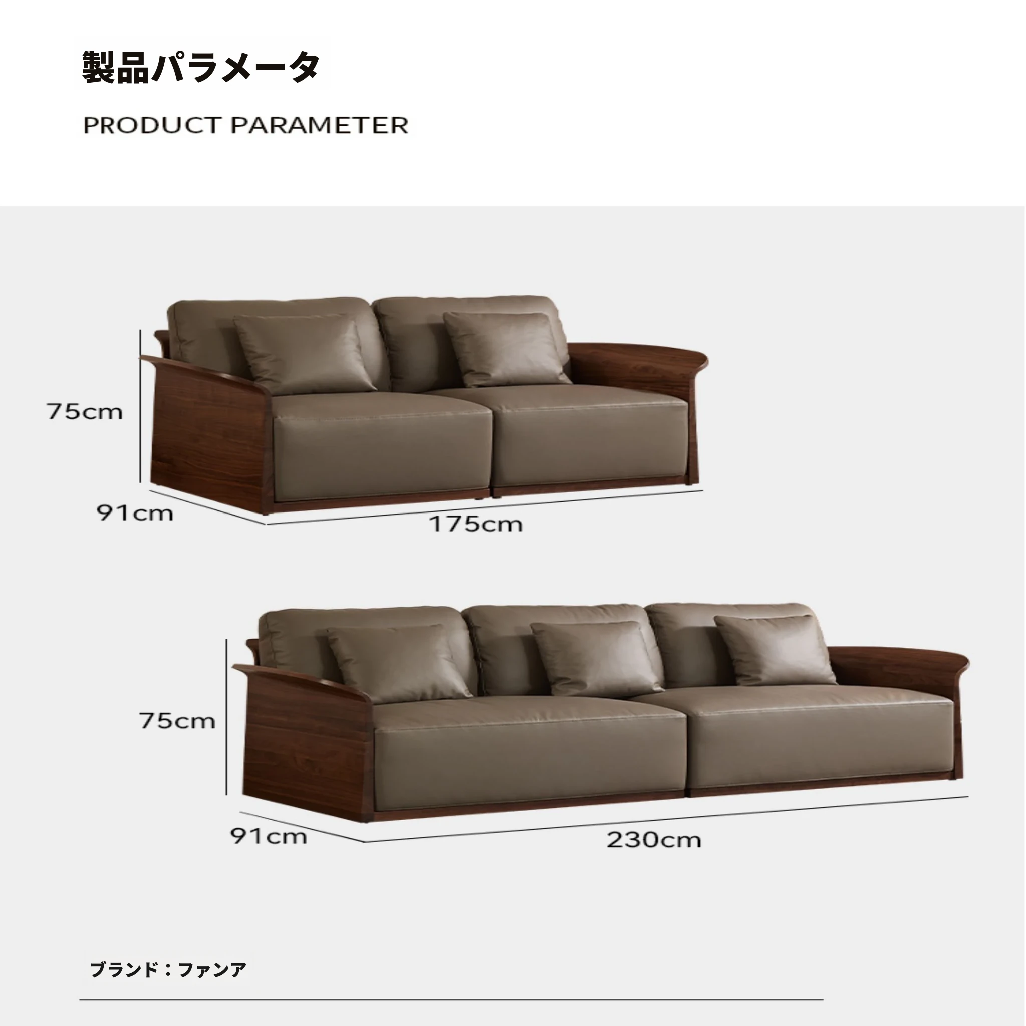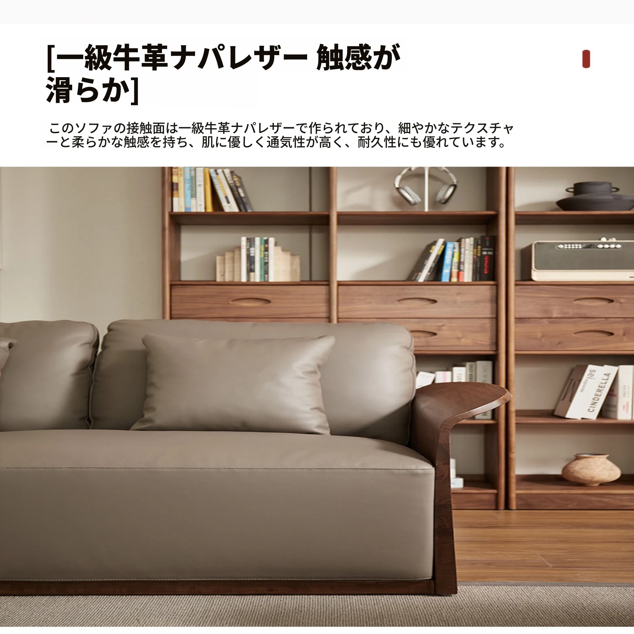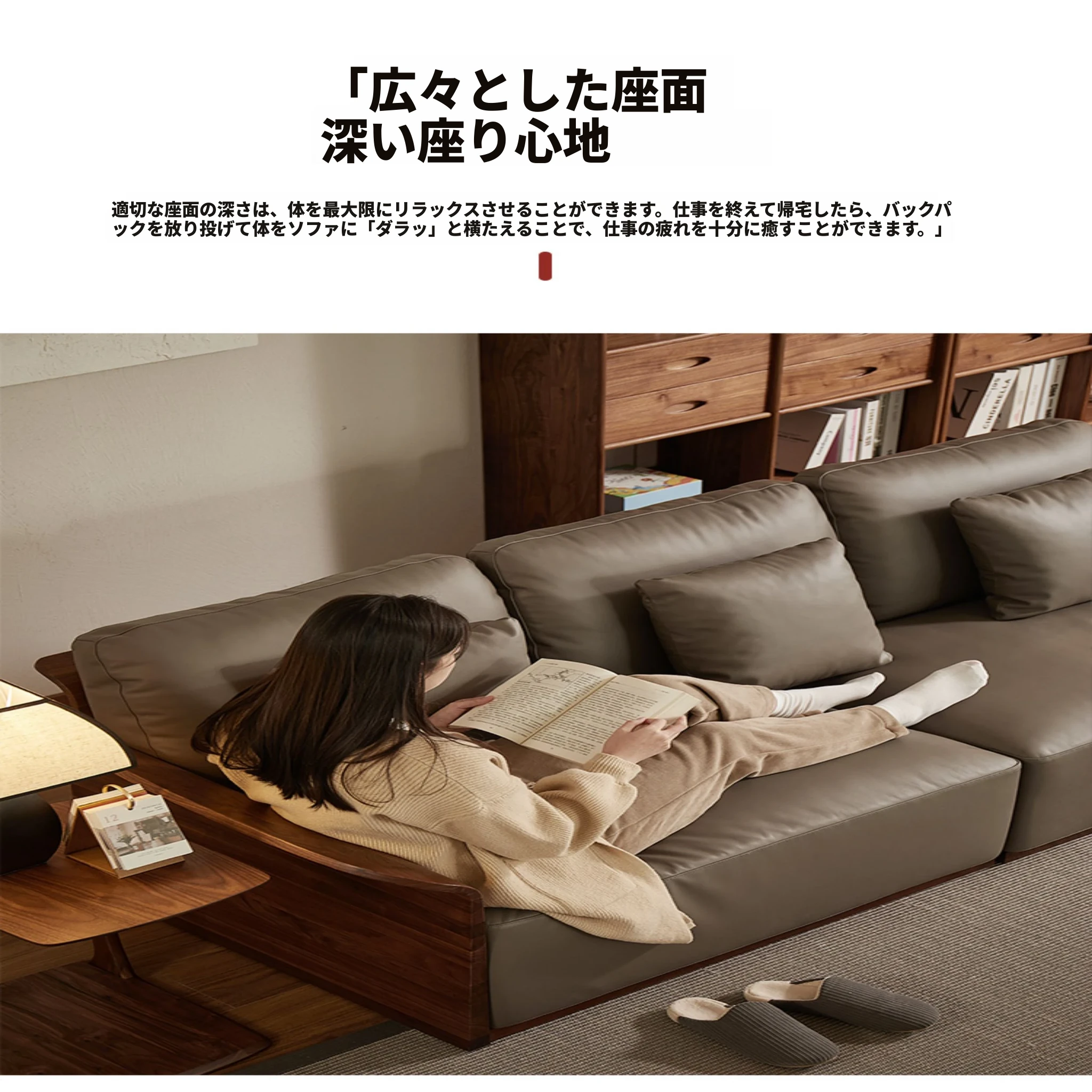 北欧モダンスタイルの別荘向け、北米産ブラックウォールナットソファセット - 新作!高級本革使用、シンプルで洗練されたデザインが魅力のリビングルームにぴったりの逸品。