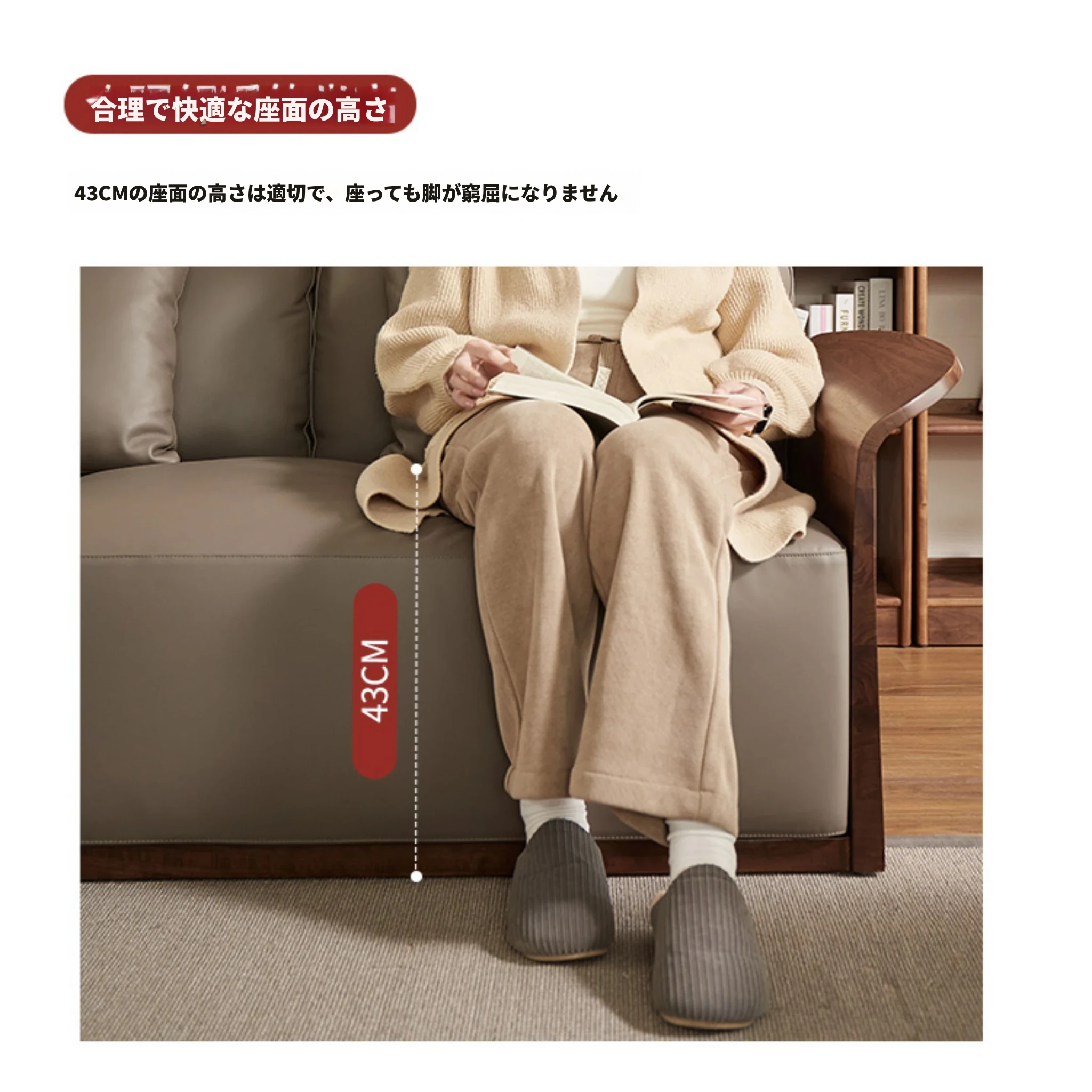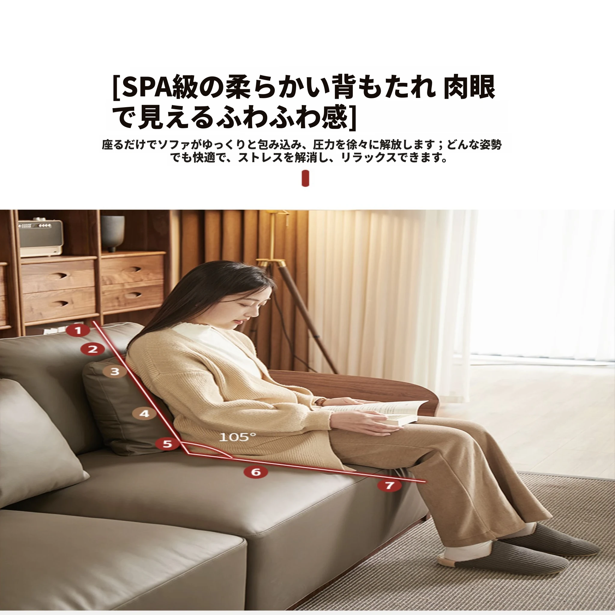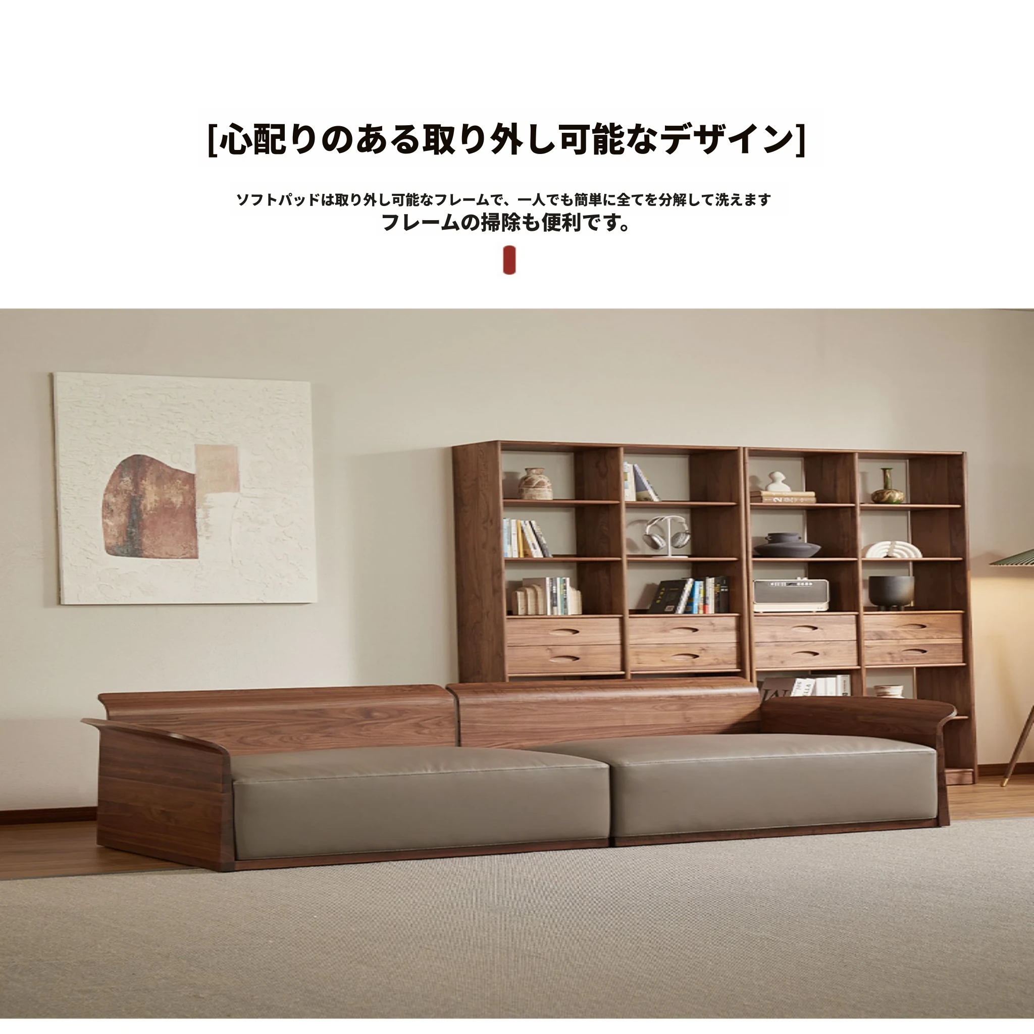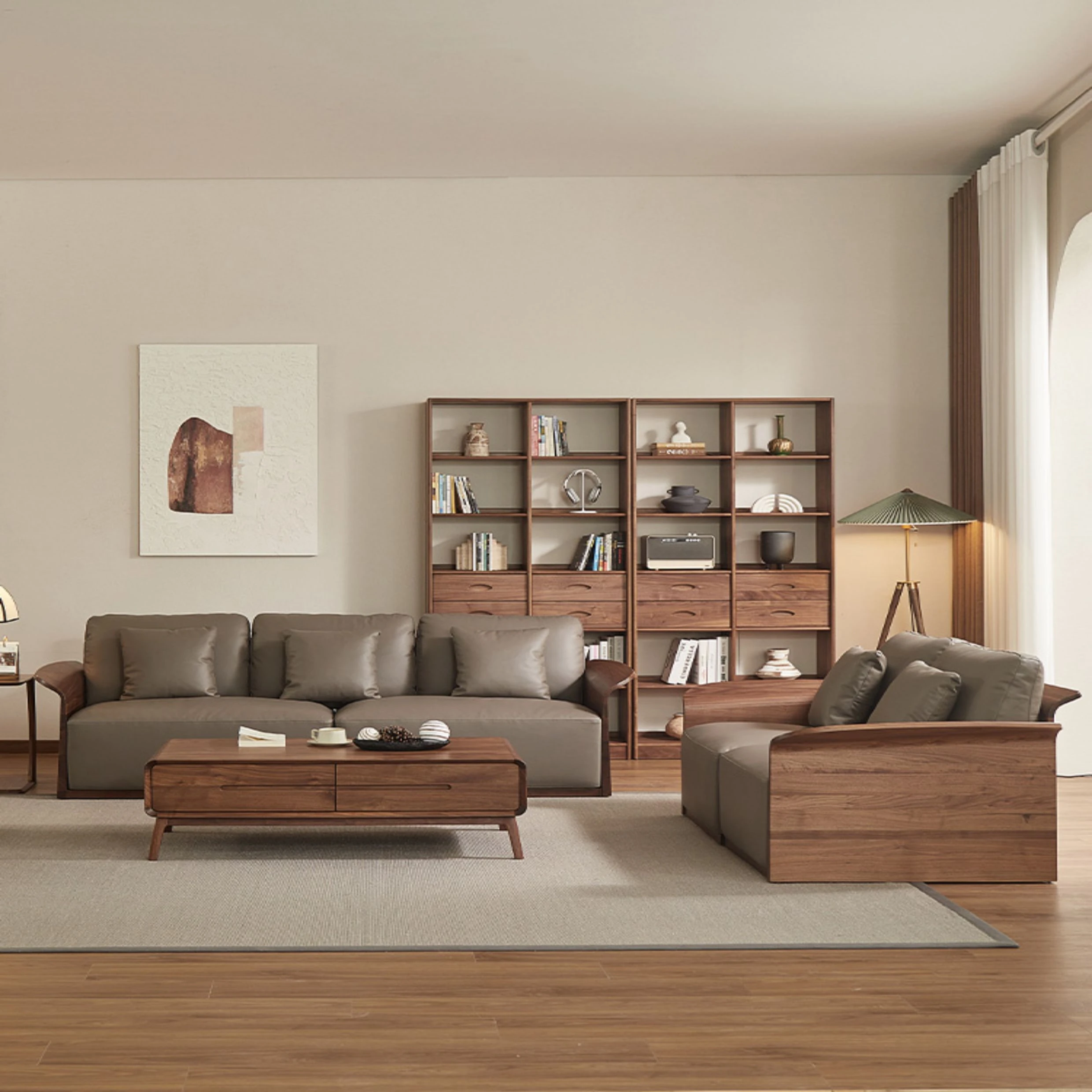 北欧モダンスタイルの別荘向け、北米産ブラックウォールナットソファセット - 新作!高級本革使用、シンプルで洗練されたデザインが魅力のリビングルームにぴったりの逸品。