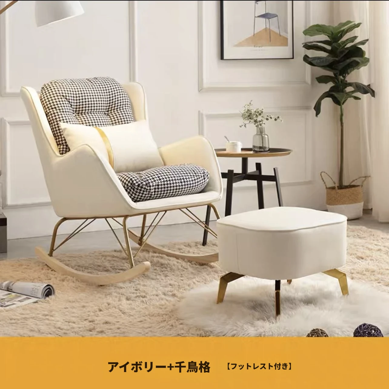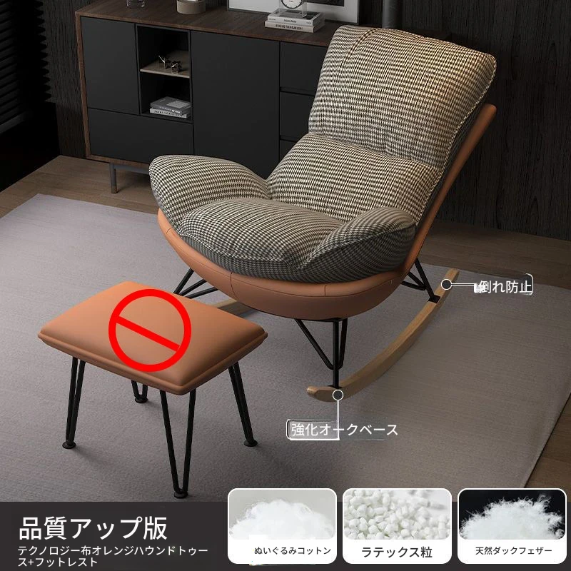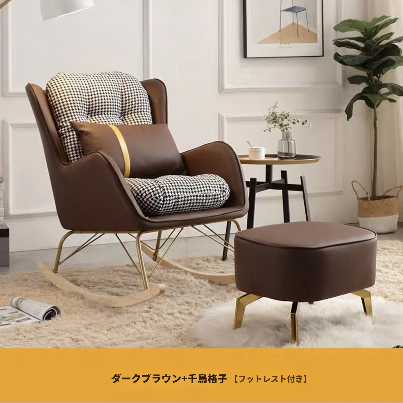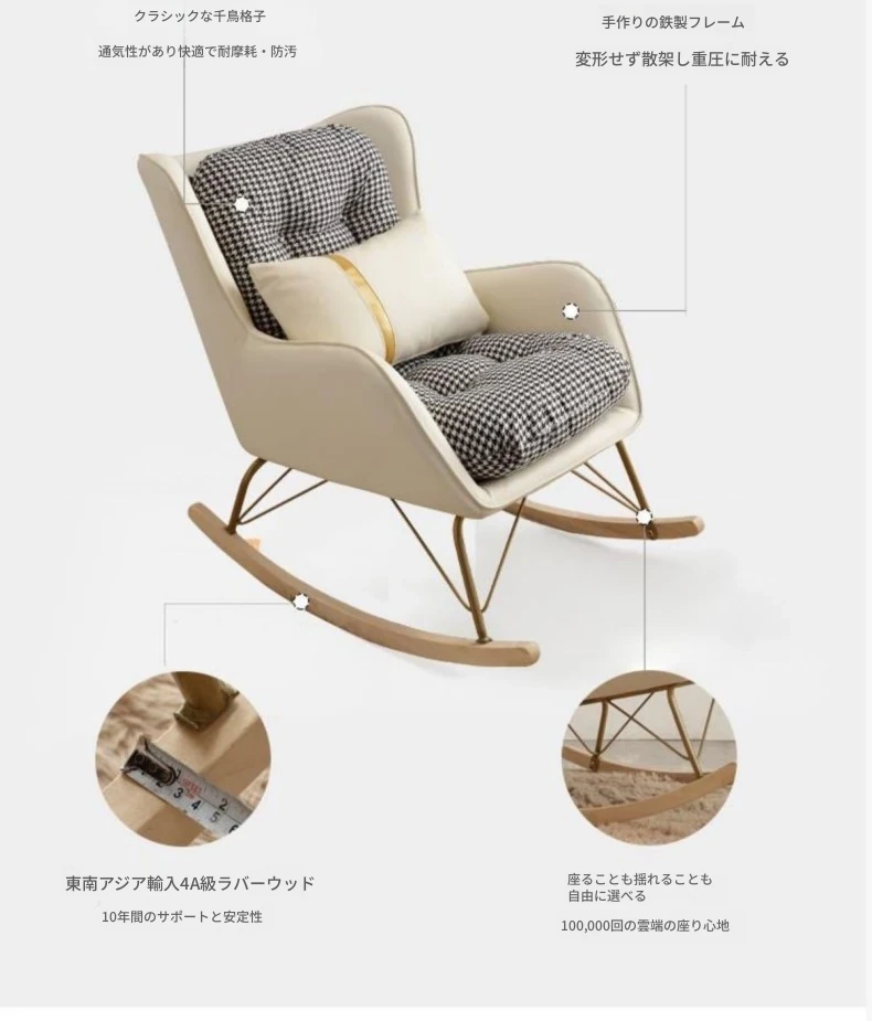 北欧スタイルのリクライニングチェア|大人向けの快適なラウンジチェア|千鳥格子デザイン|寝室やバルコニーに最適|軽やかでラグジュアリーな揺れる椅子|リラックスしたひとときをお楽しみください!
