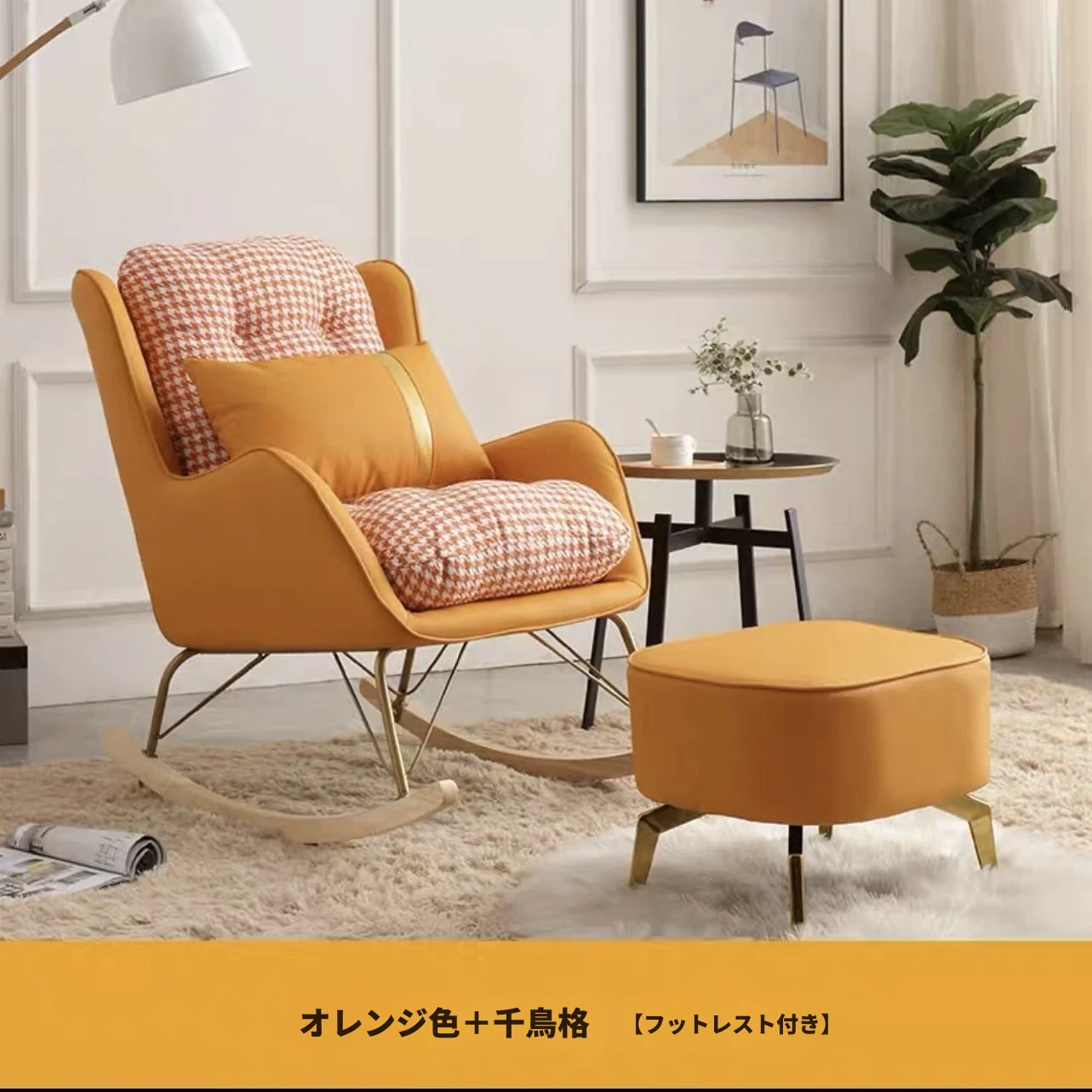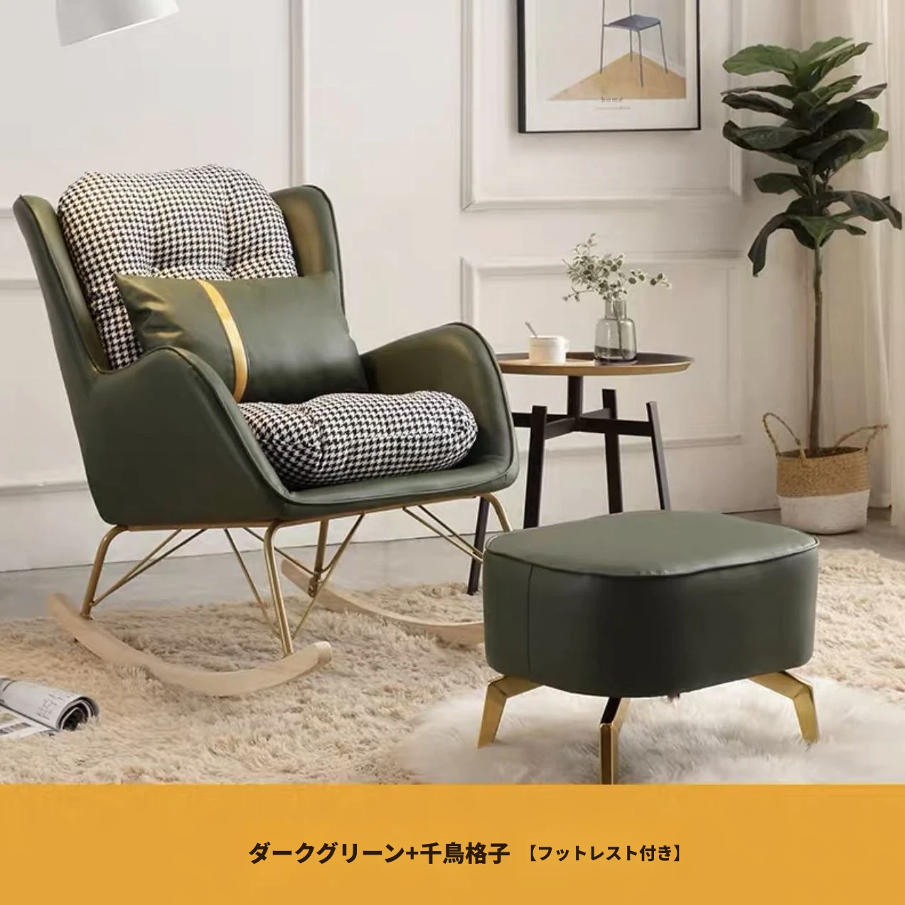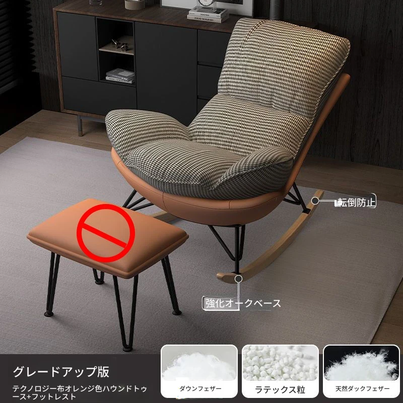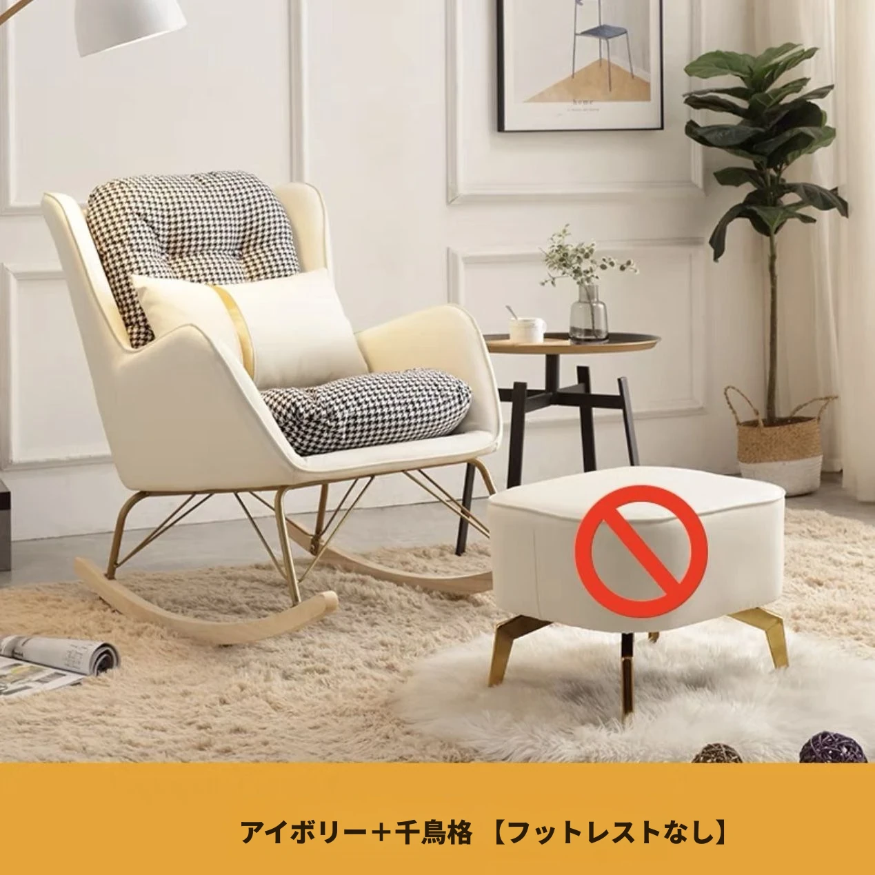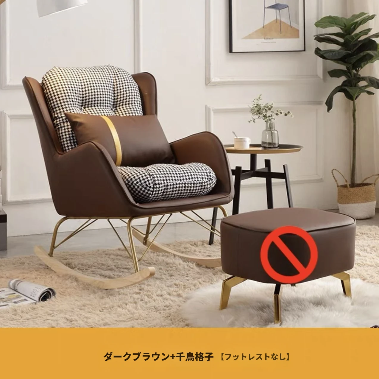 北欧スタイルのリクライニングチェア|大人向けの快適なラウンジチェア|千鳥格子デザイン|寝室やバルコニーに最適|軽やかでラグジュアリーな揺れる椅子|リラックスしたひとときをお楽しみください!
