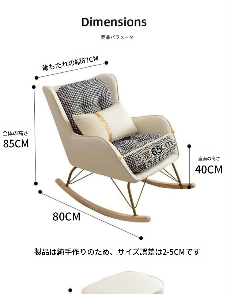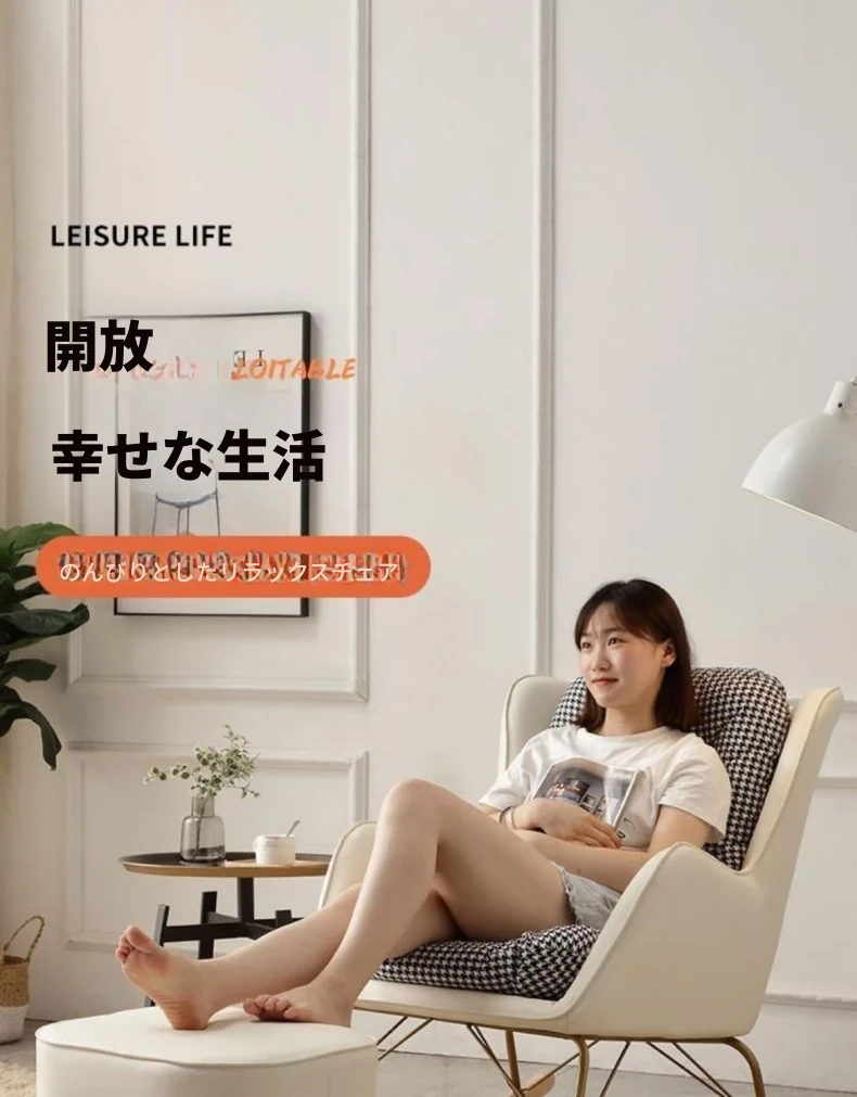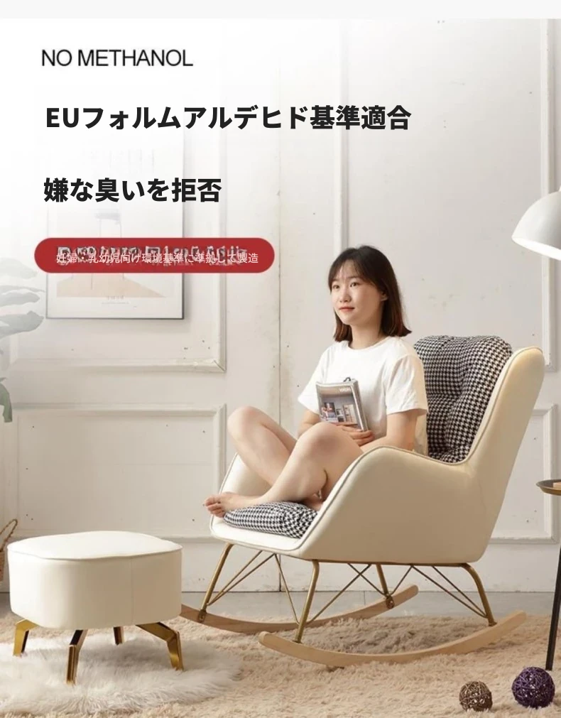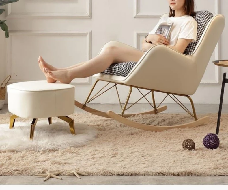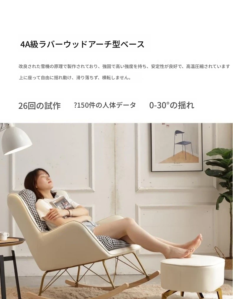 北欧スタイルのリクライニングチェア|大人向けの快適なラウンジチェア|千鳥格子デザイン|寝室やバルコニーに最適|軽やかでラグジュアリーな揺れる椅子|リラックスしたひとときをお楽しみください!