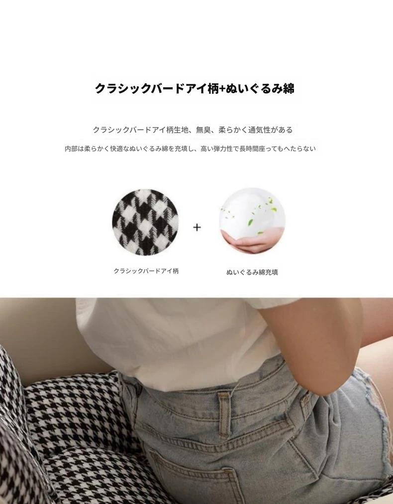 【超おすすめ】アイボリー千鳥格+足+ウエストクッション