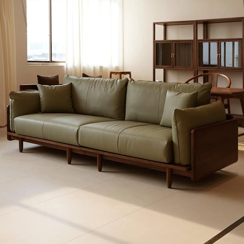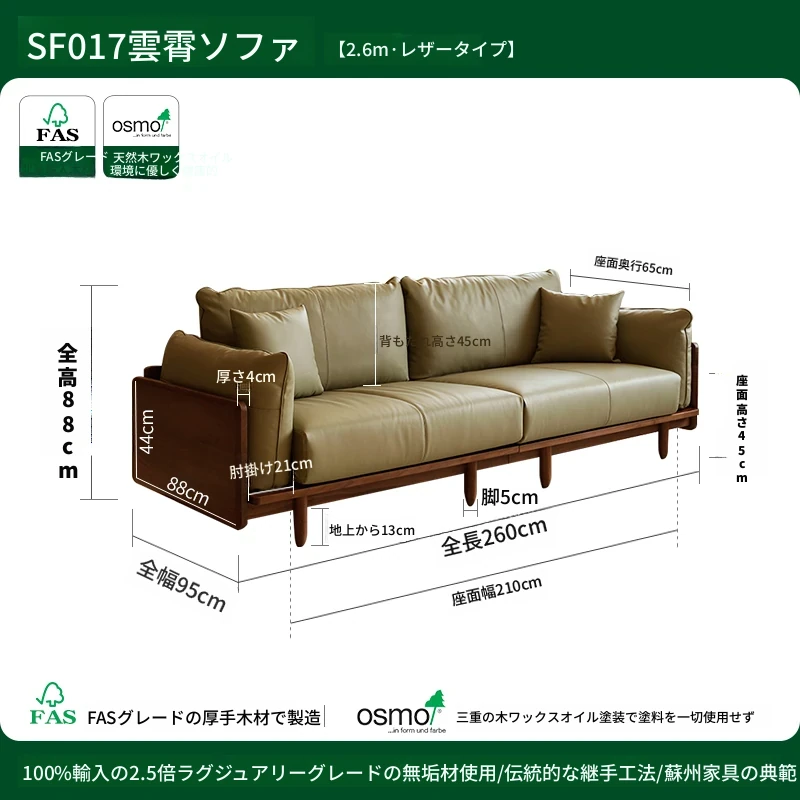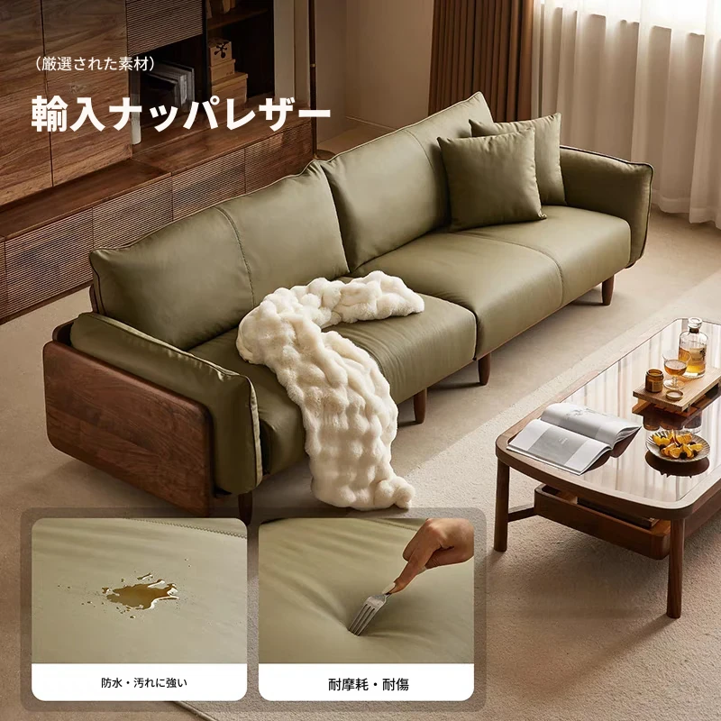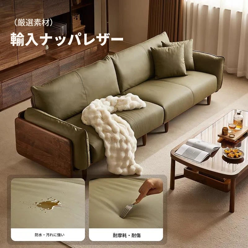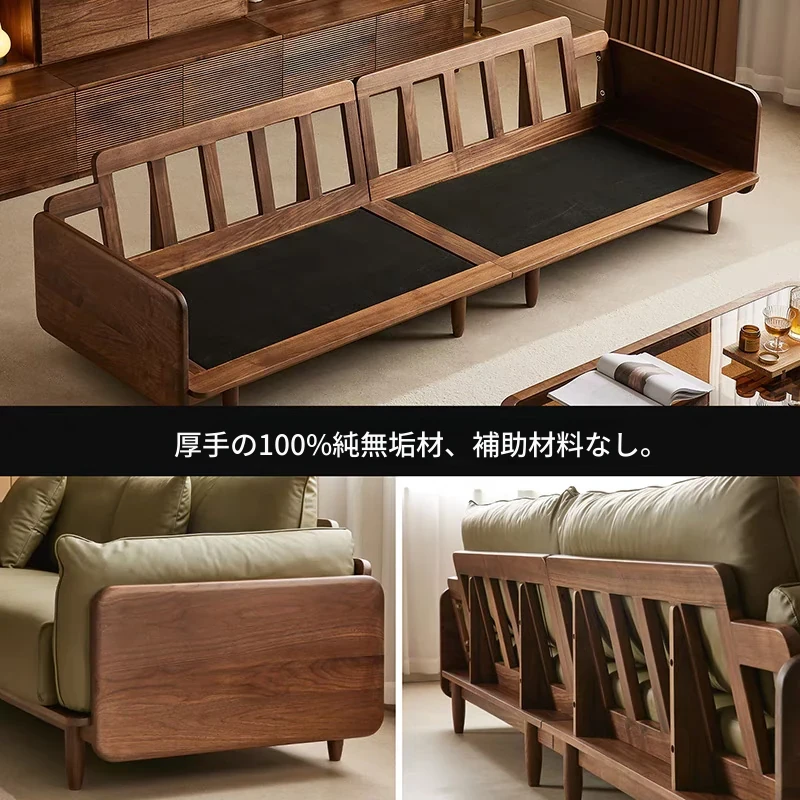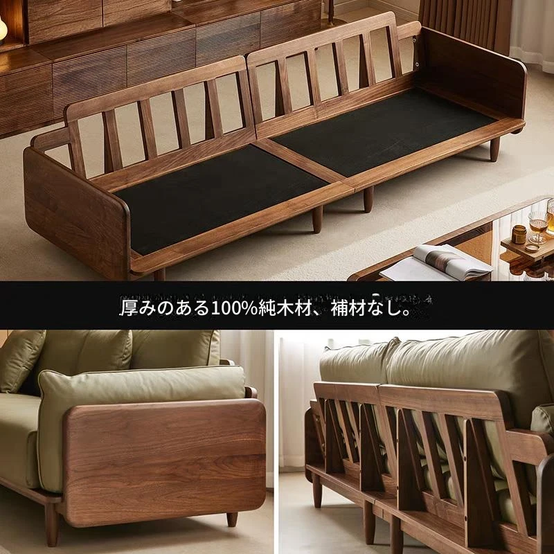 北米産ブラックウォールナットのレトロデザイン!本革使用の小型リビング向け4人掛けソファ。無垢材の温もりを感じる、洗練されたスタイルでお部屋を格上げ!
