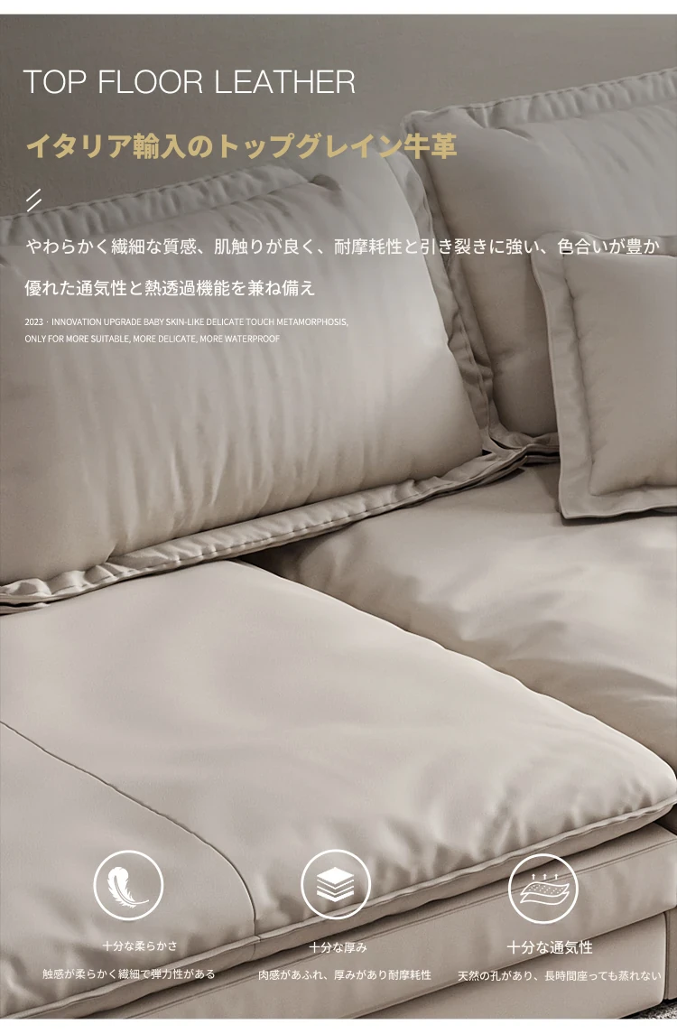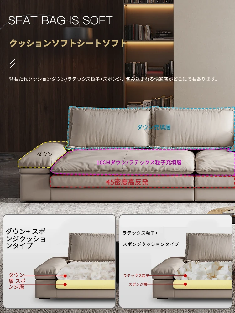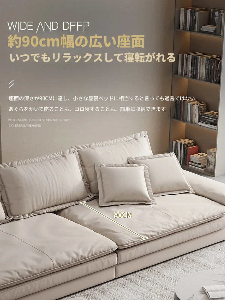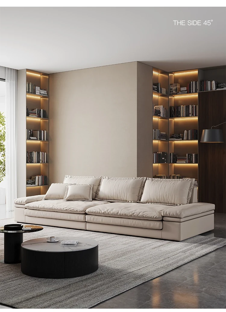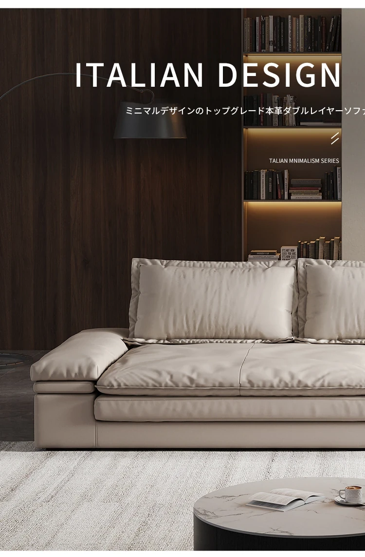 リビングルームに最適!超深座面とワイドなデザインのイタリアンミニマリストインポート本革ソファ。巨大なサイズで、佛山の大きなお部屋にぴったりな直排ソファ。贅沢な快適さをお楽しみください!