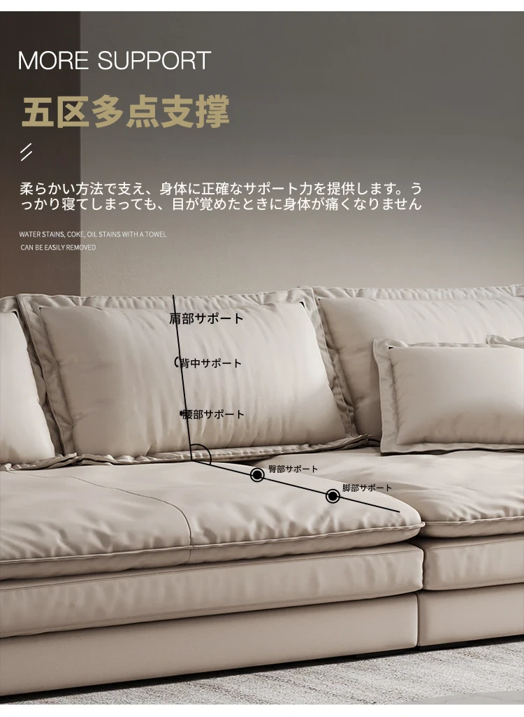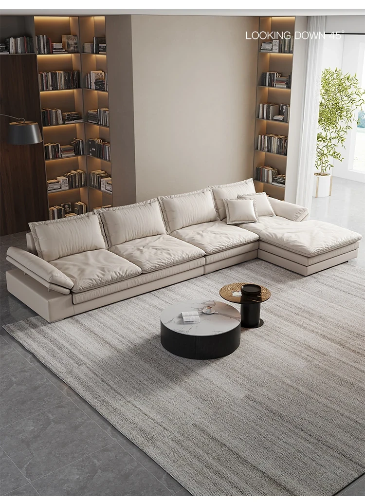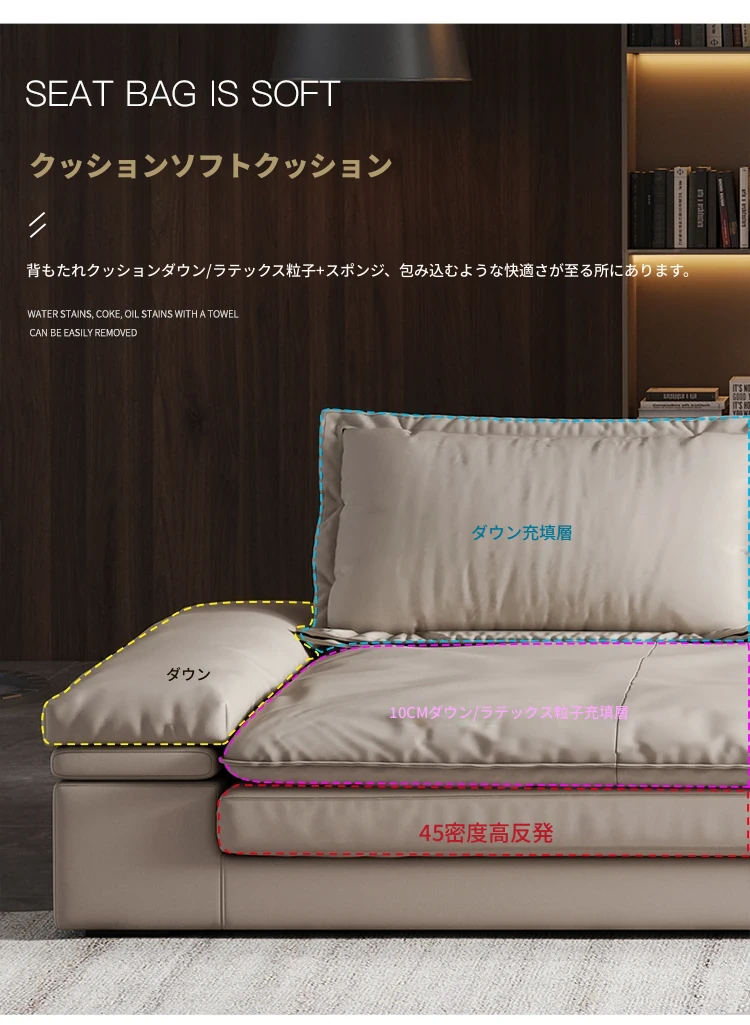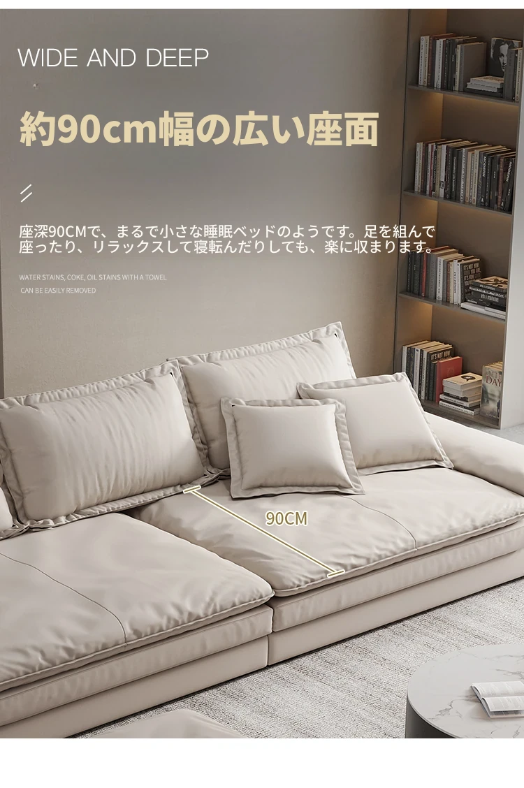 リビングルームに最適!超深座面とワイドなデザインのイタリアンミニマリストインポート本革ソファ。巨大なサイズで、佛山の大きなお部屋にぴったりな直排ソファ。贅沢な快適さをお楽しみください!