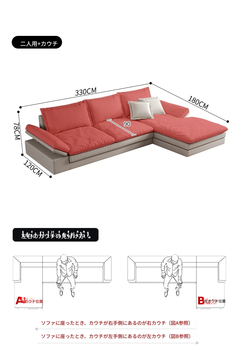 S-Ⅲ本革|ダウン【1.2幅】三人+貴妃3.3メートル