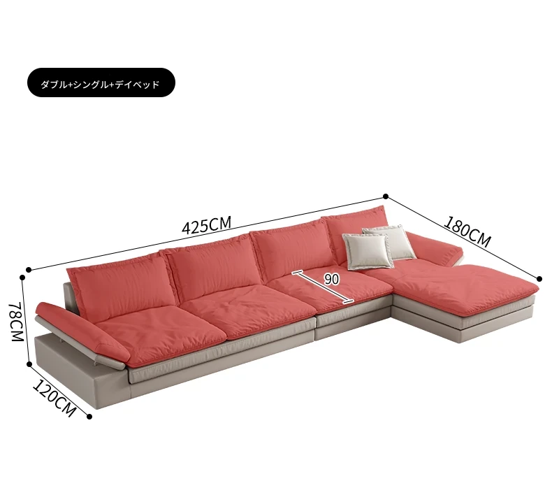 S-Ⅲ本革|ダウン【1.2幅】三人+一人+貴妃4.25メートル