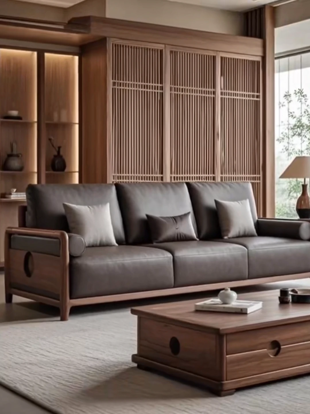 北米産ブラックウォールナットの本革ソファ - モダンなリビングルームにぴったりの高級ミニマリズム、宋氏美学を追求した家具。ホテルや別荘、クラブに最適な一品!