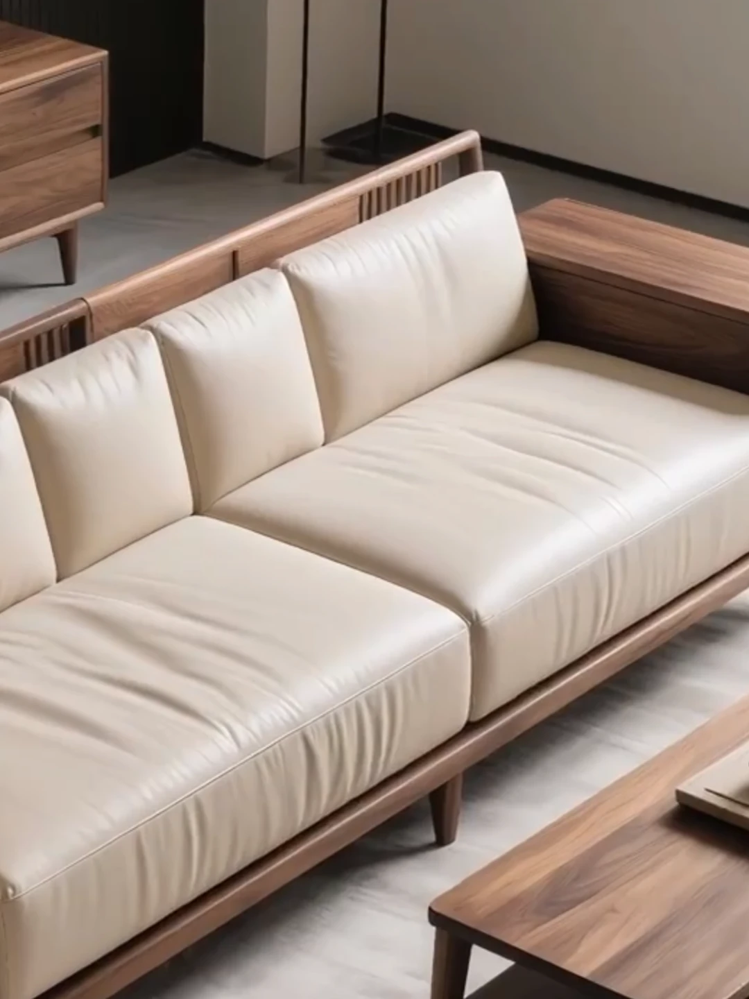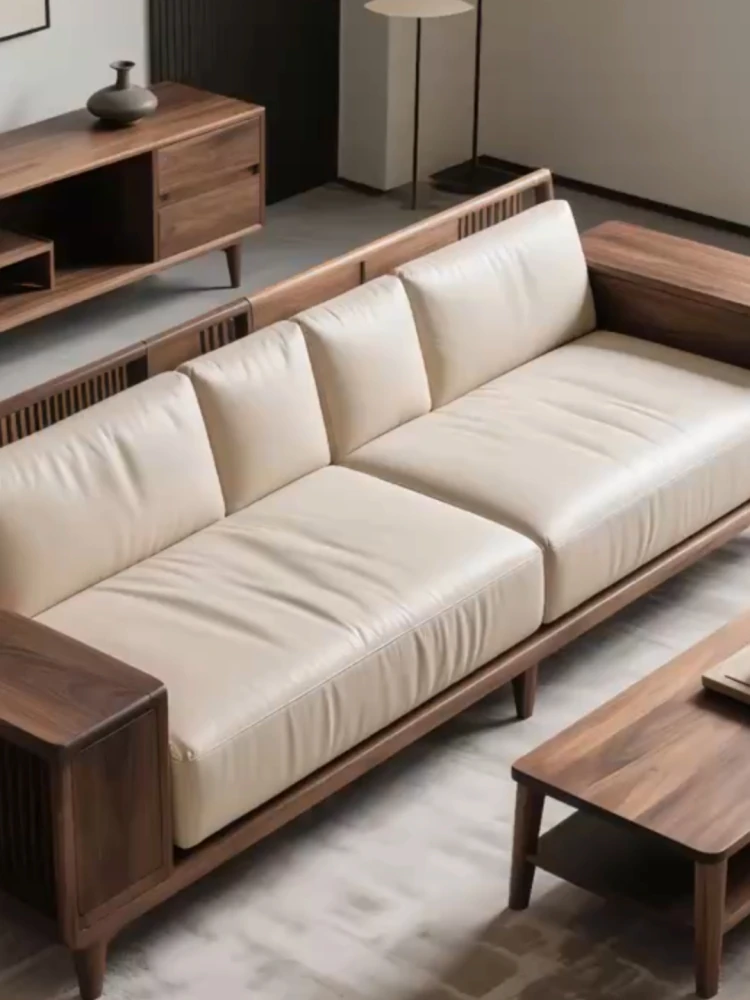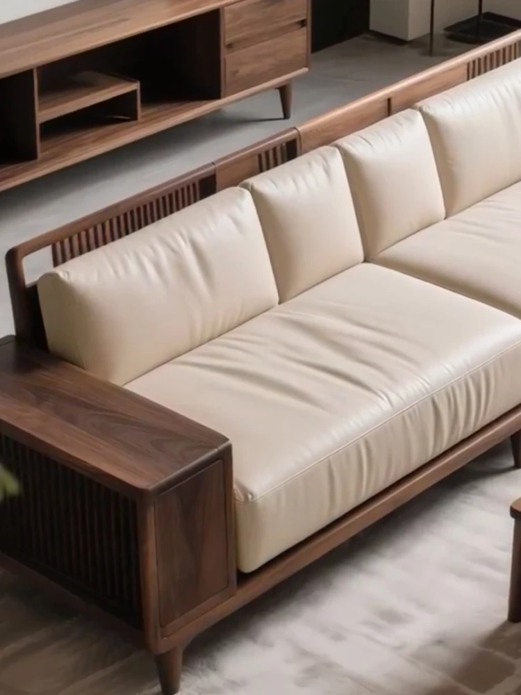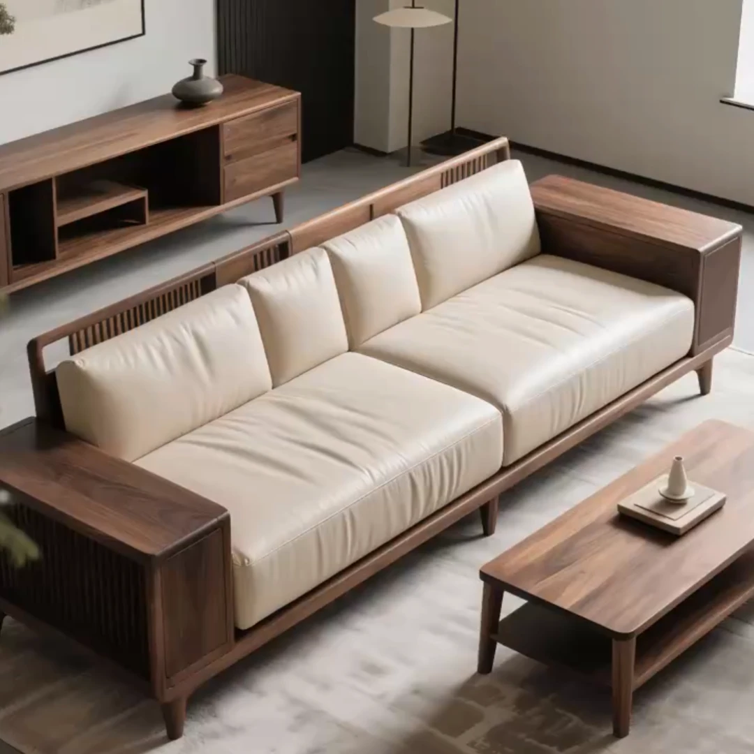 北米産ブラックウォールナットソファ - シンプルでモダンなデザイン、ラグジュアリーな本革仕立て。ホテルや別荘、大小様々な居住空間にぴったりな高級家具。あなたのリビングを特別な空間に!