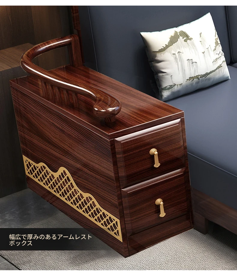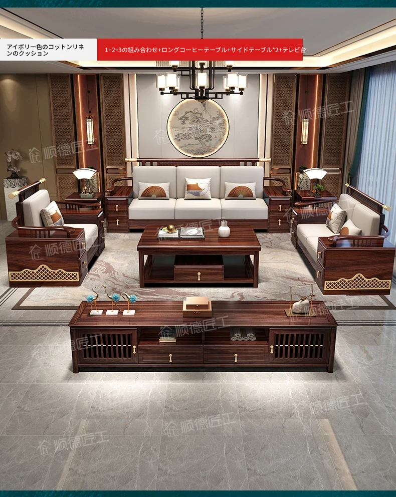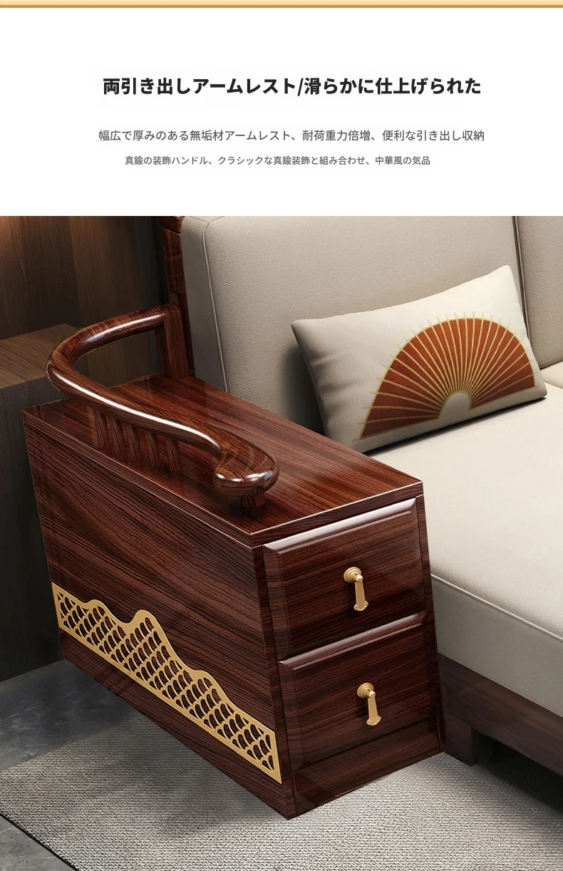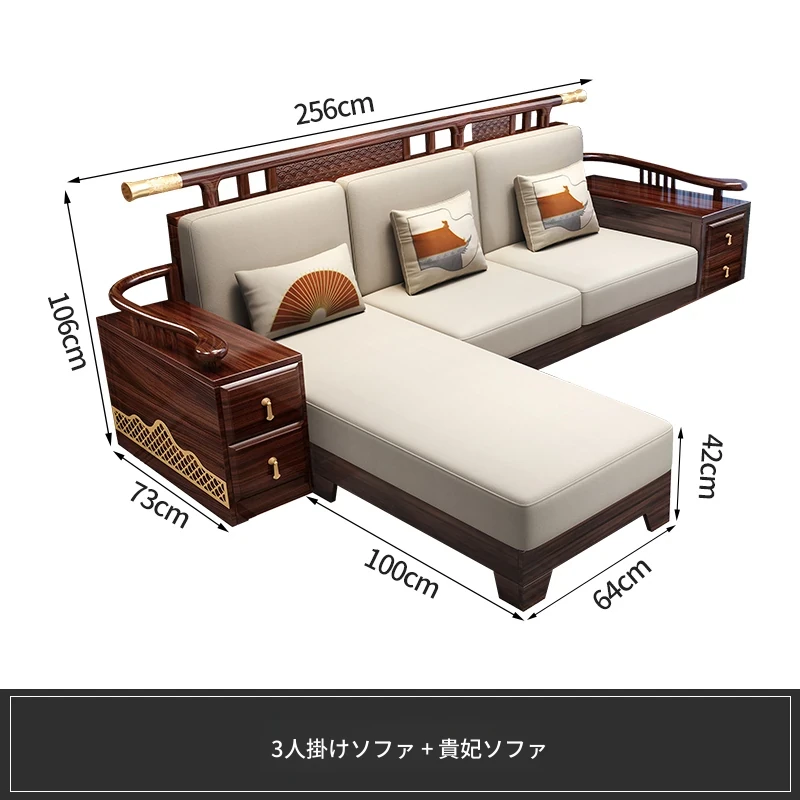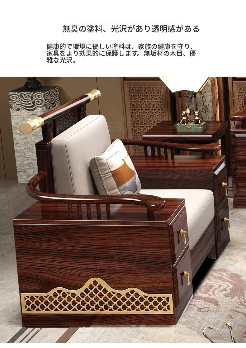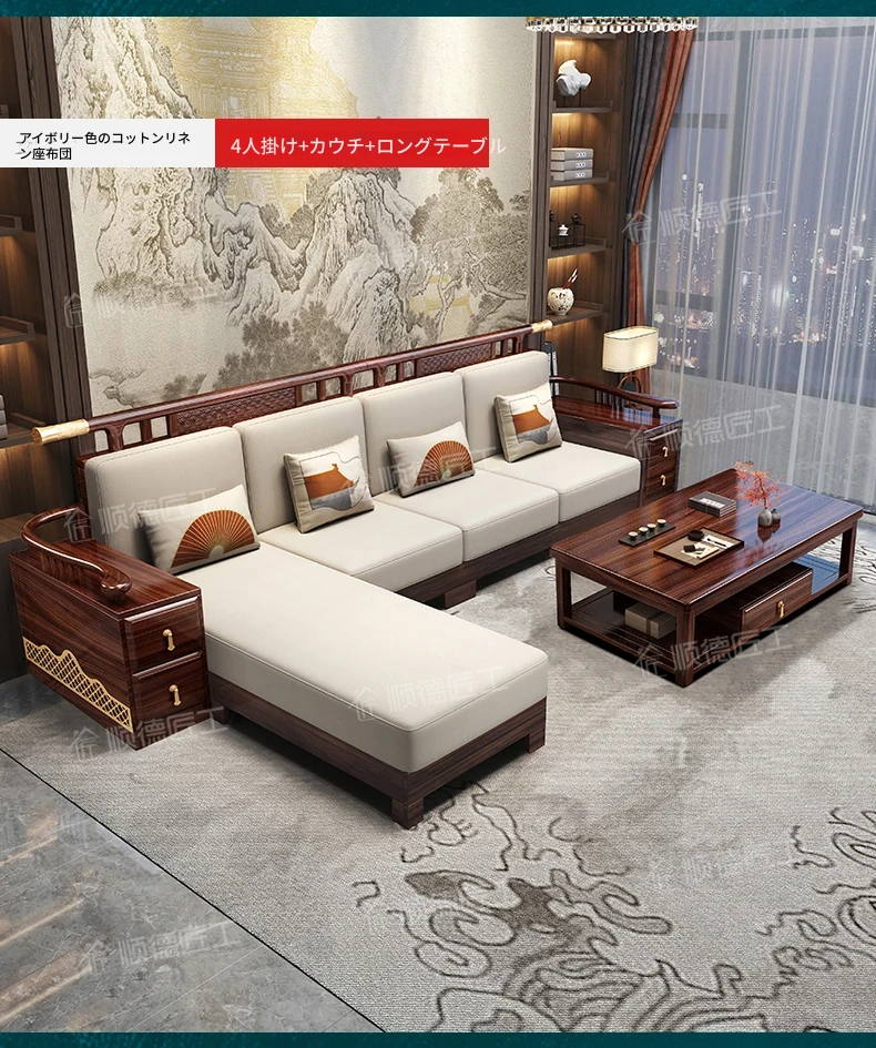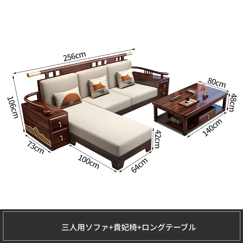 ウィルクス材の無垢材ソファセット1+2+3 新中式軽奢角型貴妃ソファ リビングルームにぴったりの中国風木工家具。高級感あふれるデザインで、あなたの空間を華やかに演出します。