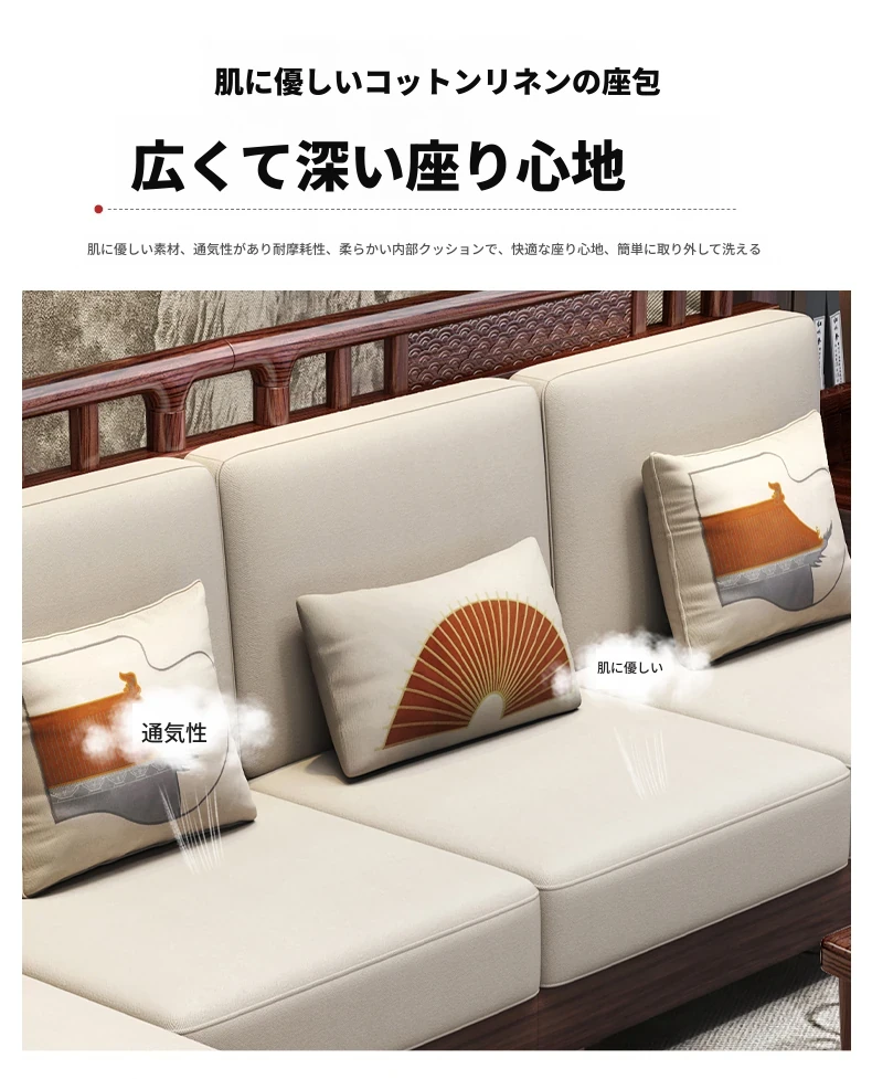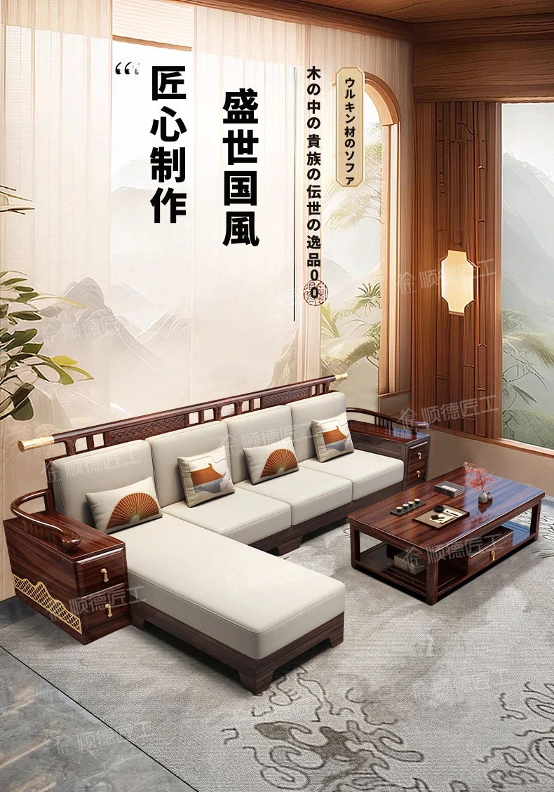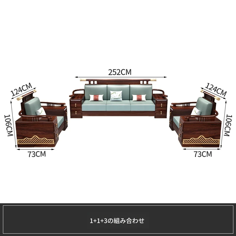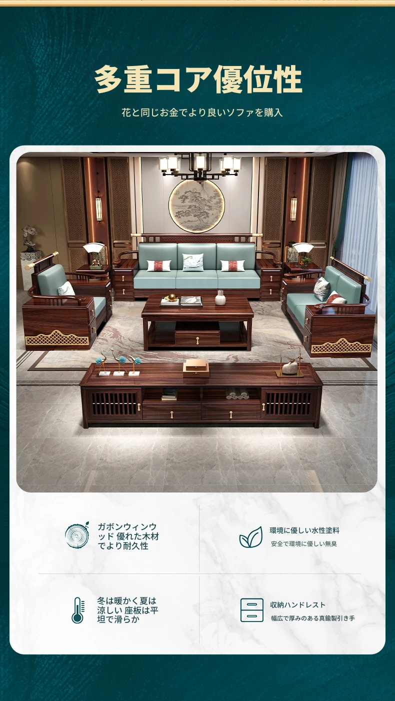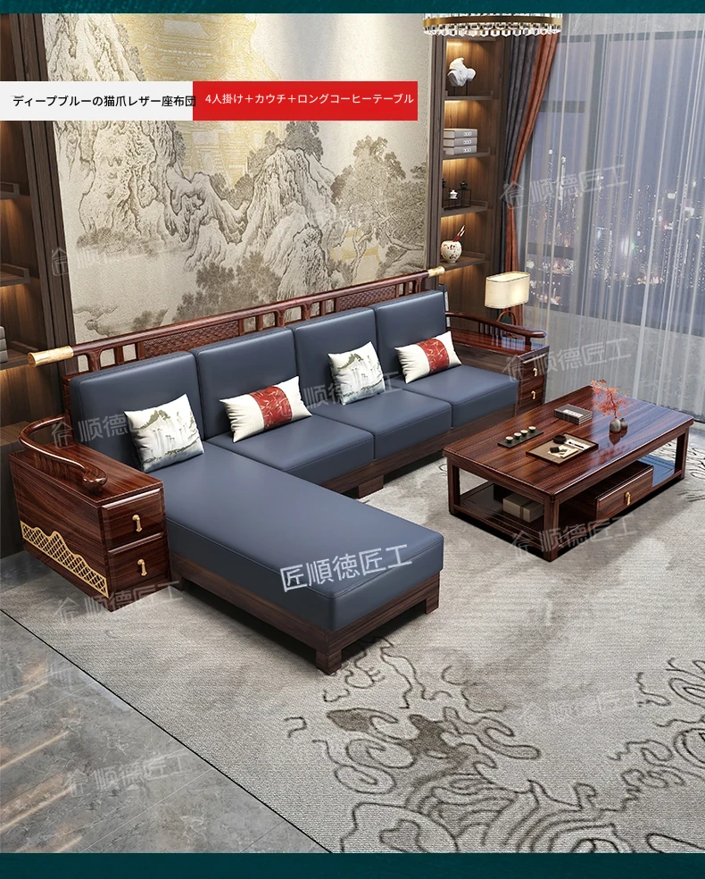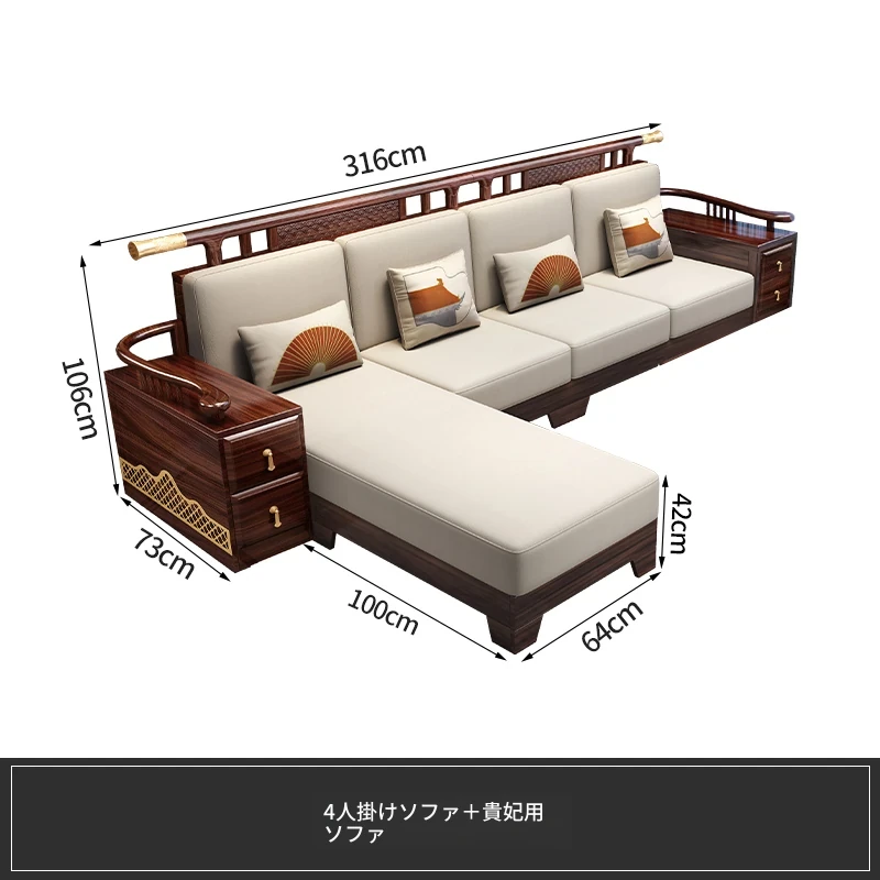 ウィルクス材の無垢材ソファセット1+2+3 新中式軽奢角型貴妃ソファ リビングルームにぴったりの中国風木工家具。高級感あふれるデザインで、あなたの空間を華やかに演出します。