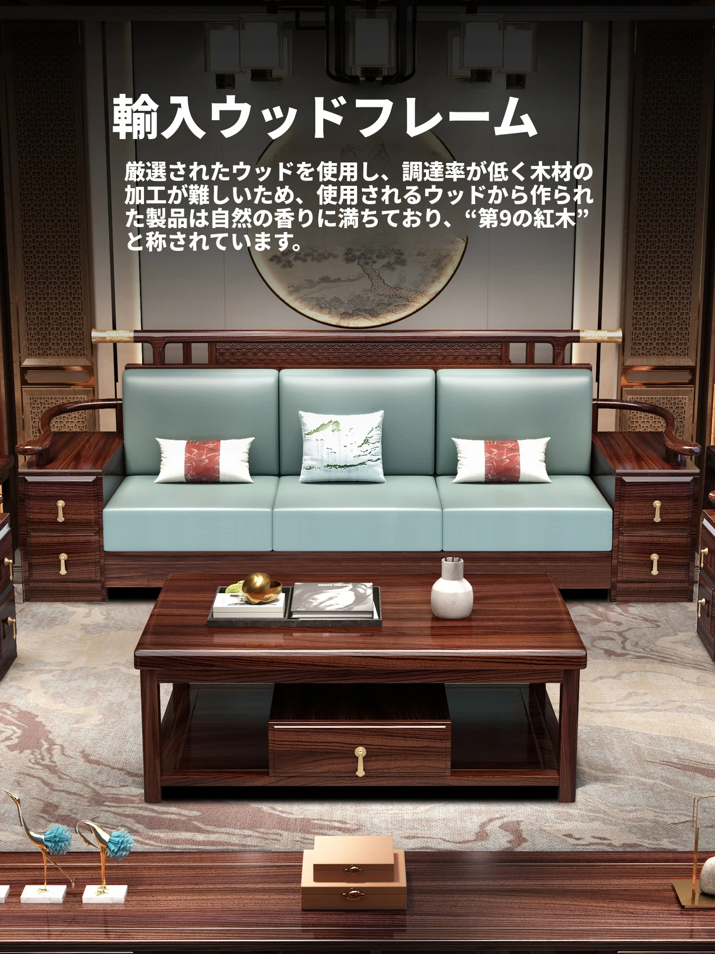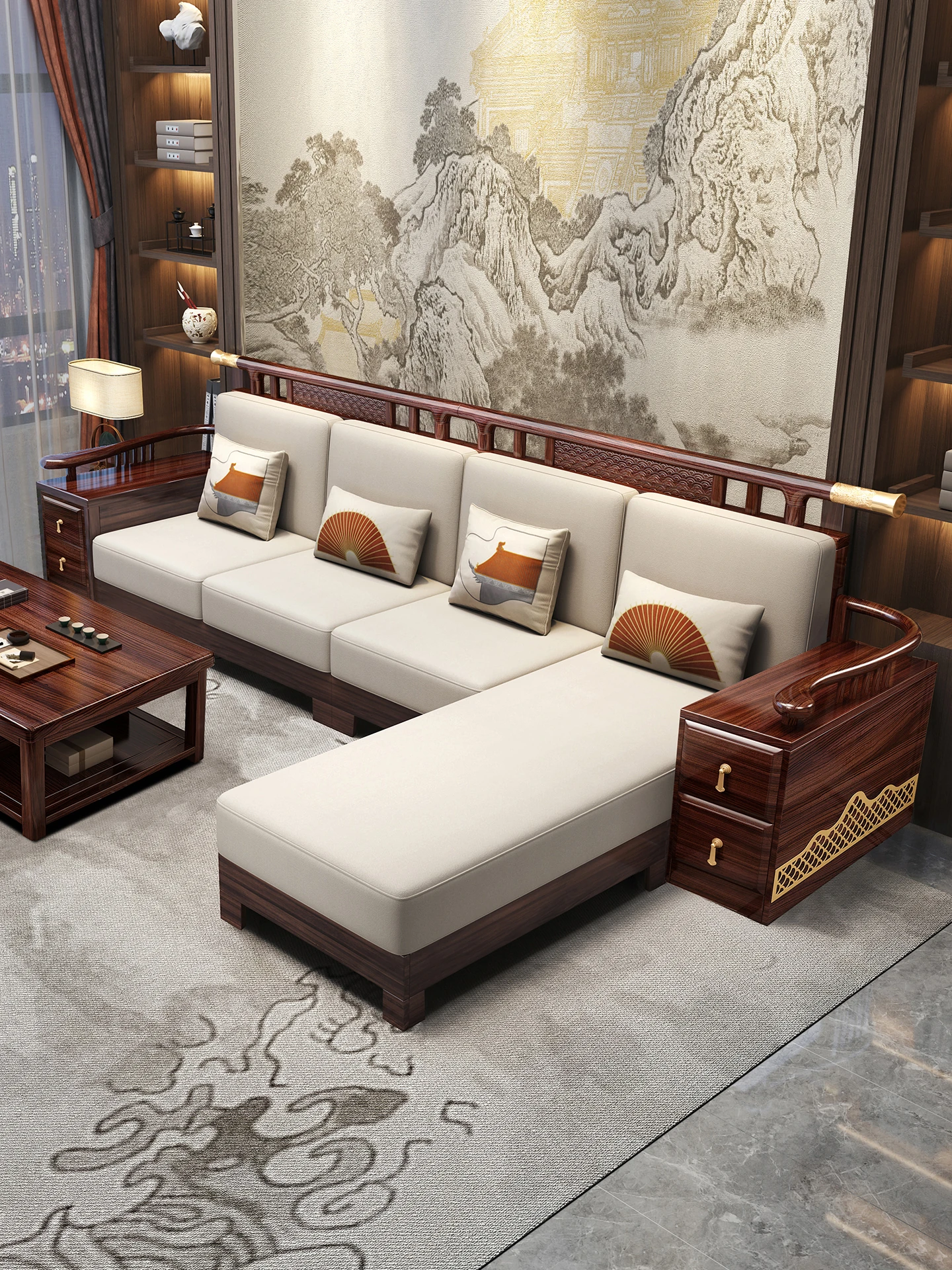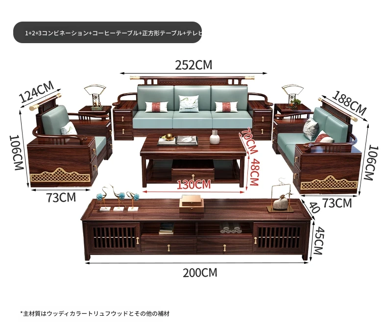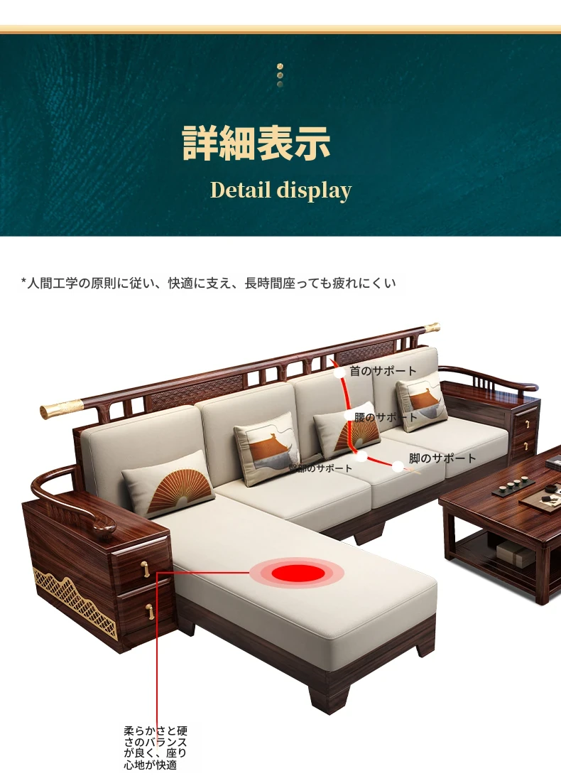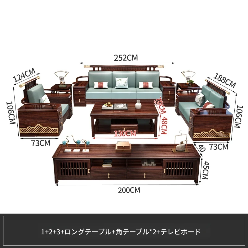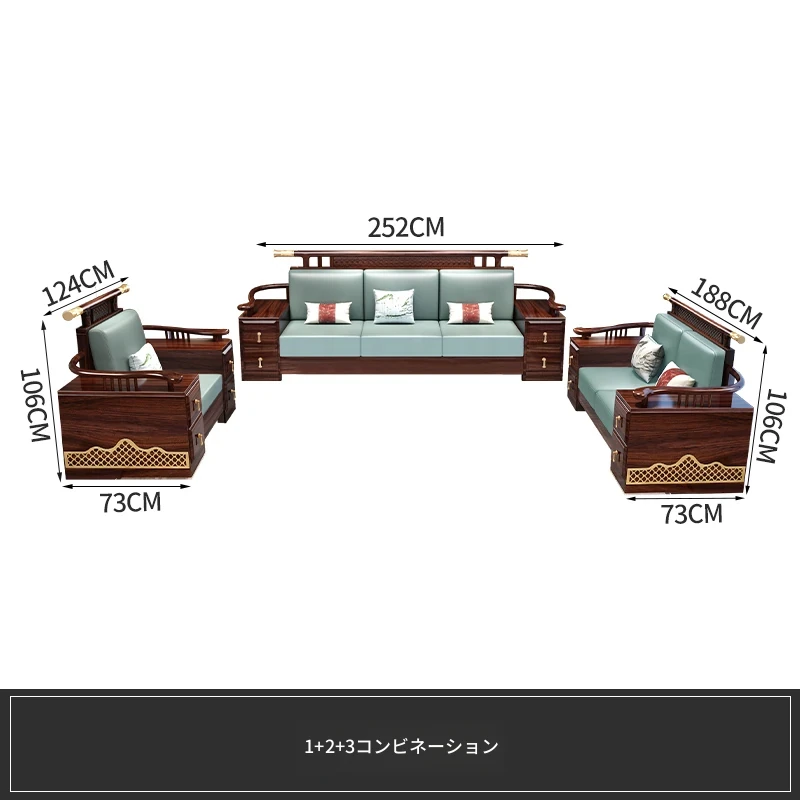 ウィルクス材の無垢材ソファセット1+2+3 新中式軽奢角型貴妃ソファ リビングルームにぴったりの中国風木工家具。高級感あふれるデザインで、あなたの空間を華やかに演出します。