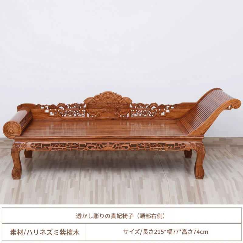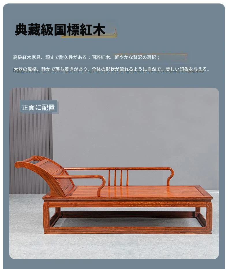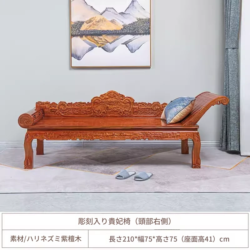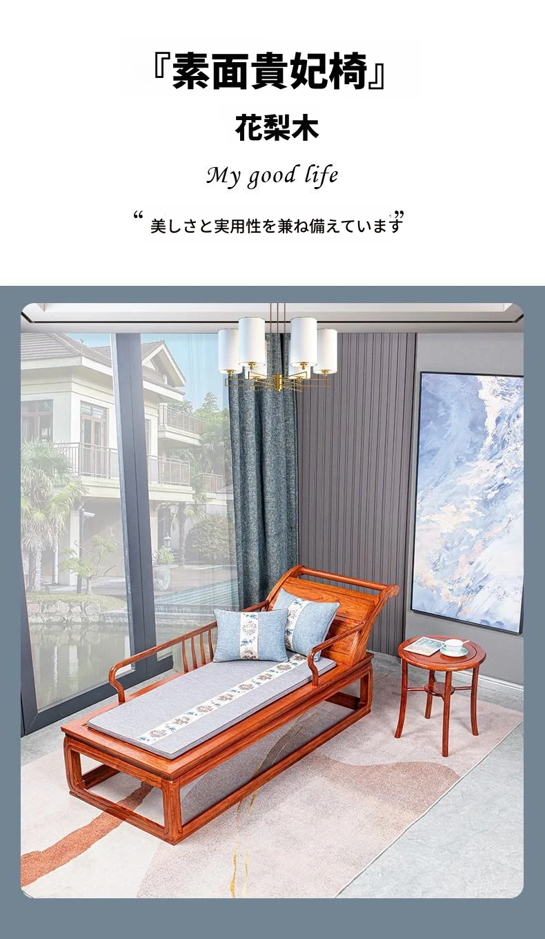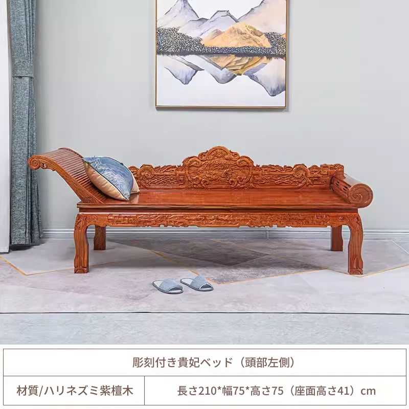 新中式デザインの花梨木貴妃床 - 優雅な紅木ソファベッド、実木製の美人榻。高級刺猬紫檀素材を使用した貴妃椅子で、リビングルームに華やかさをプラス!快適さと美しさを兼ね備えた家具で、特別な空間を演出します。