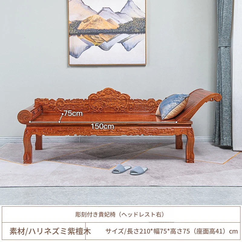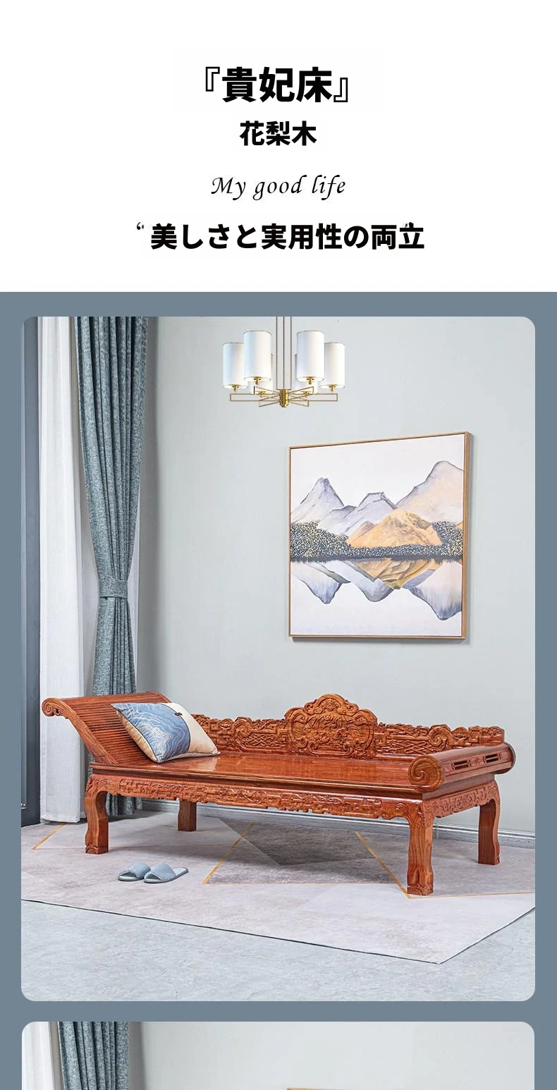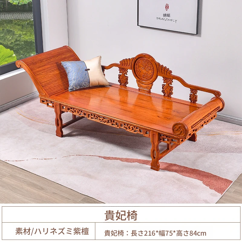 新中式花梨木貴妃ベッド|高級感溢れる実木製リビング用紅木ソファチェア|リラックスできる刺猬紫檀製の貴妃椅子|優雅な美人榻で、特別な空間を演出!