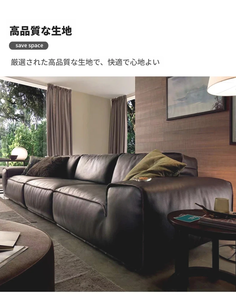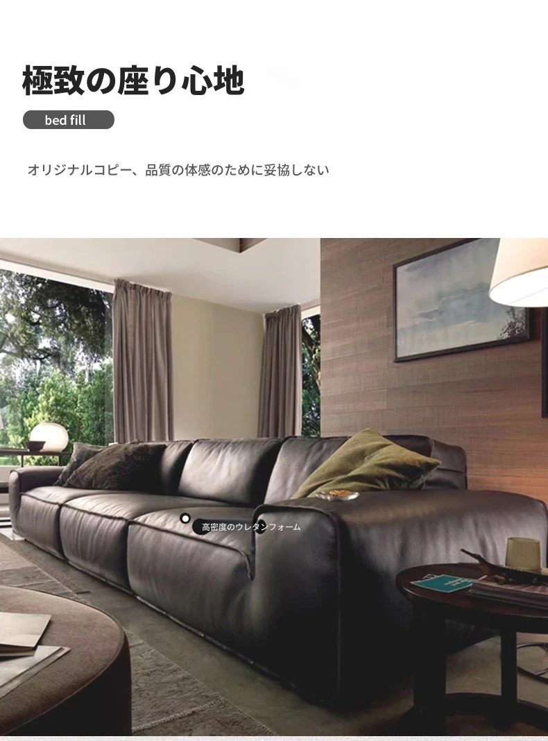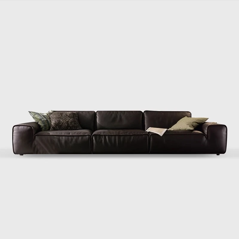 夏図の大黒牛直排本革ソファ - イタリアンミニマリズムの極み、上質な一枚革で仕立てた小型リビングにぴったりのブラック豆腐ブロックソファ!快適さとスタイルを兼ね備えた一品。