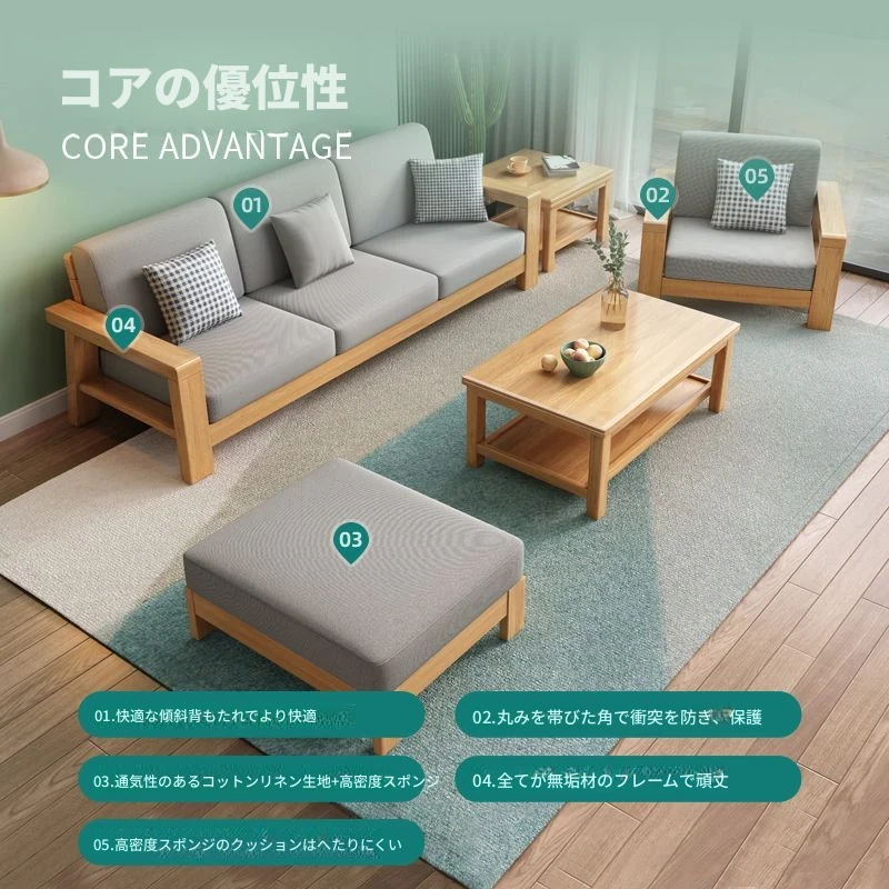 天然ゴムの木を使用した全木製ソファセット|シンプルでモダンなデザイン|リビングにぴったり|ソファベッドとしても使える小型住宅向け木製ソファ!快適な空間を実現します!