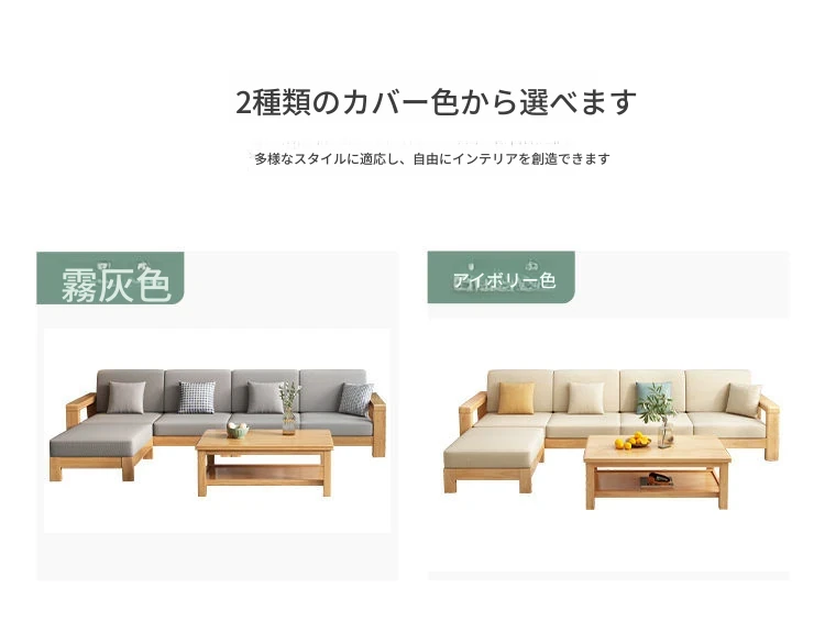 四人用ソファ+オットマン+ロングテーブル【引き出し付き】/ナチュラルカラー【アイボリー布カバー】
