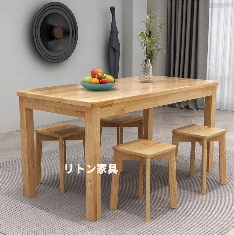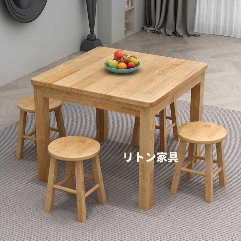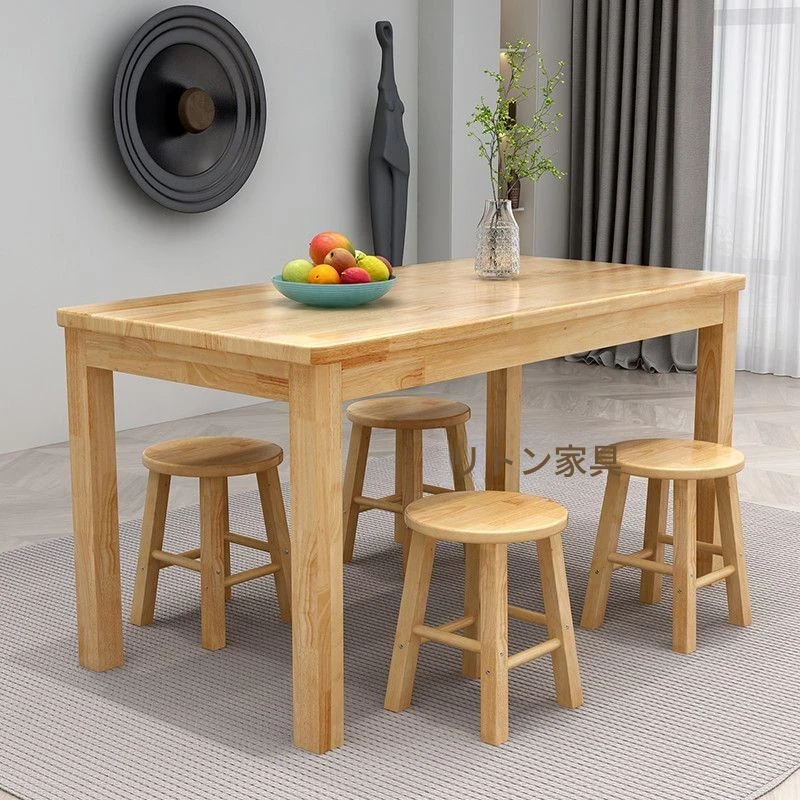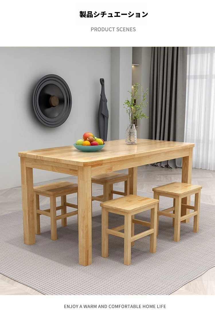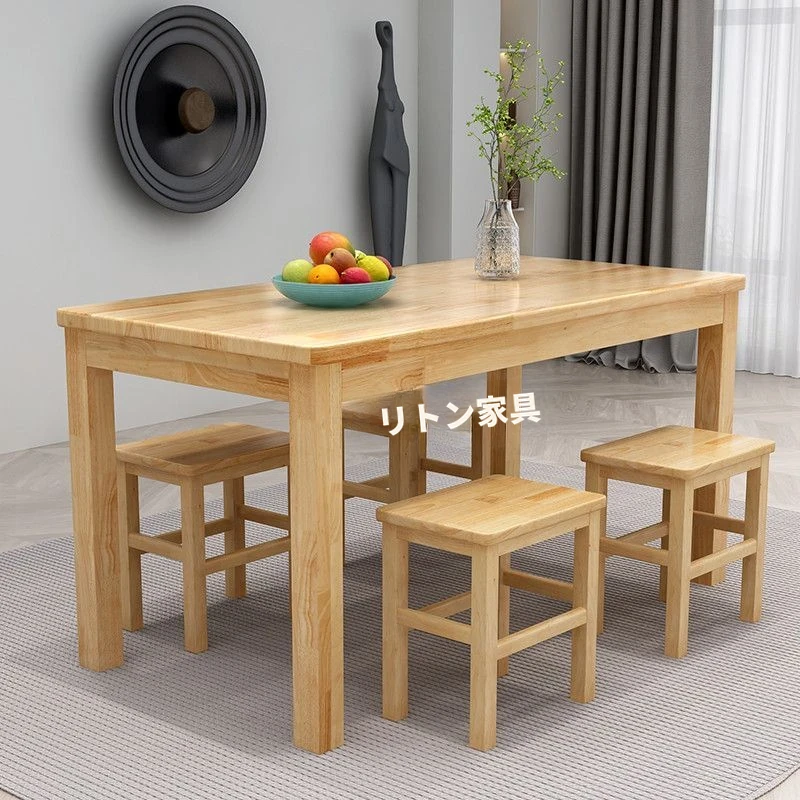 リビングルーム用実木テーブル&チェアセット - 商業用ラーメン店や軽食店にも最適な長方形の朝食テーブルで、家庭でも使いやすいデザイン。おしゃれで機能的な空間を演出します!