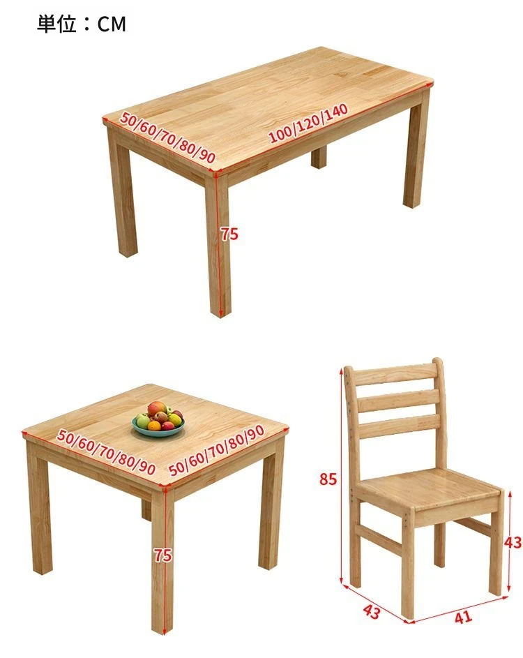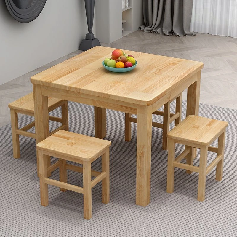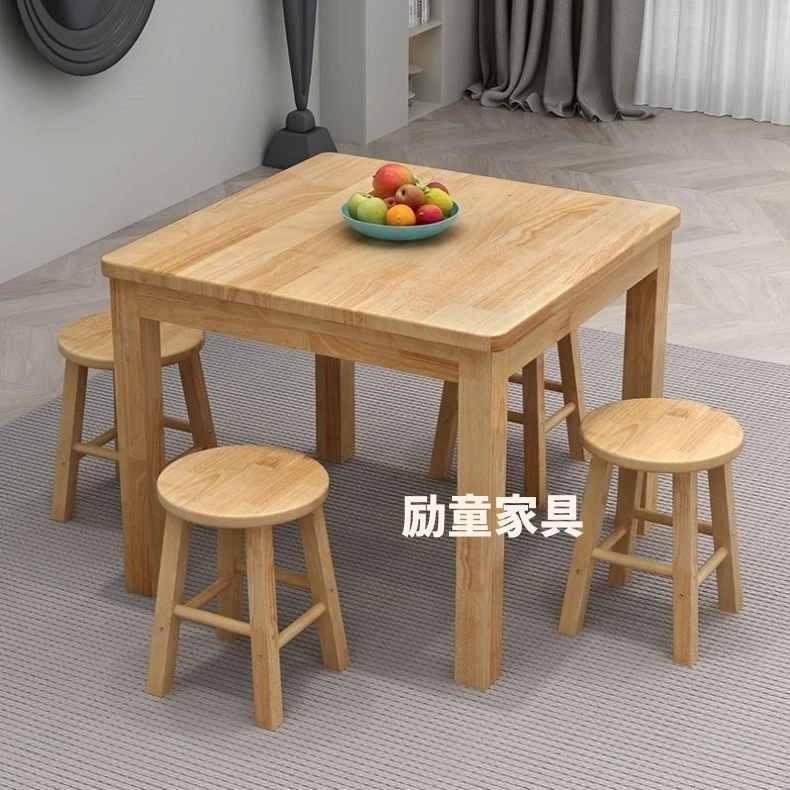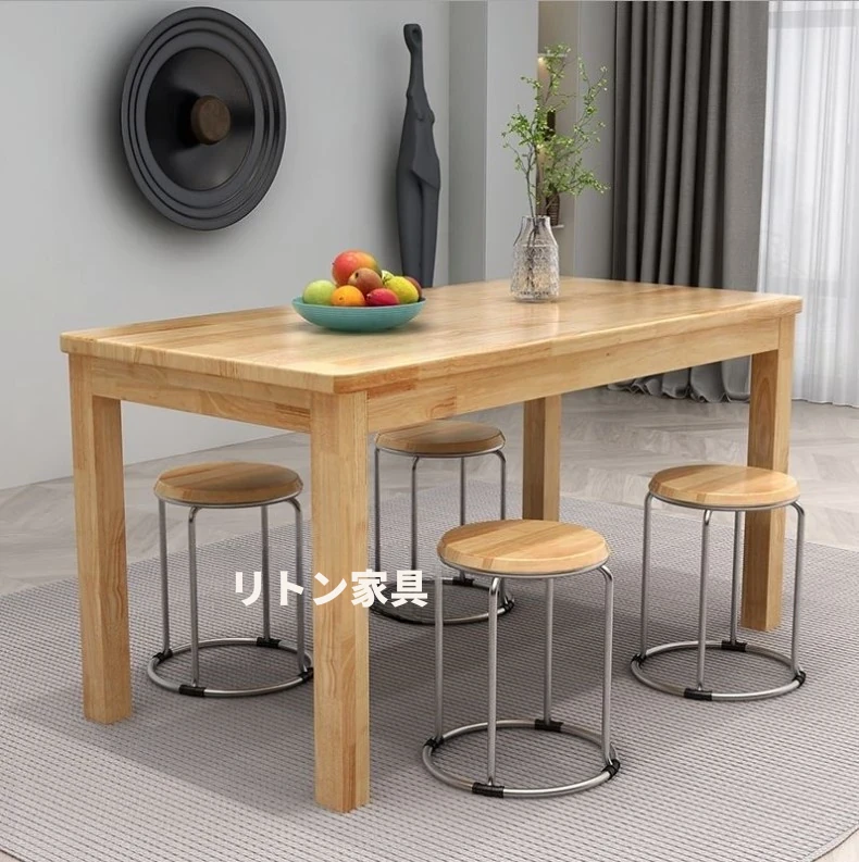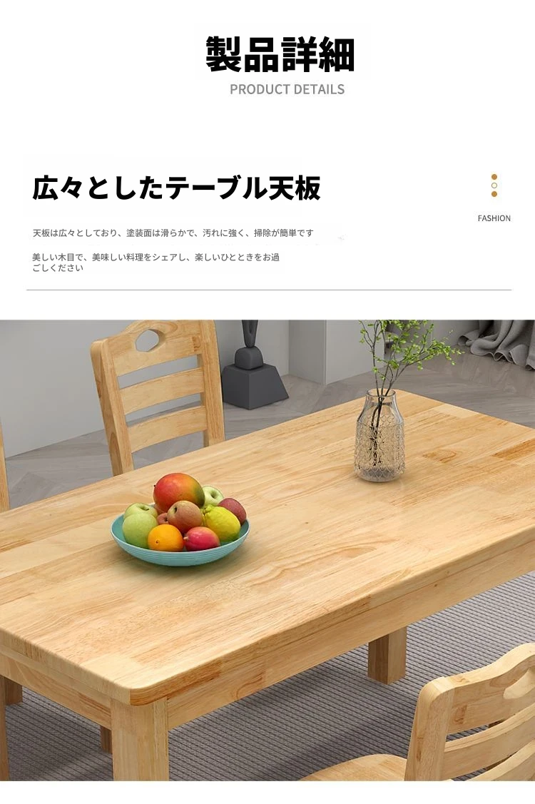リビングルーム用実木テーブル&チェアセット - 商業用ラーメン店や軽食店にも最適な長方形の朝食テーブルで、家庭でも使いやすいデザイン。おしゃれで機能的な空間を演出します!