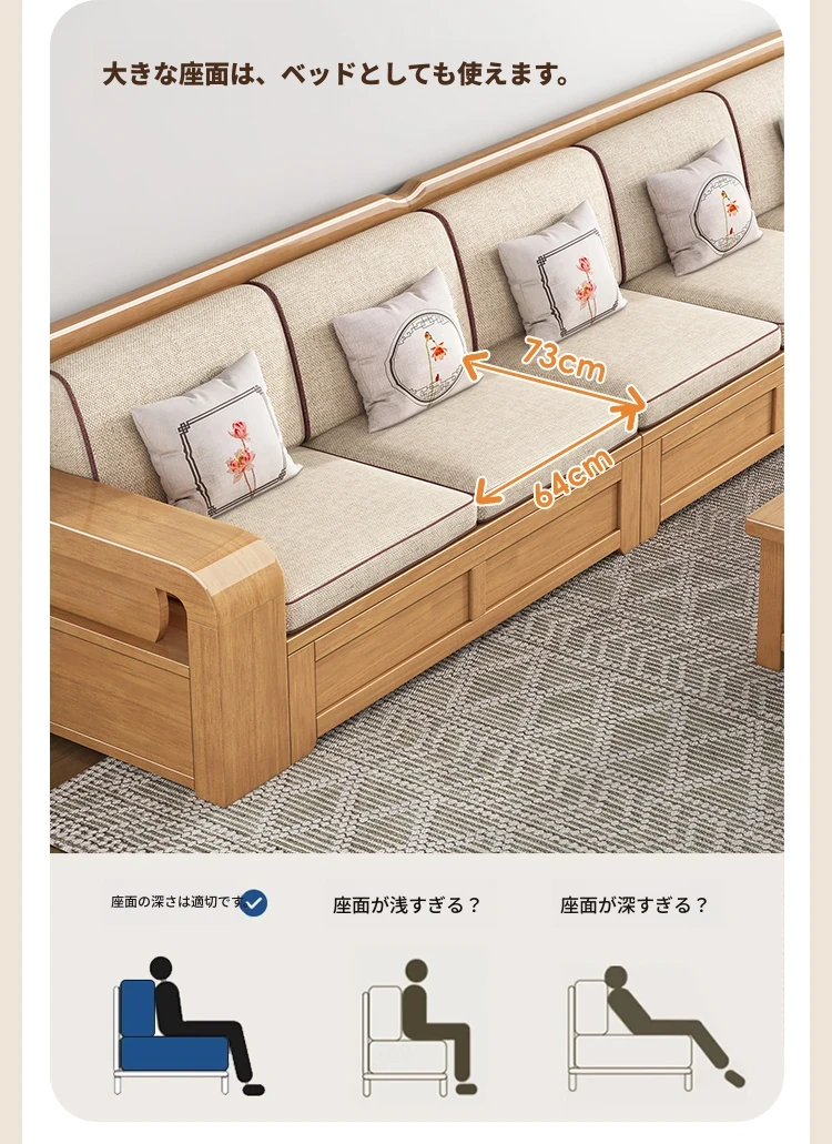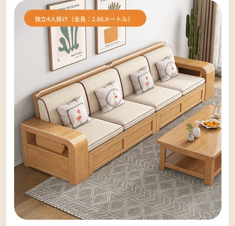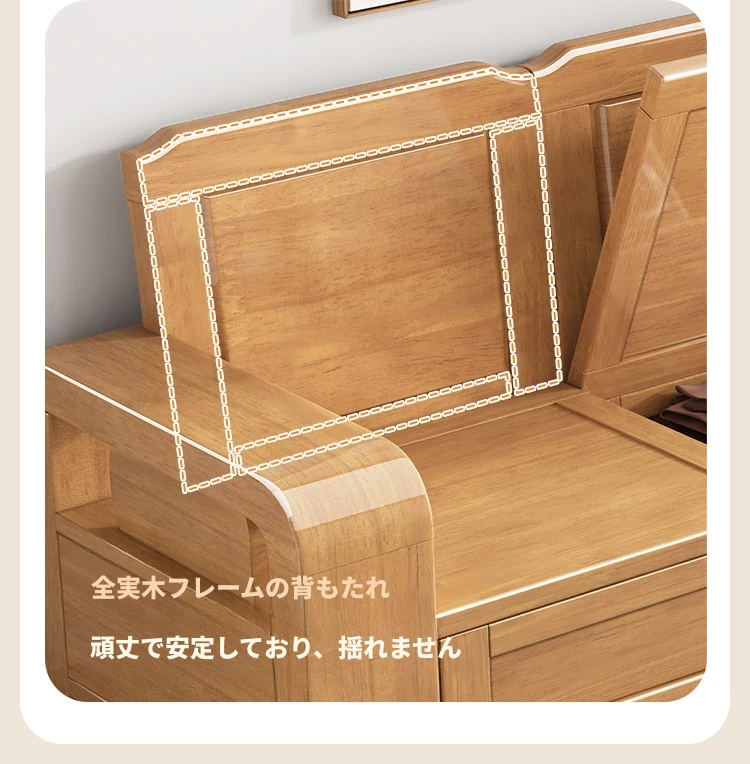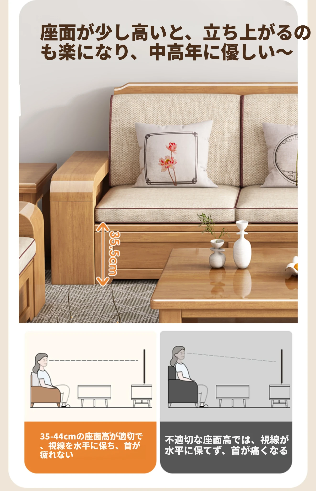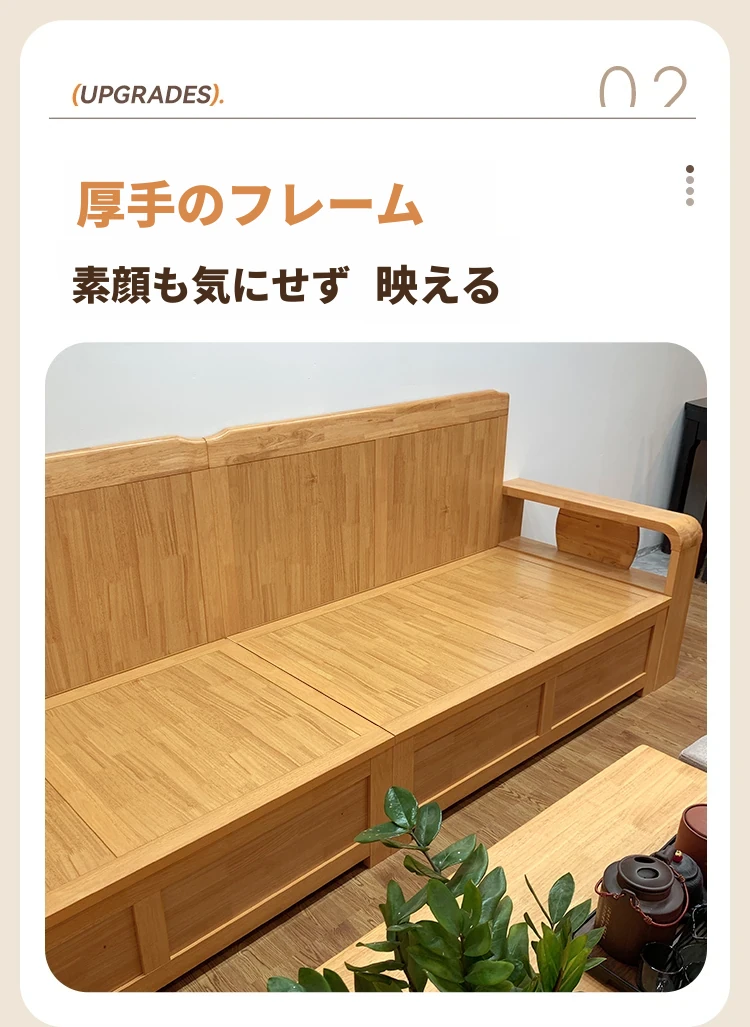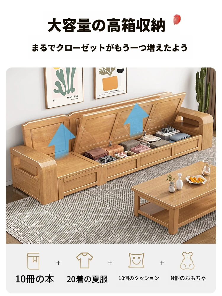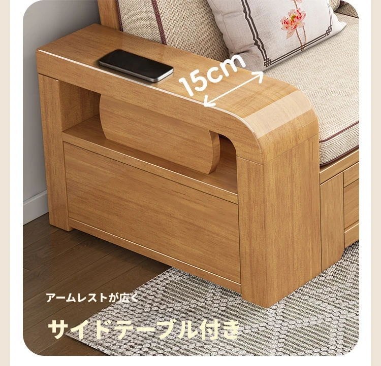 無垢材ソファ リビング用 全面無垢家具 ナチュラル収納付き ストレートタイプ 三人掛け 冬夏兼用の収納ソファで快適な空間を実現!