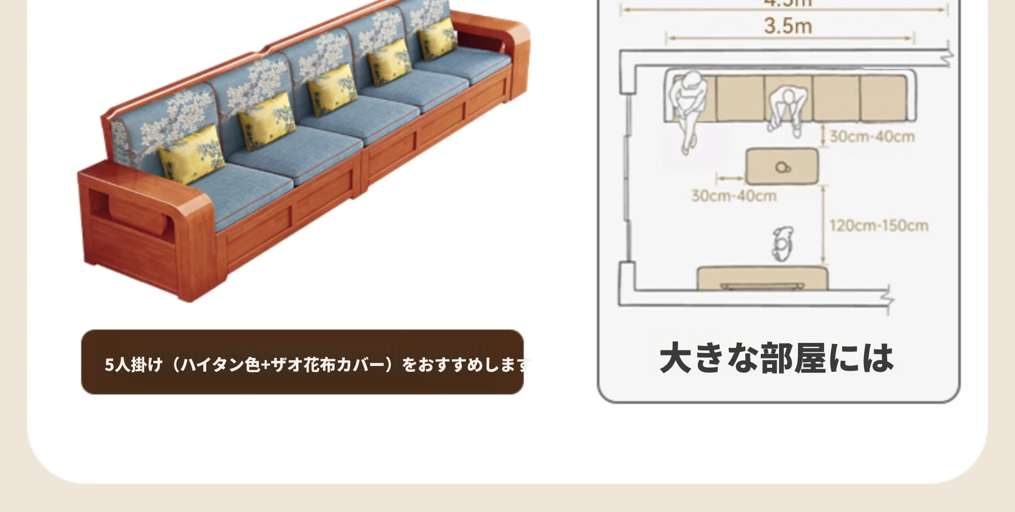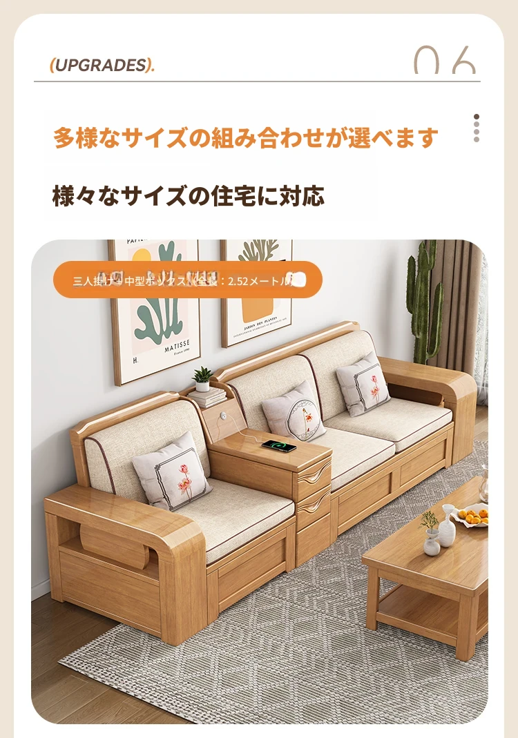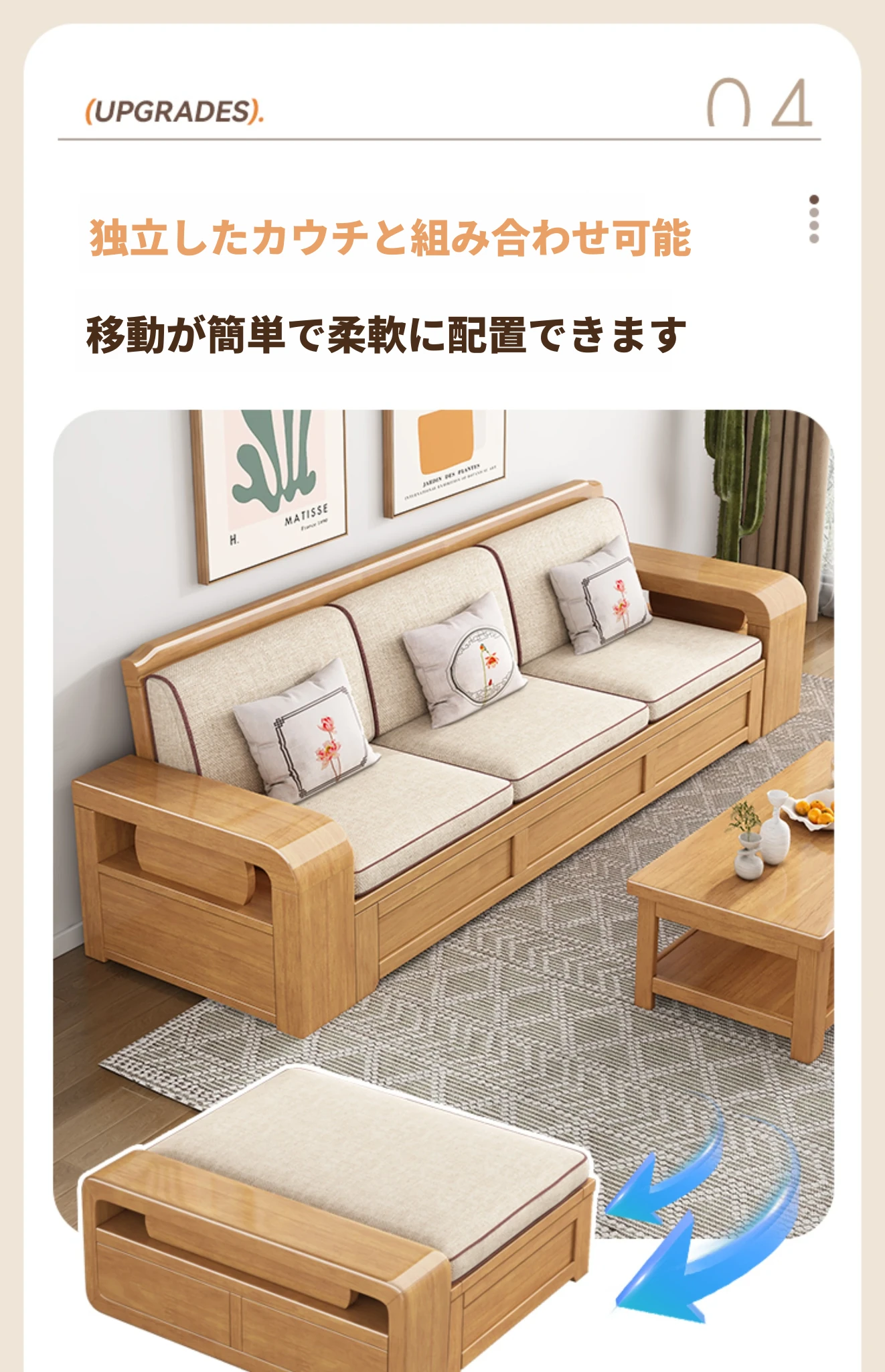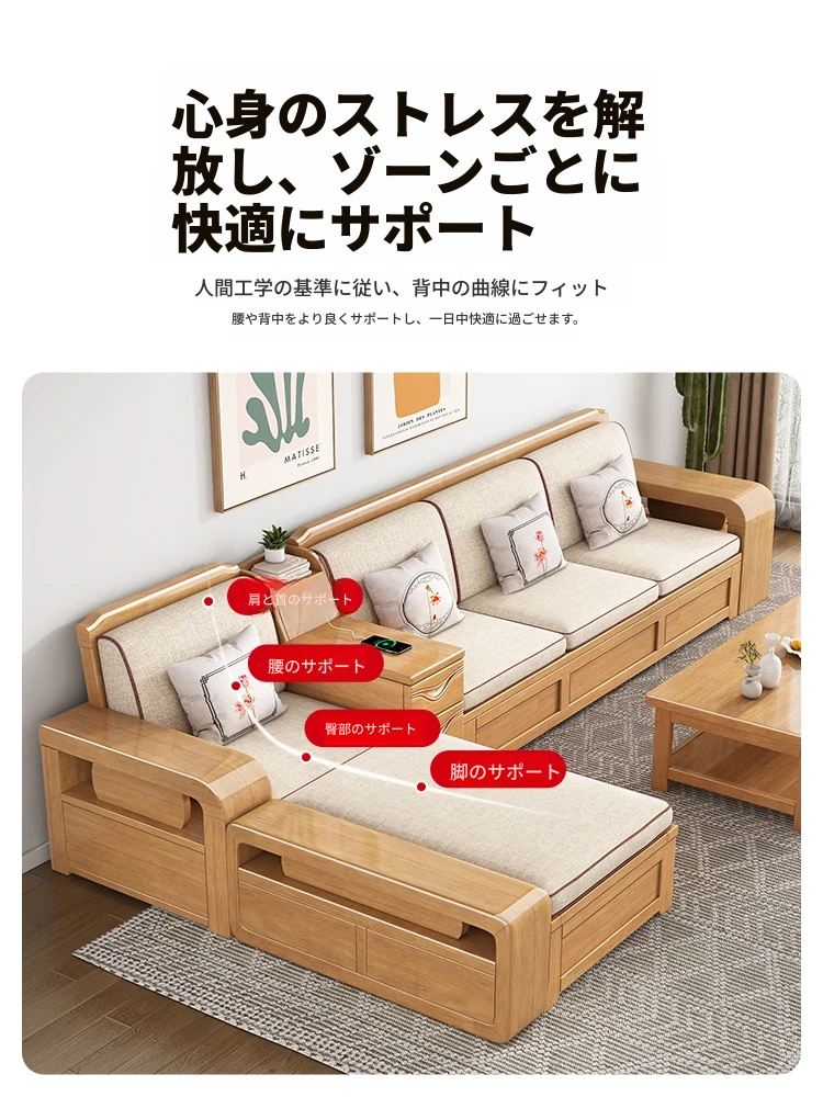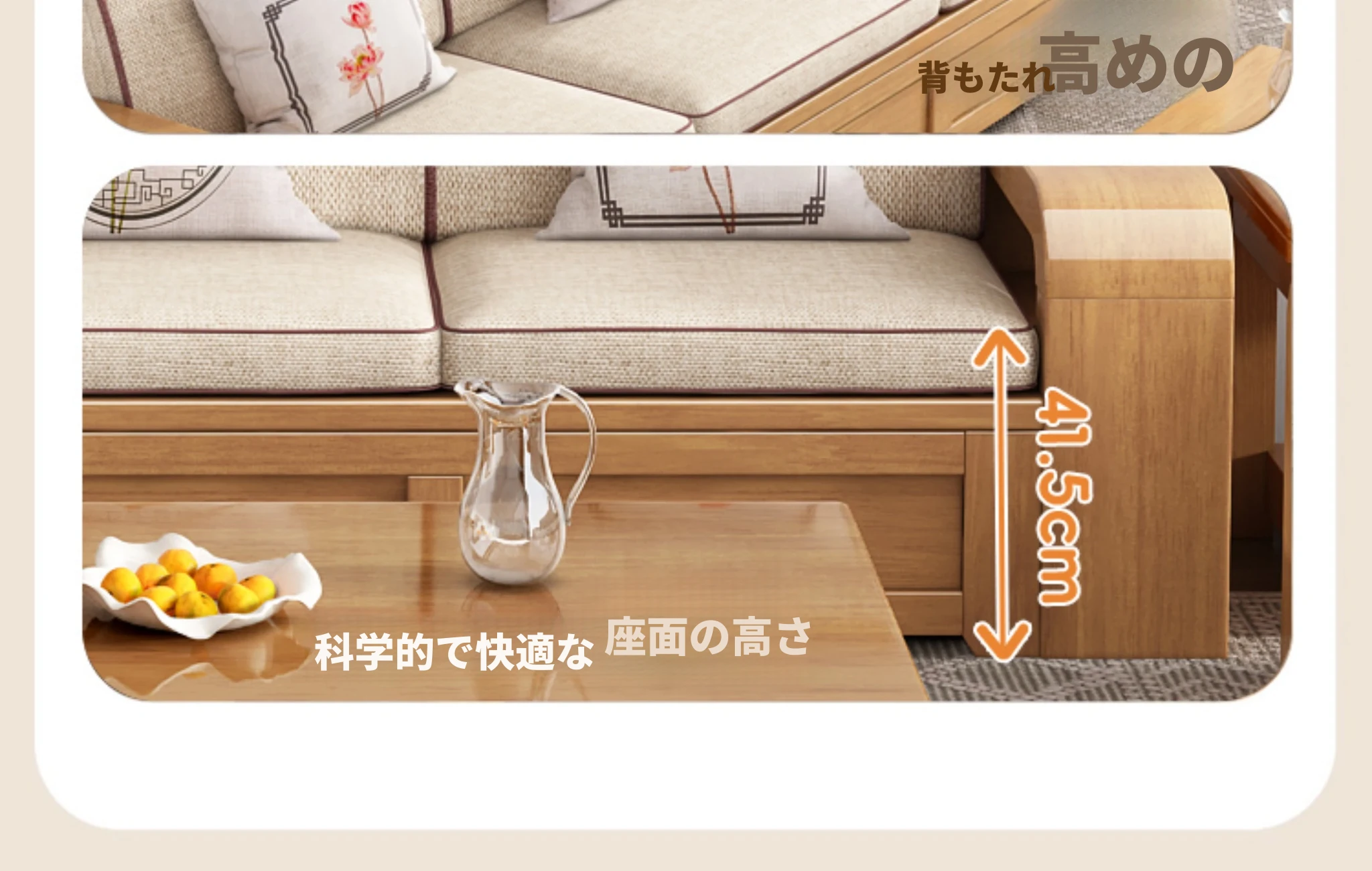 無垢材ソファ リビング用 全面無垢家具 ナチュラル収納付き ストレートタイプ 三人掛け 冬夏兼用の収納ソファで快適な空間を実現!