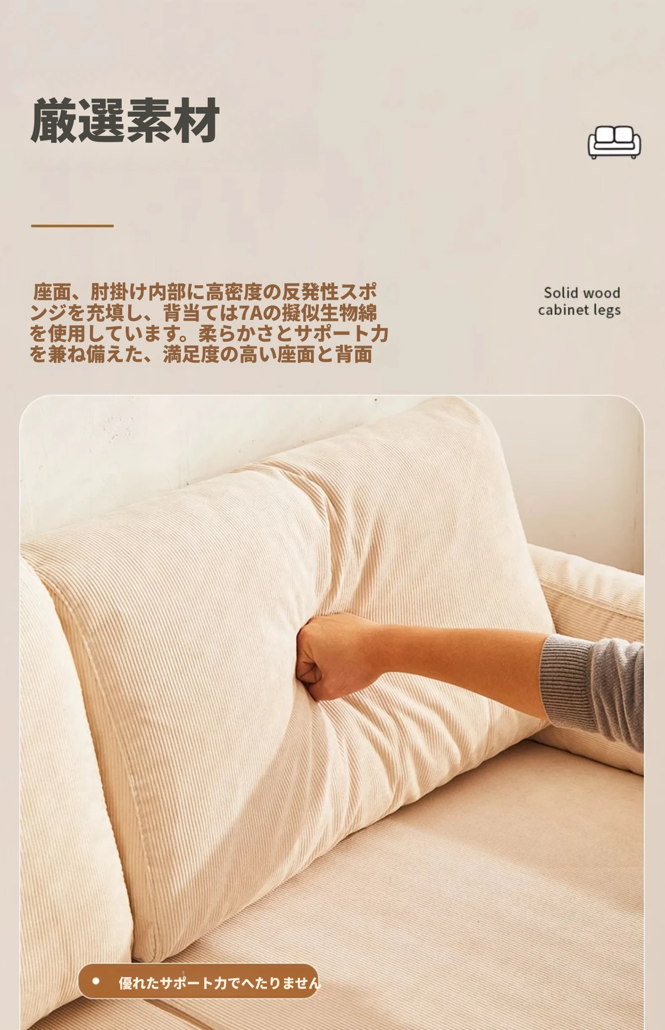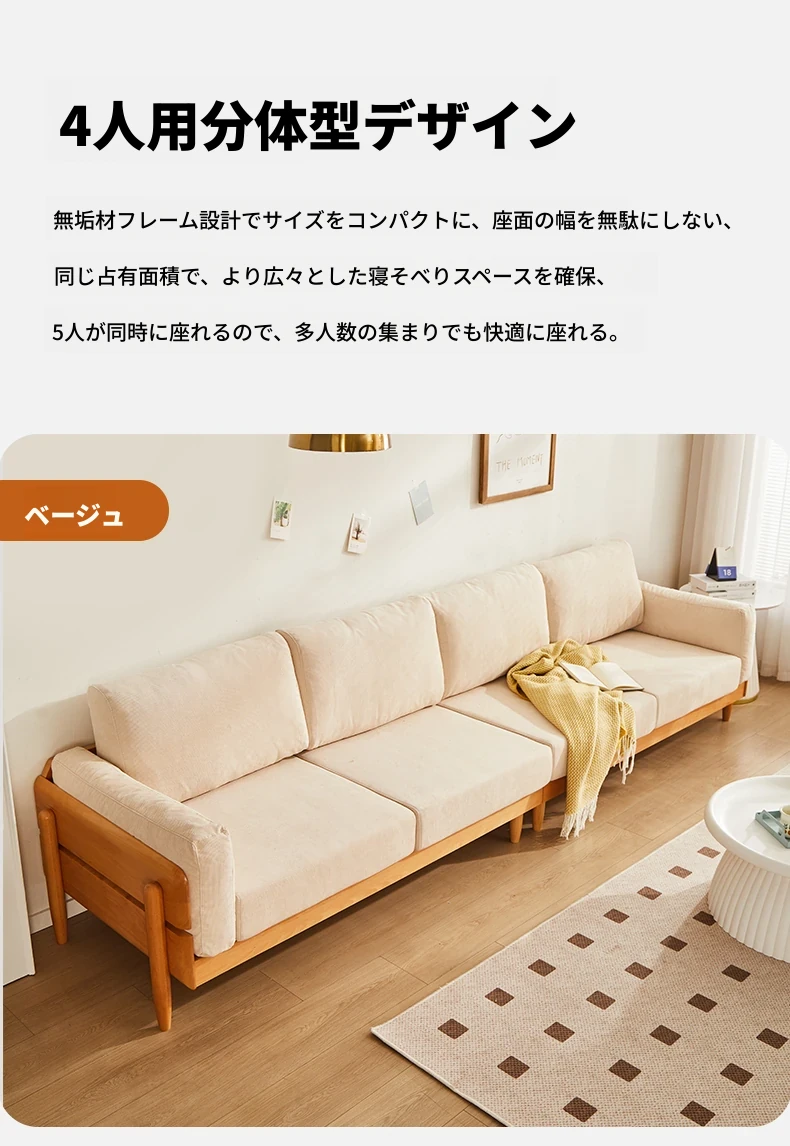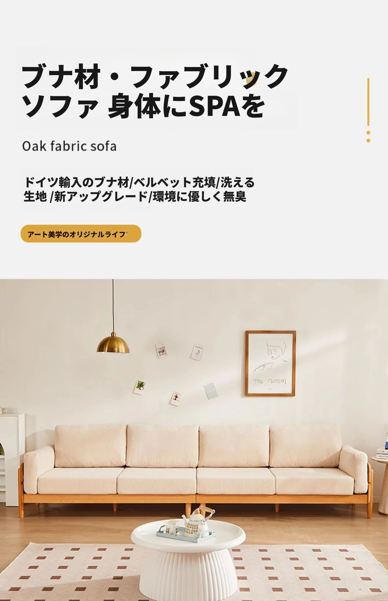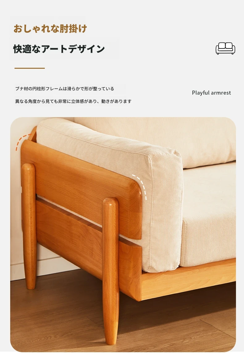全実木製ソファ 小型アパート向け 布張りソファ 北欧風シンプルデザイン ブナ材使用 日式クリームカラー 洗濯可能なリビングソファで、快適な空間を演出!