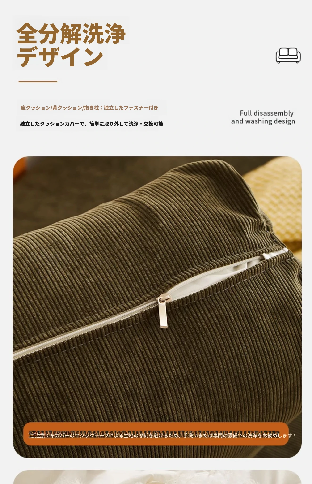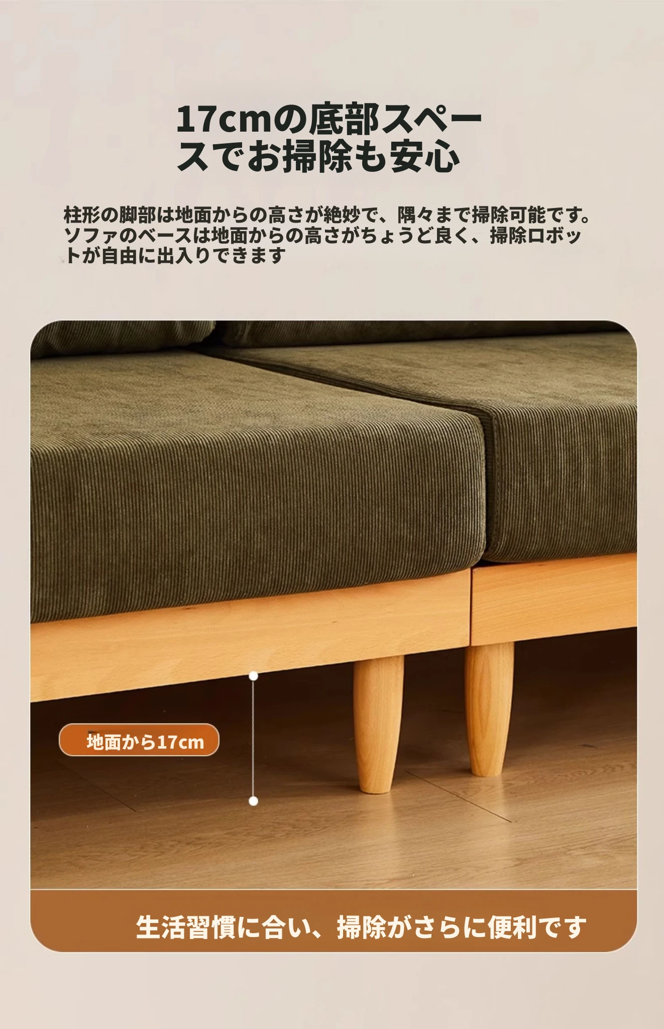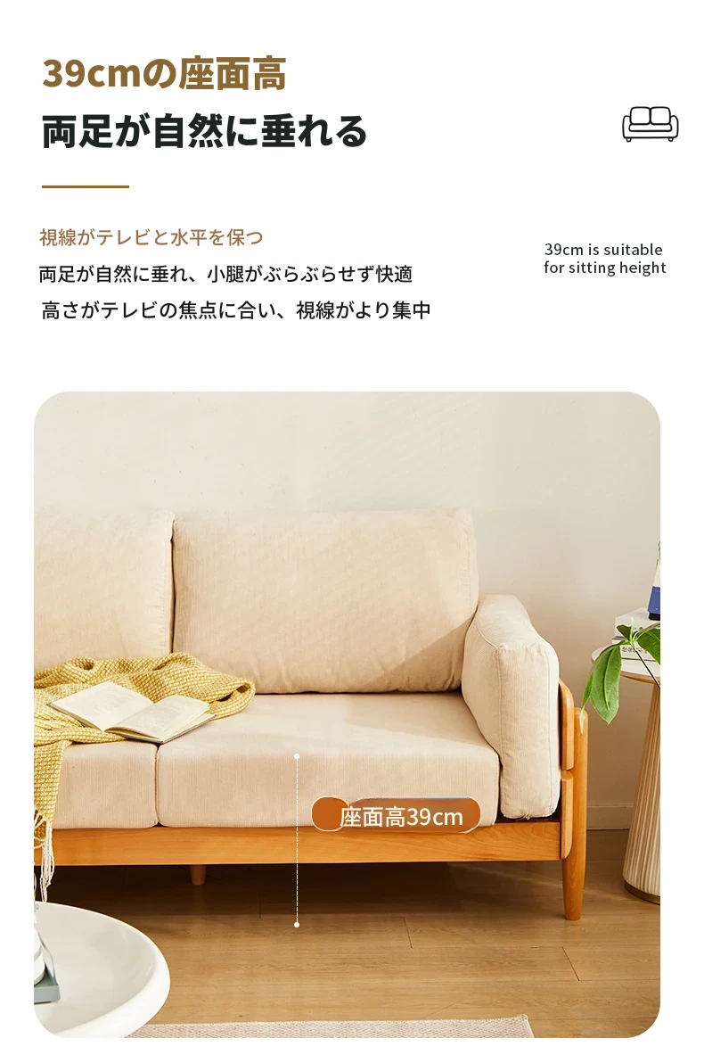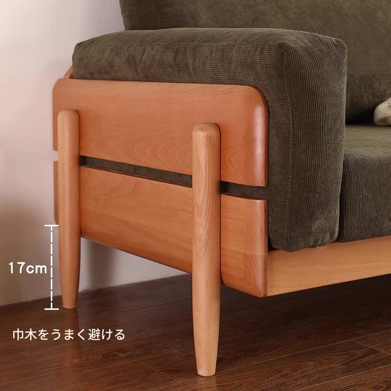 全実木製ソファ 小型アパート向け 布張りソファ 北欧風シンプルデザイン ブナ材使用 日式クリームカラー 洗濯可能なリビングソファで、快適な空間を演出!