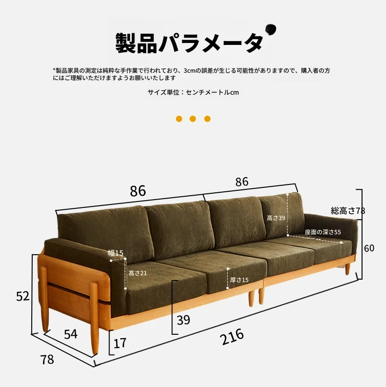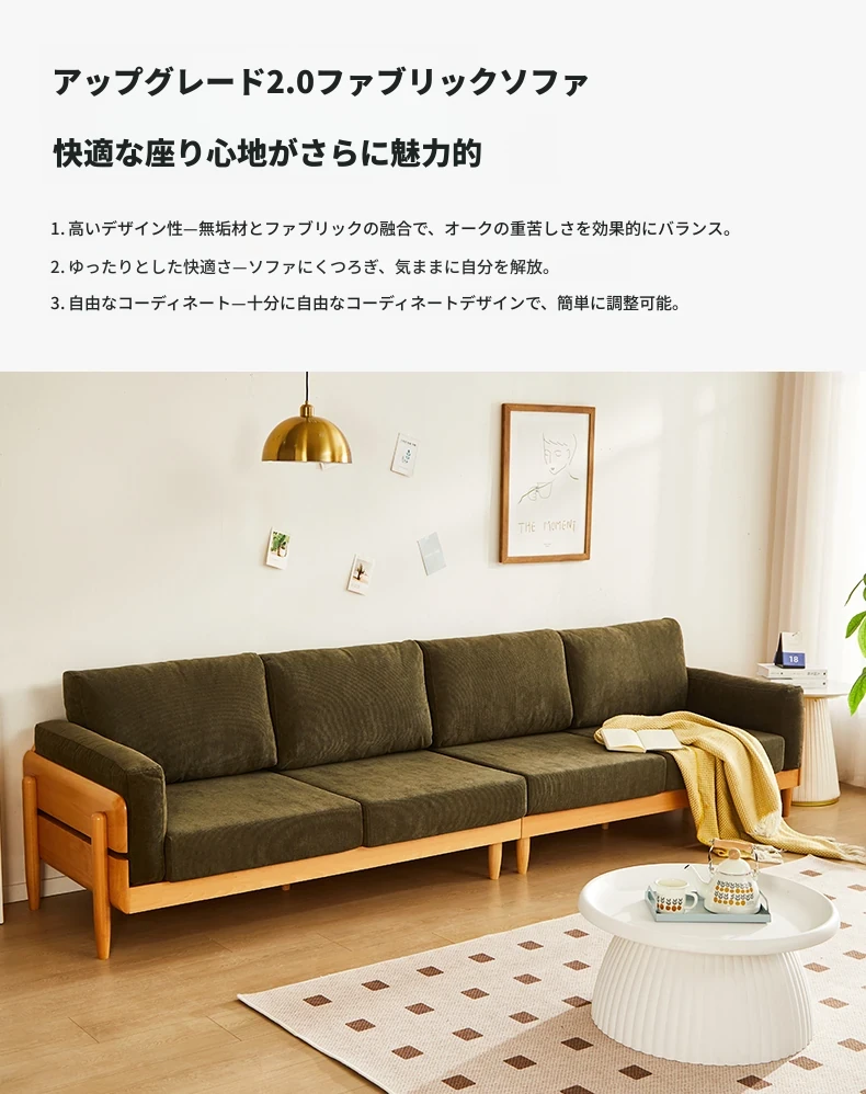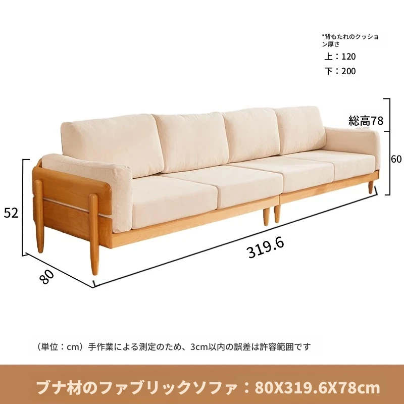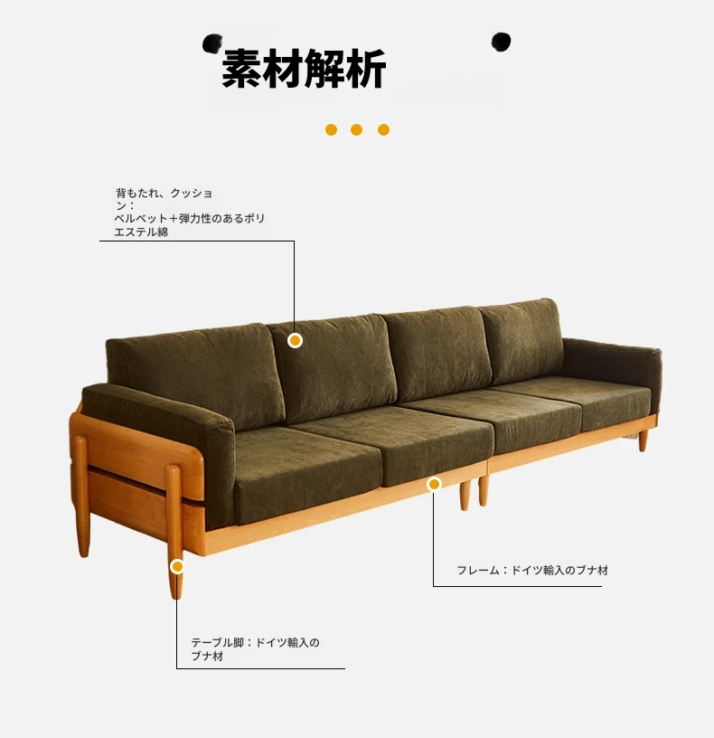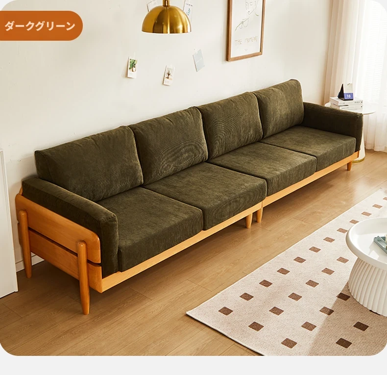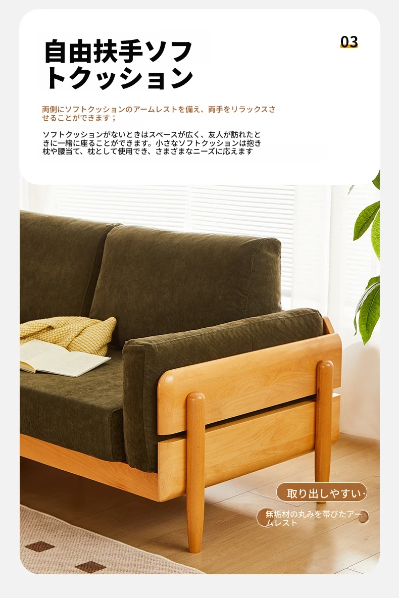 全実木製ソファ 小型アパート向け 布張りソファ 北欧風シンプルデザイン ブナ材使用 日式クリームカラー 洗濯可能なリビングソファで、快適な空間を演出!