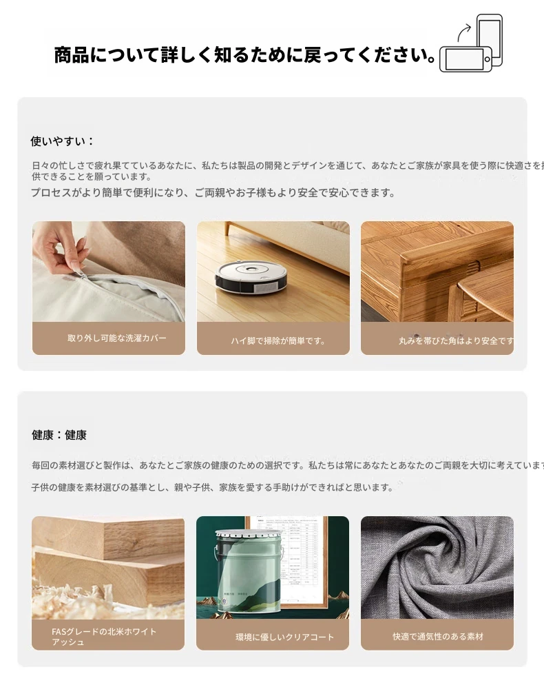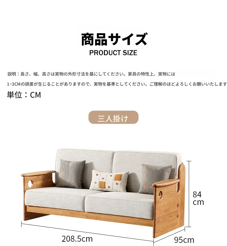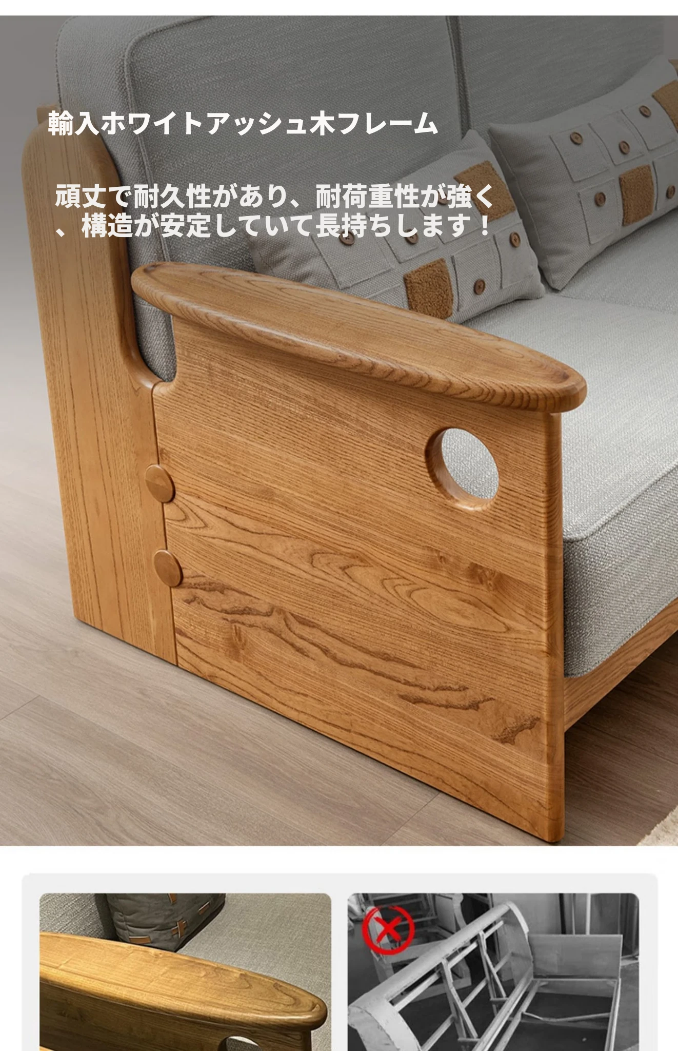2.08メートル三人用(北米FAS級ホワイトアッシュ)標準版:通気性のある布+全解体可能なクッション