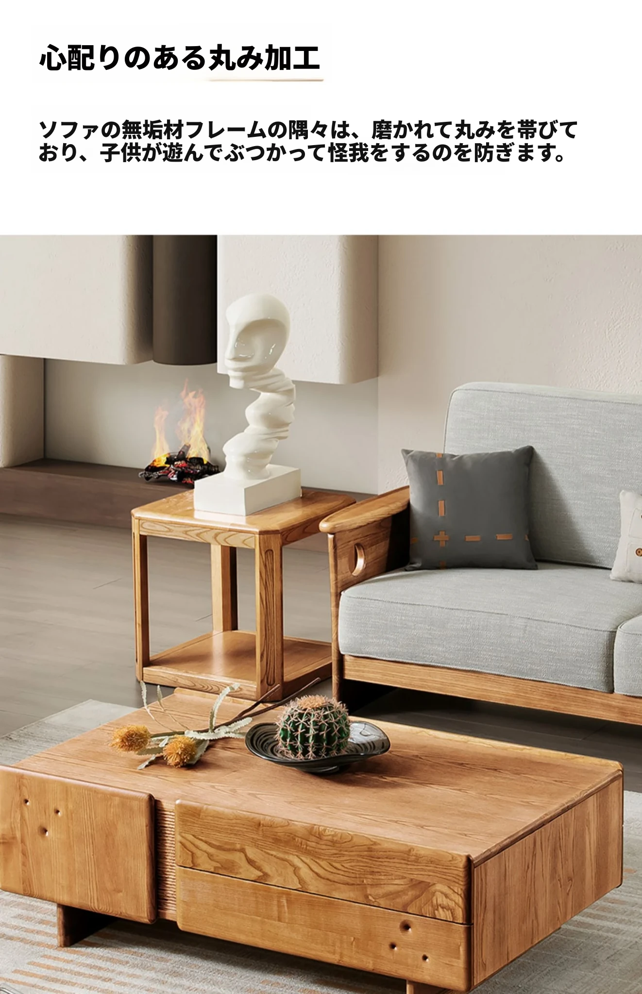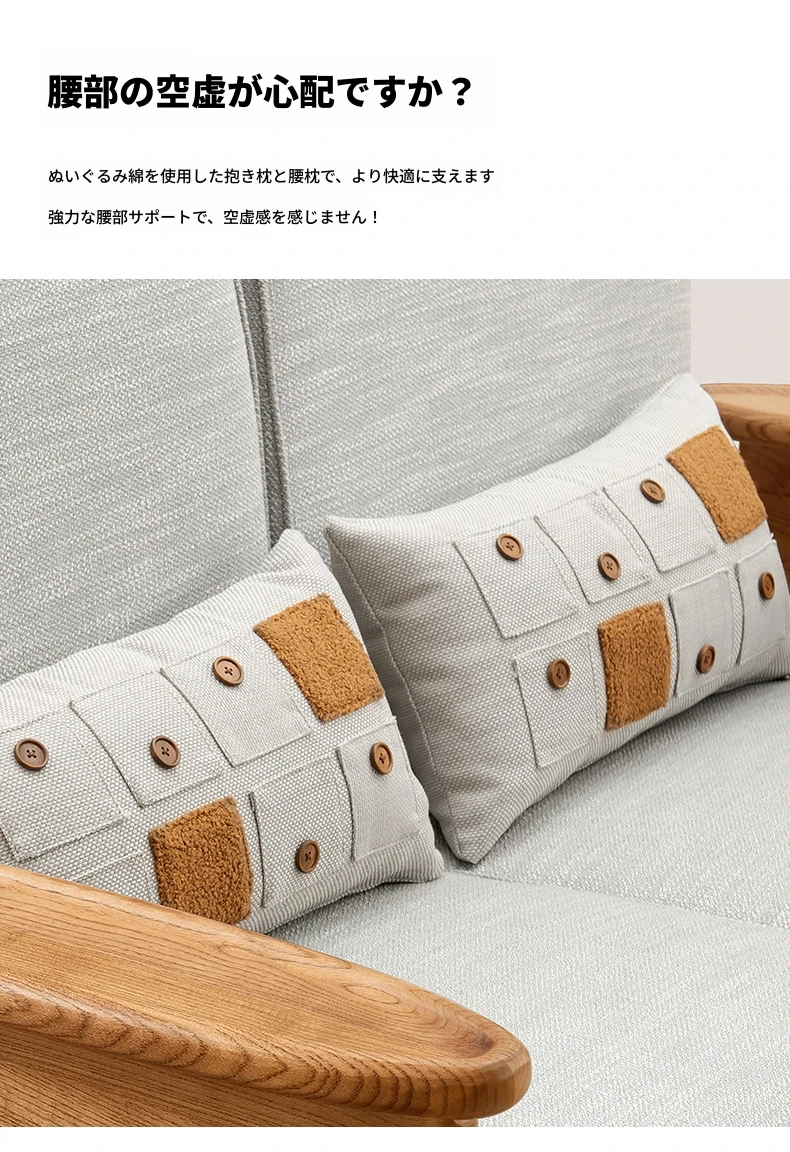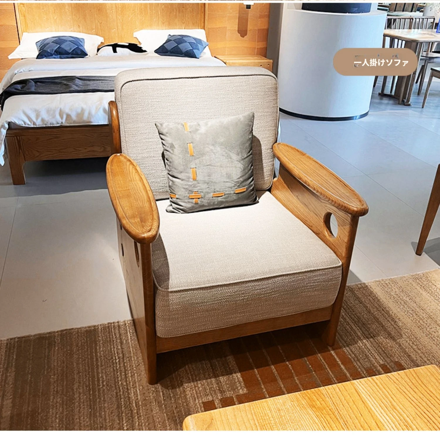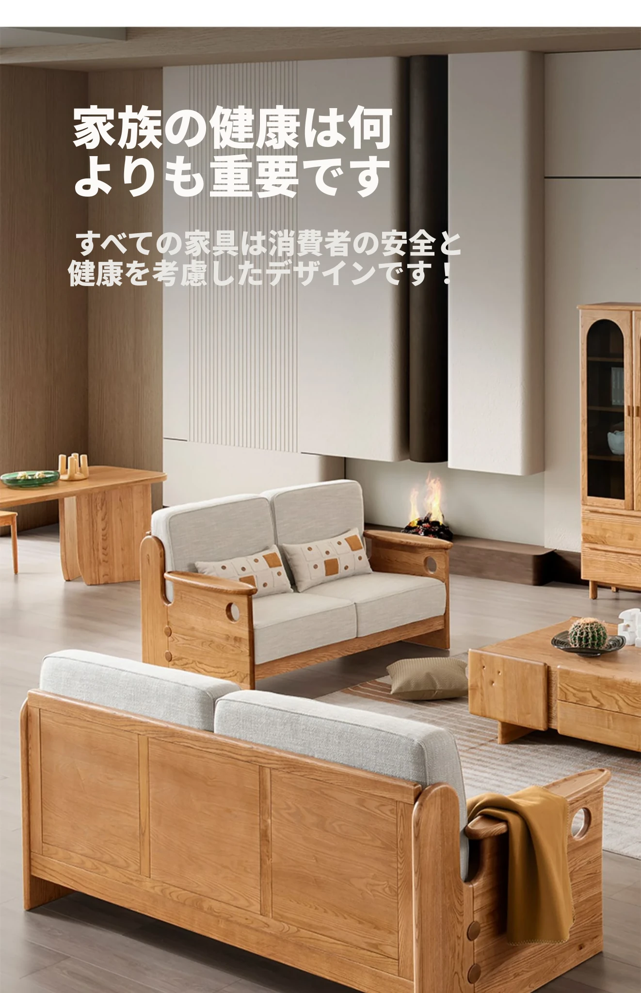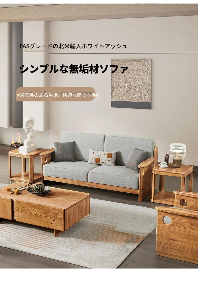 全実木製の新中式スタイルのホワイトアッシュウッドソファ、コンパクトなリビングに最適!シンプルでモダンなデザイン、耐久性のあるテクスチャー布使用。猫の爪にも強い、快適な居住空間を実現します!