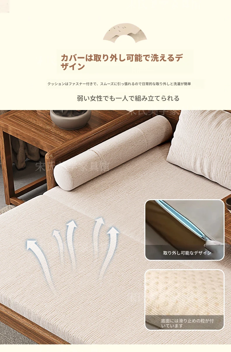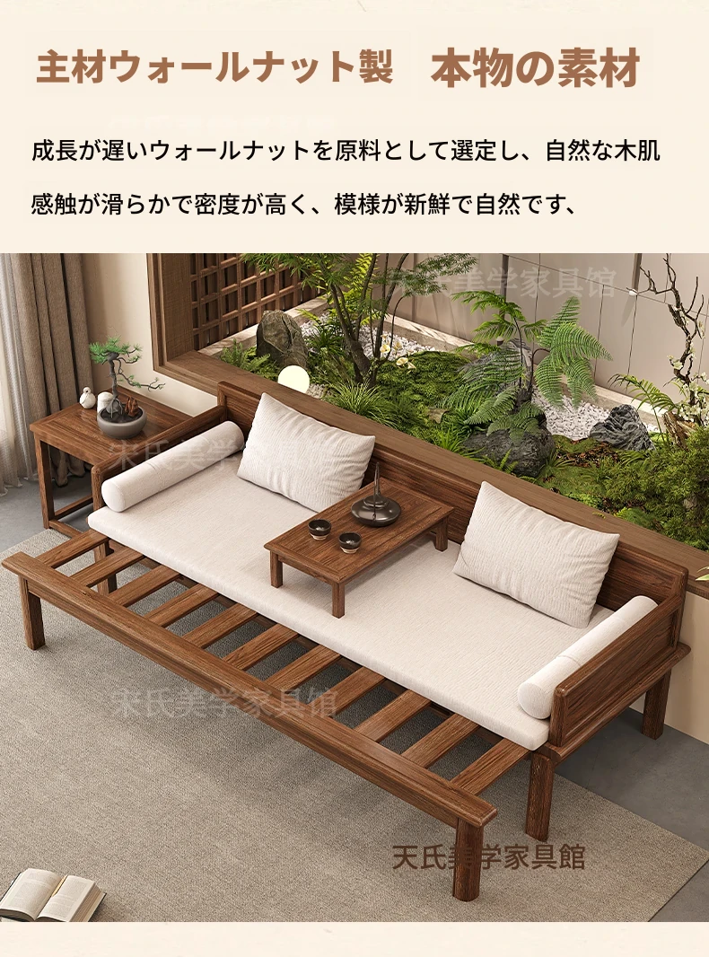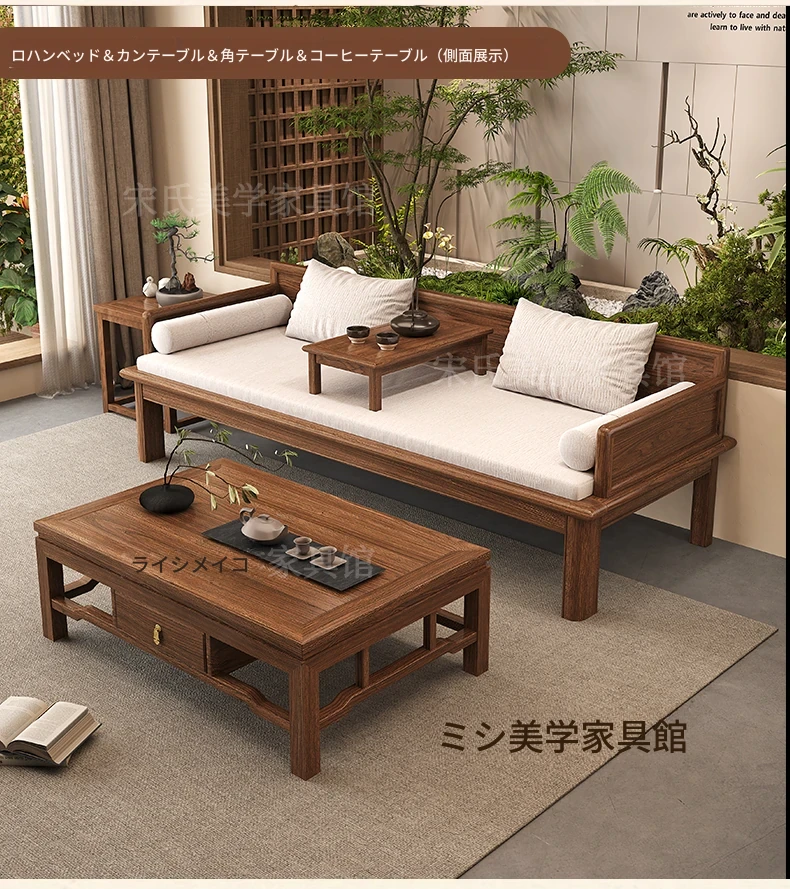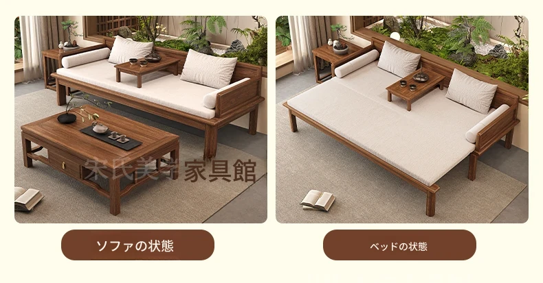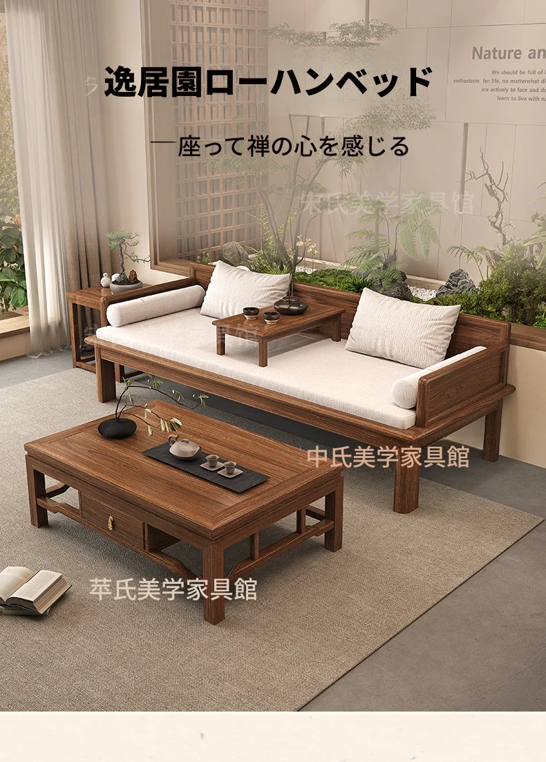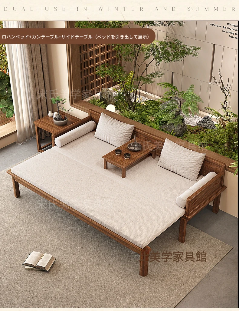 宋氏美学 南米クルミ材の実木ローハンベッド 新中式スタイル 小型リビング向け プッシュ&プル兼用ソファベッド おしゃれで機能的な空間を演出!