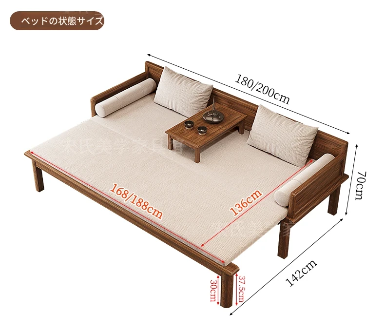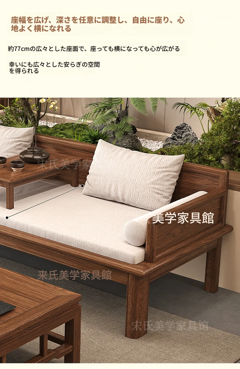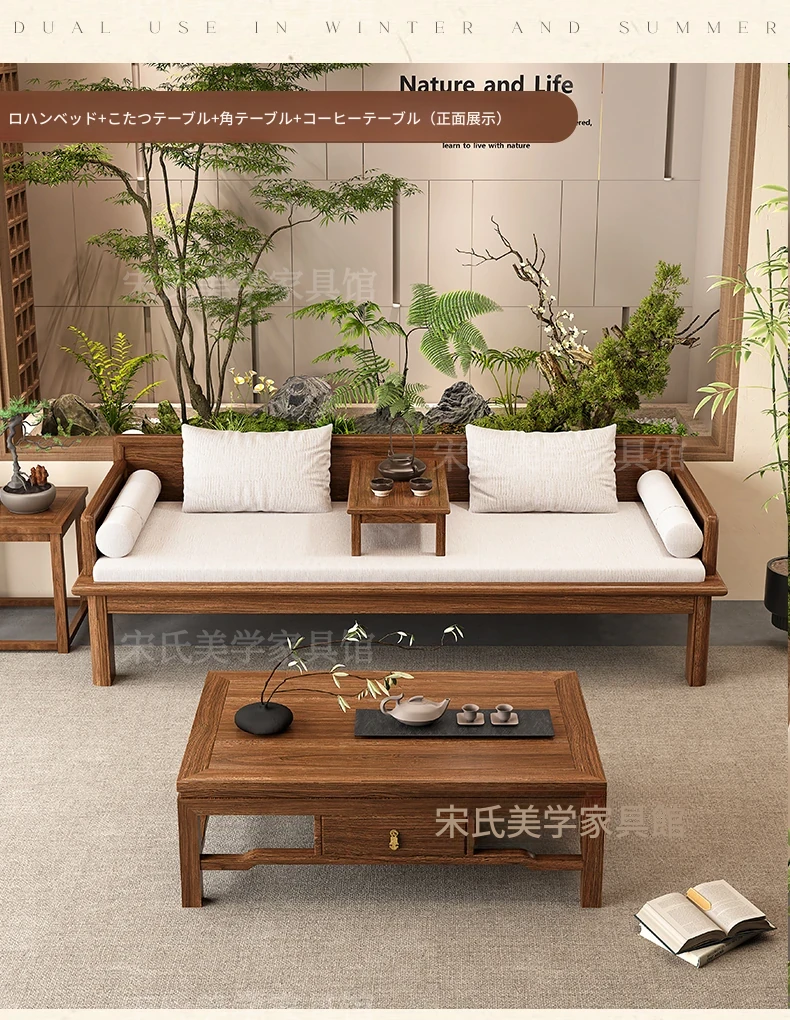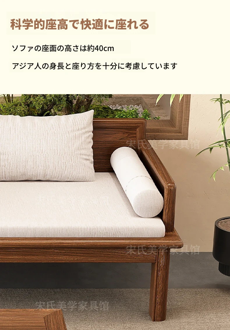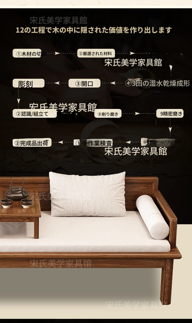 宋氏美学 南米クルミ材の実木ローハンベッド 新中式スタイル 小型リビング向け プッシュ&プル兼用ソファベッド おしゃれで機能的な空間を演出!