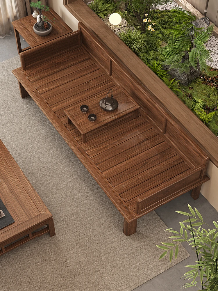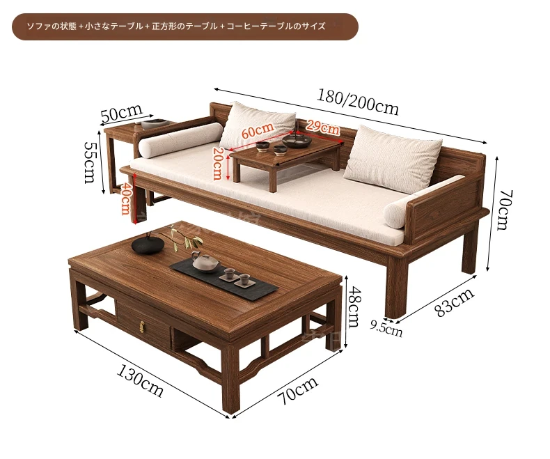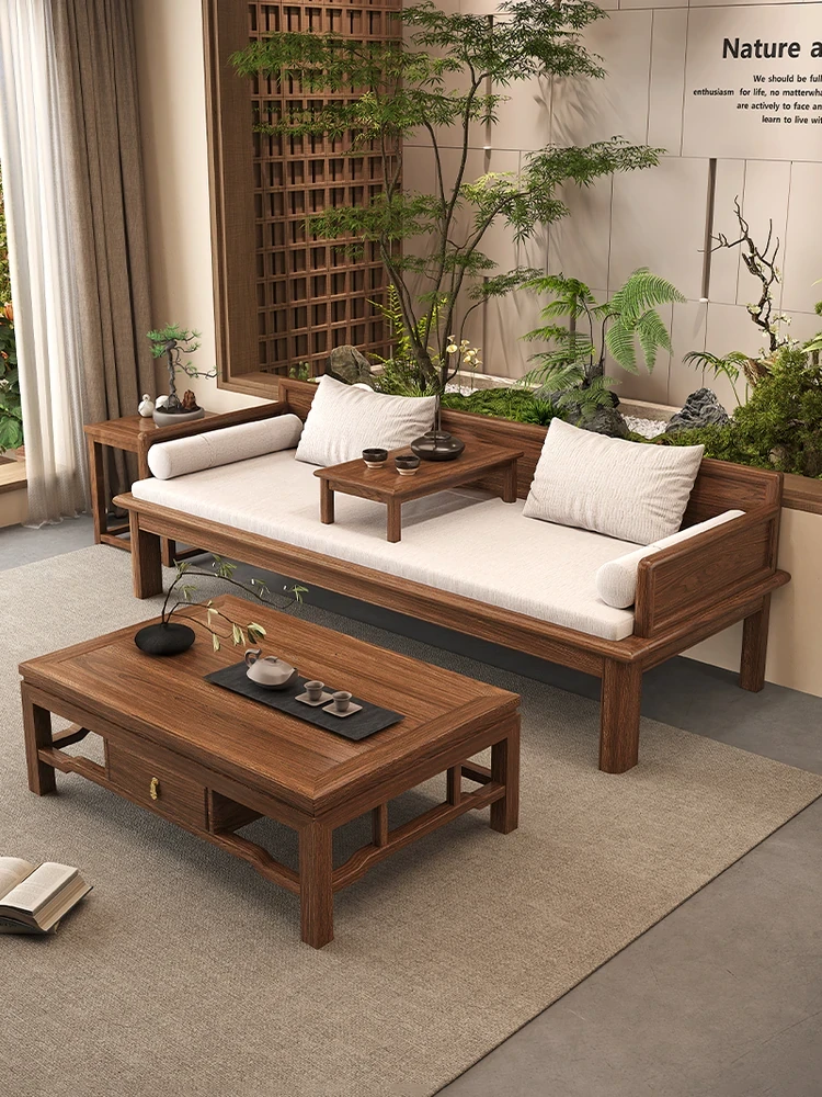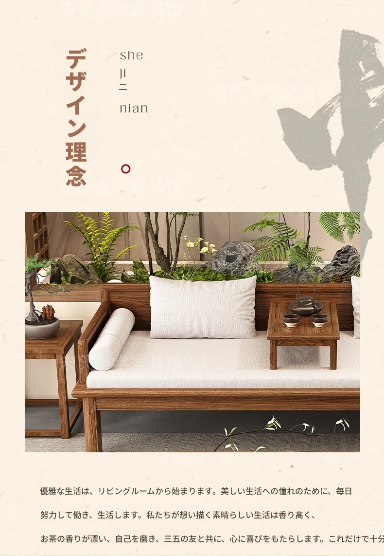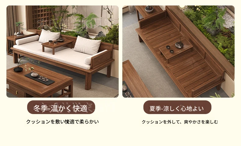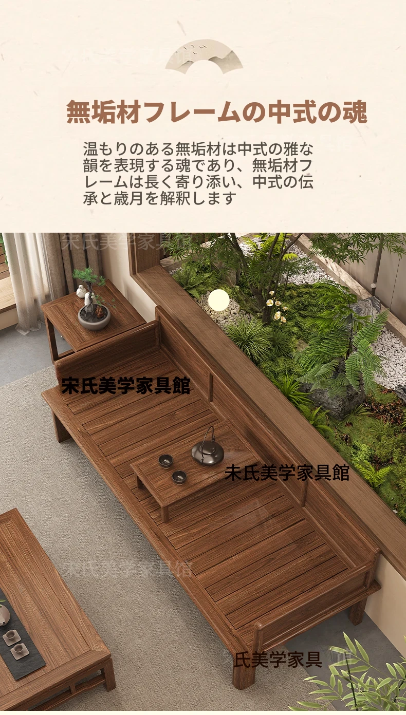 宋氏美学 南米クルミ材の実木ローハンベッド 新中式スタイル 小型リビング向け プッシュ&プル兼用ソファベッド おしゃれで機能的な空間を演出!