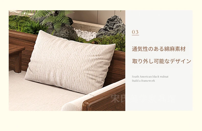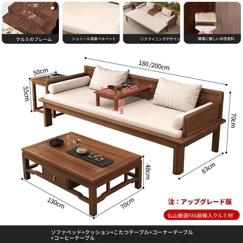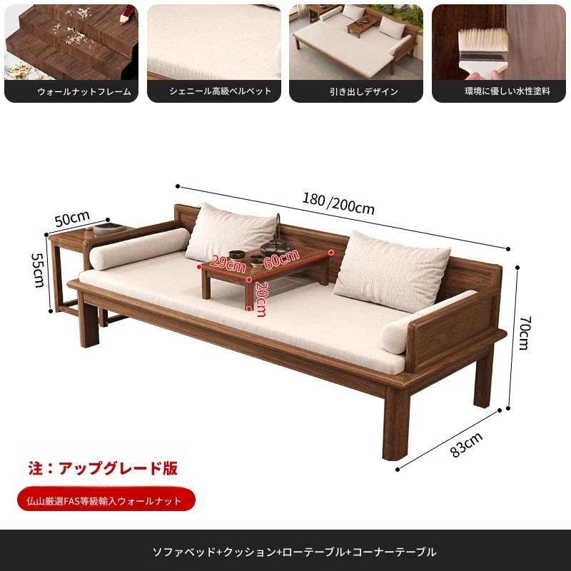 【佛山高品质严选FAS级胡桃木】ソファベッド+クッション+ローテーブル+サイドテーブル+コーヒーテーブル