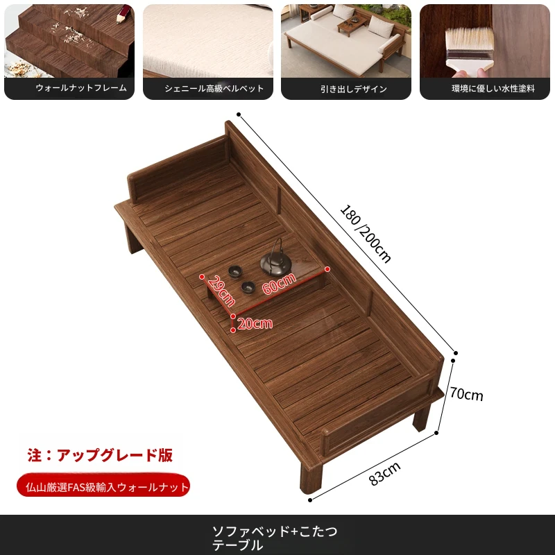 【佛山高品质严选FAS级胡桃木】ソファベッド+クッション+ローテーブル+サイドテーブル