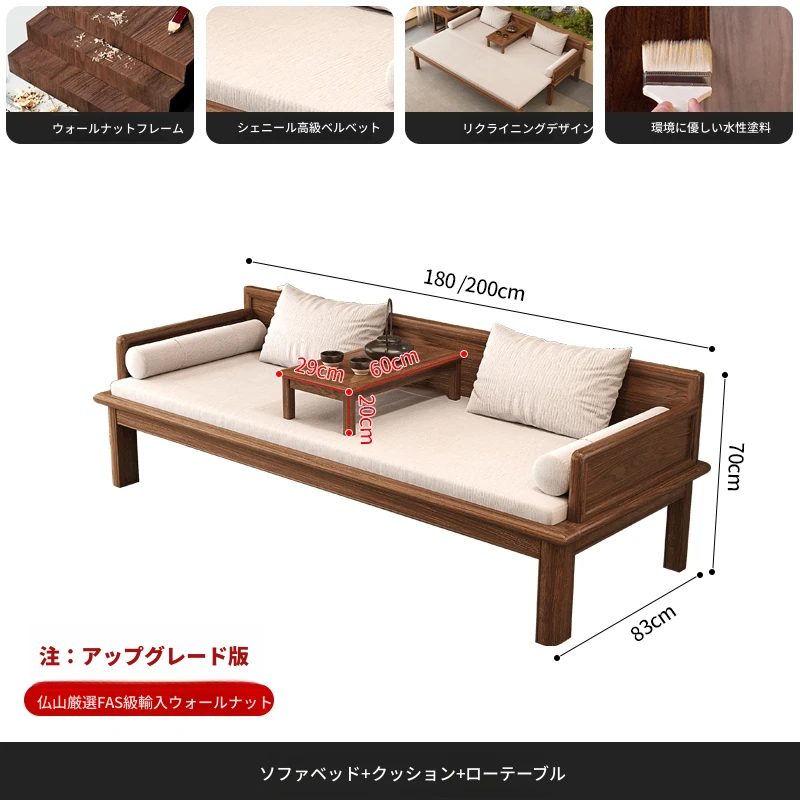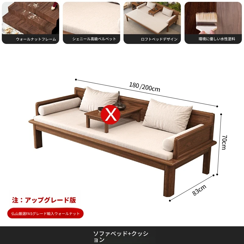 【佛山高品质严选FAS级胡桃木】ソファベッド+クッション+ローテーブル