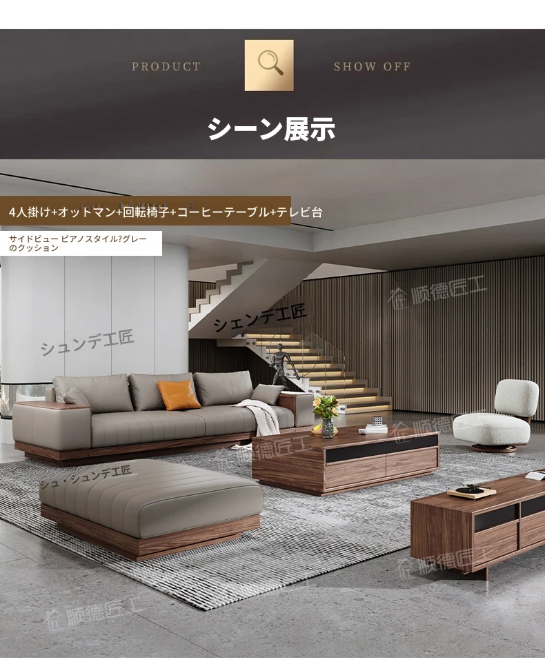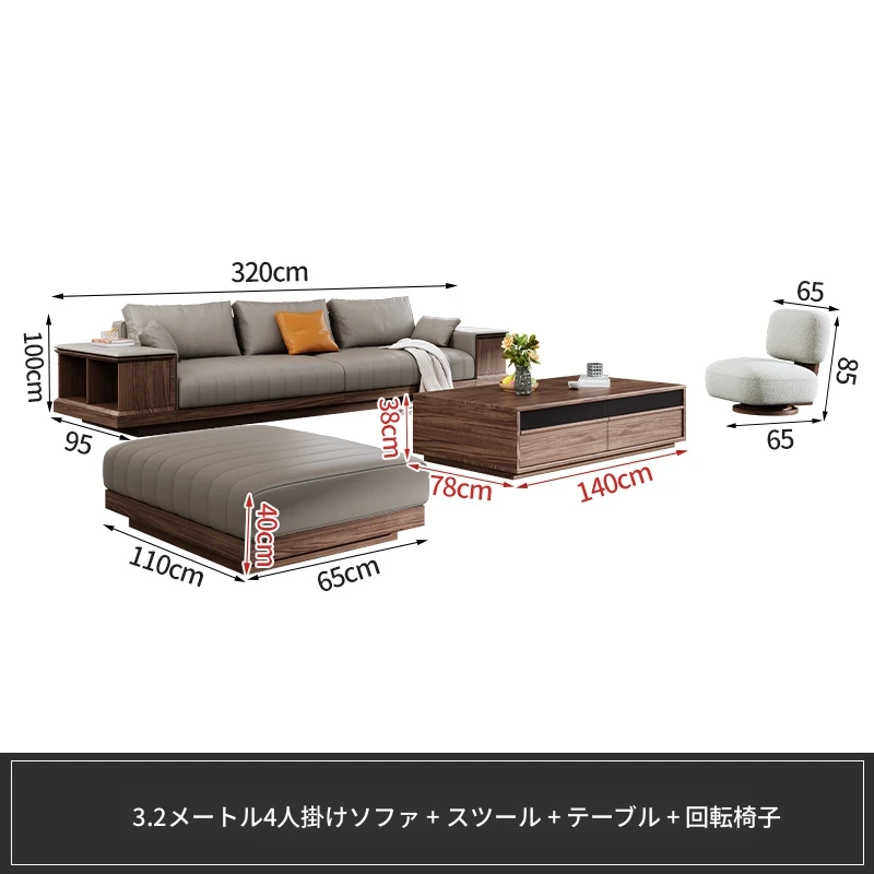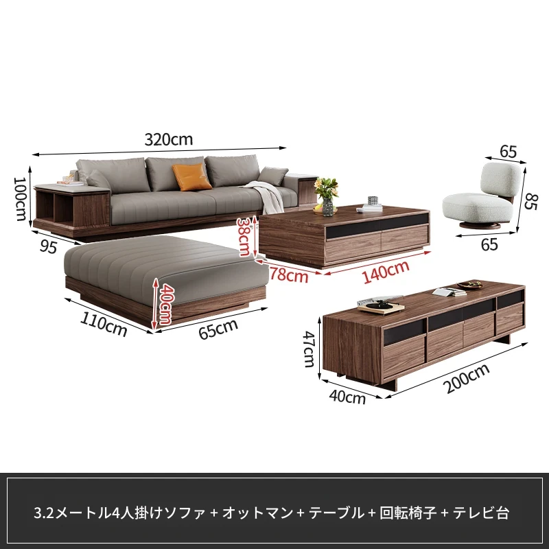3.2メートル4人用ソファ+オットマン+コーヒーテーブル+回転椅子+テレビボード