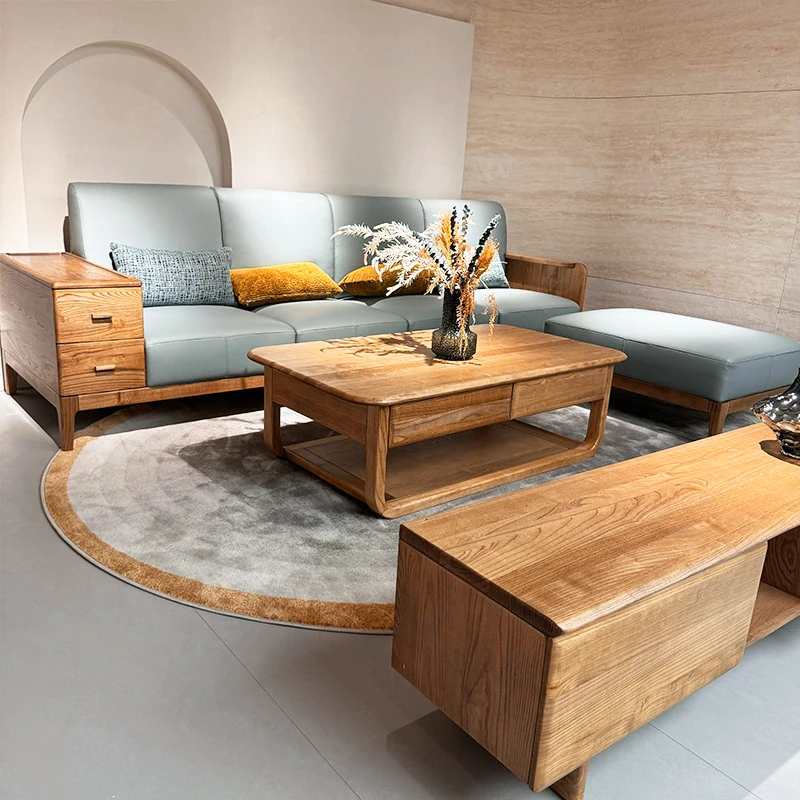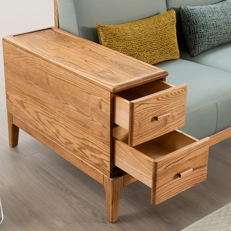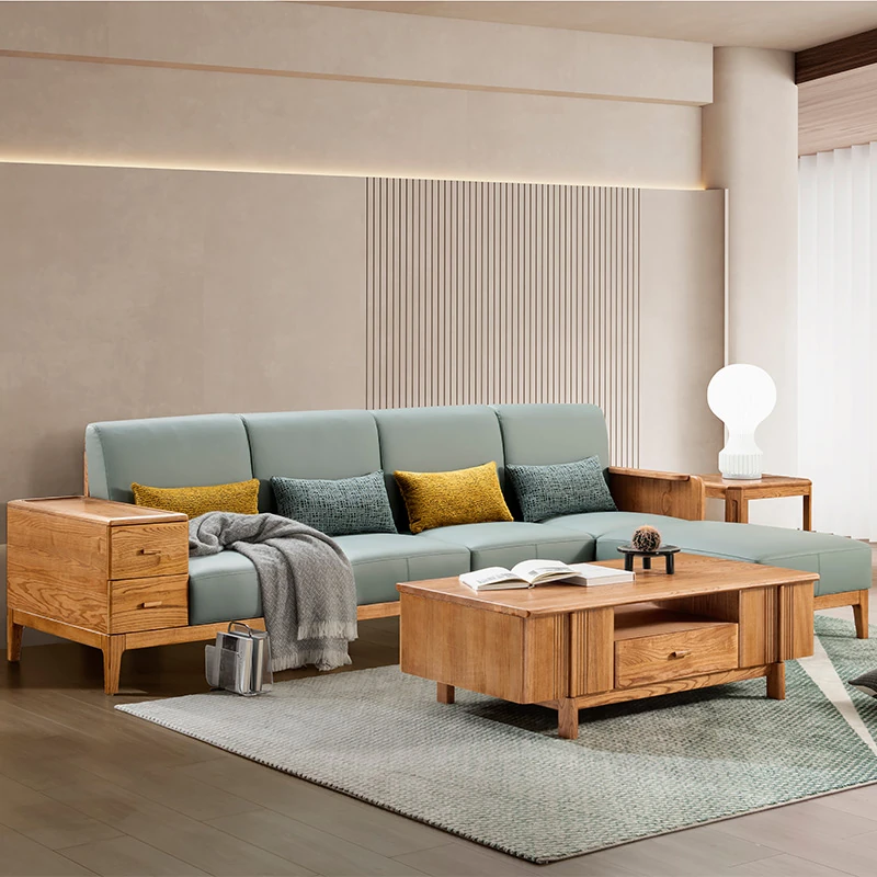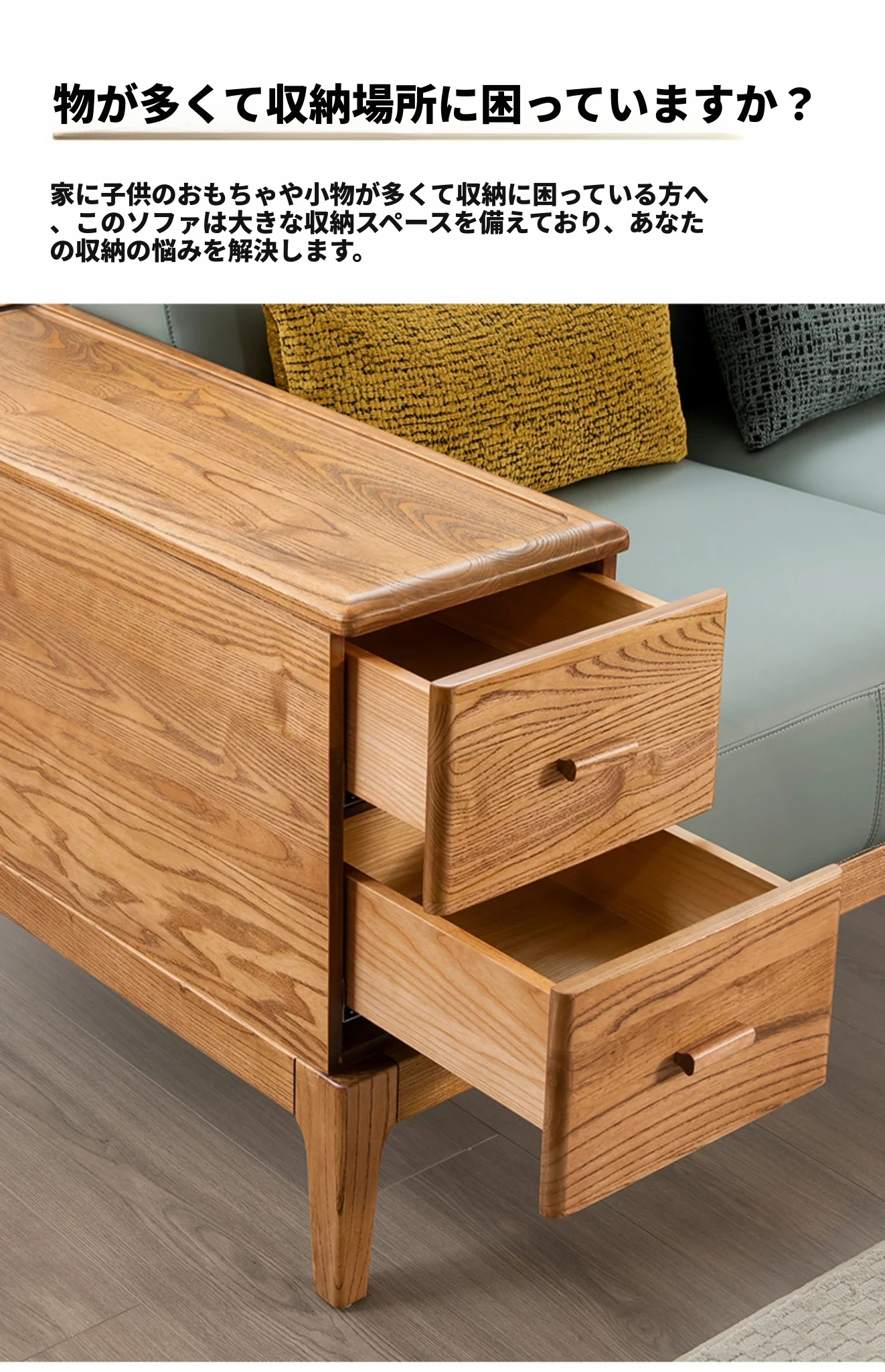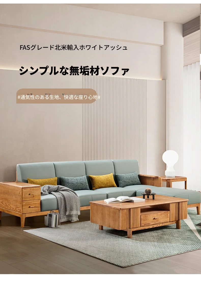 冬夏兼用の新中式スタイル!小型住宅に最適な実木ソファ・コーナー・カウチ。収納機能付きの洗練されたデザイン、輸入のホワイトアッシュ材使用で耐久性も抜群。おしゃれなリビングを演出します!